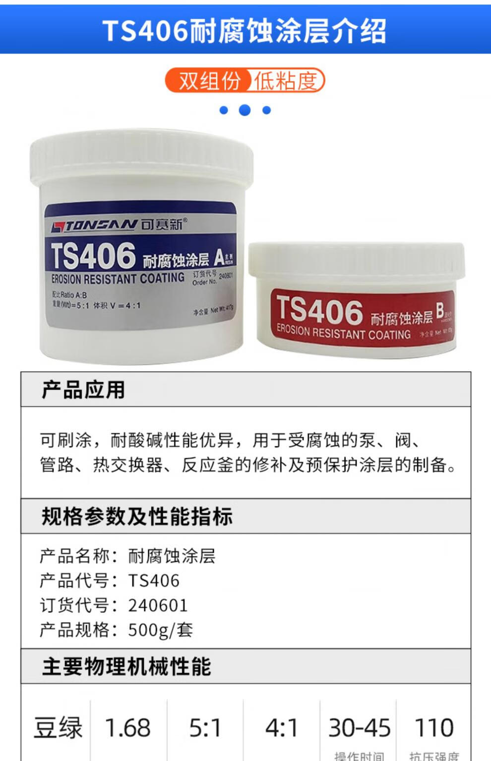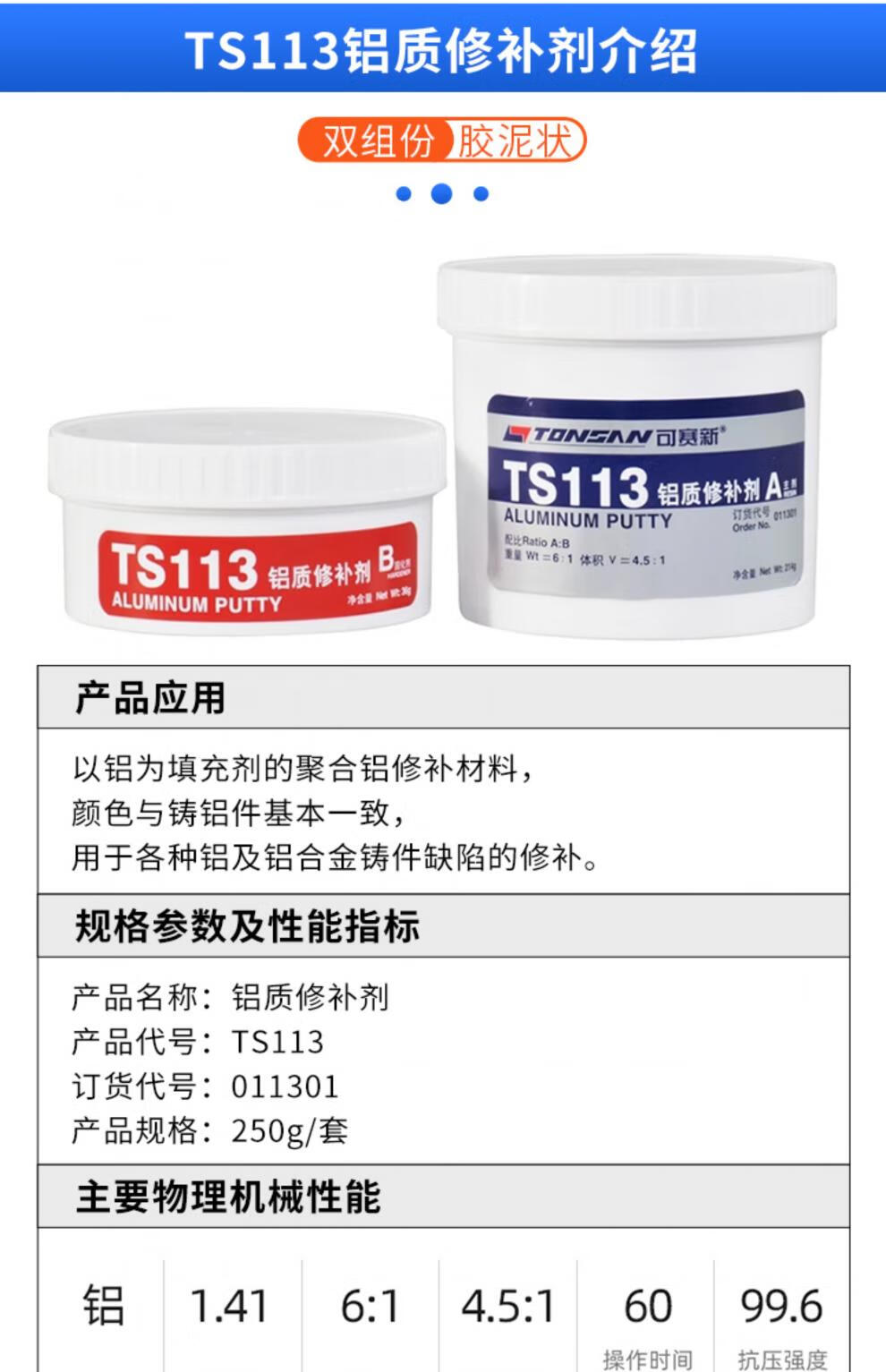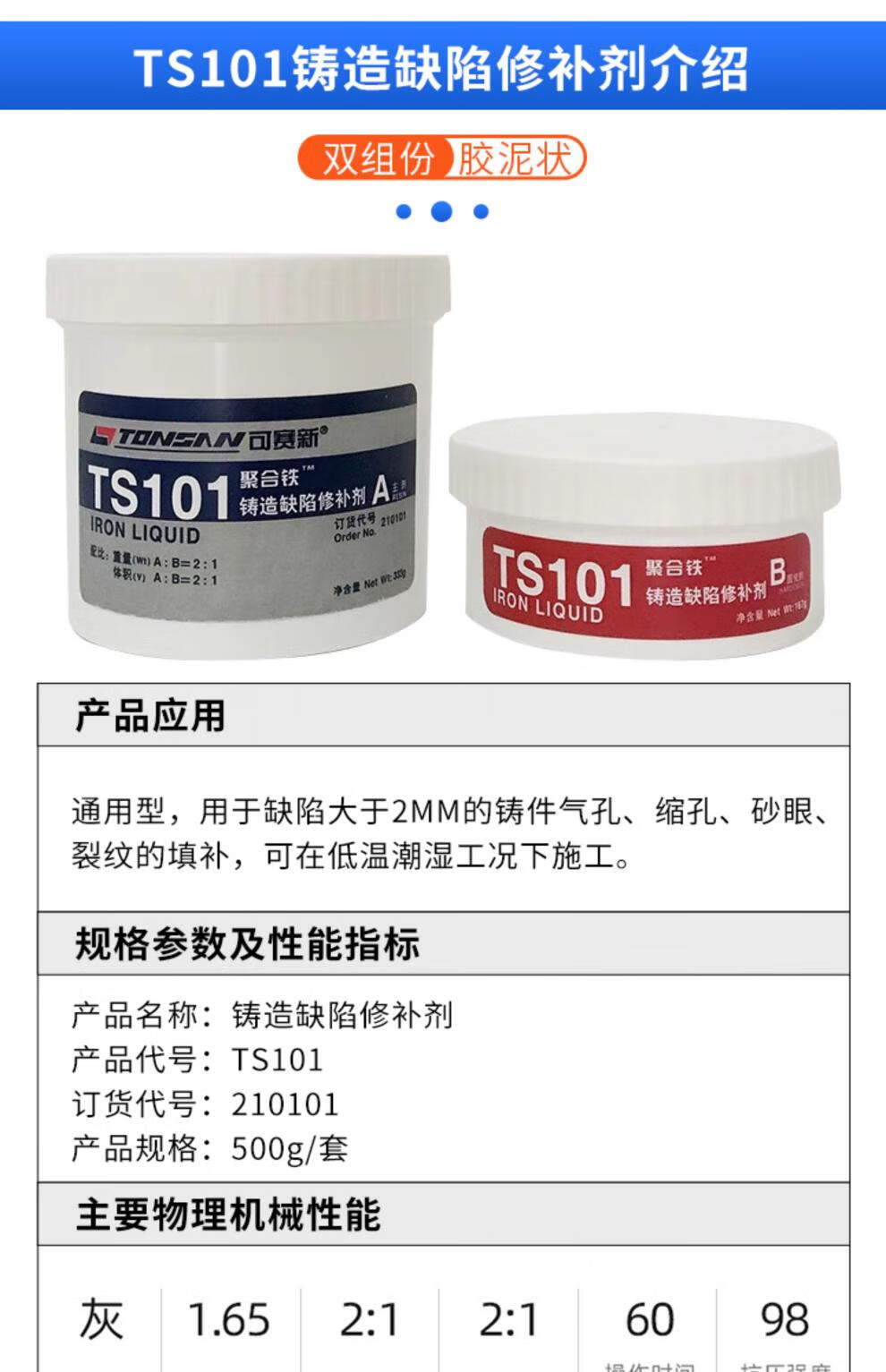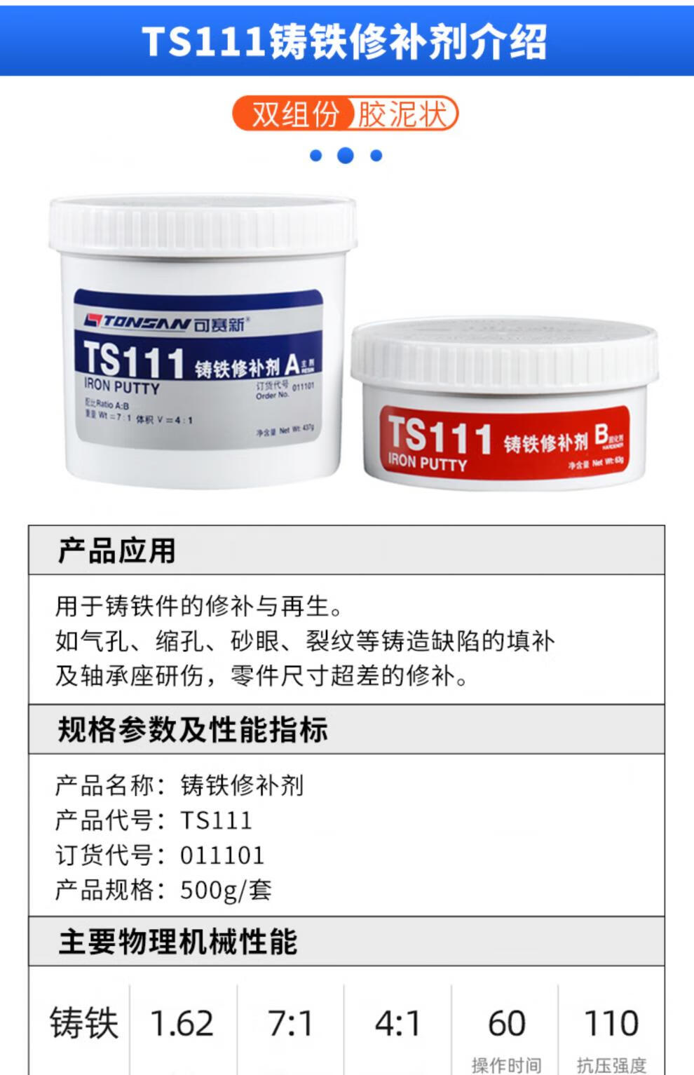 Kesaixin TS111 industrial cast iron 112 stainless steel 113 aluminum alloy copper pipe crack metal repair agent TS406 corrosion-resistant coating 500g/set