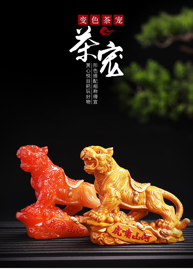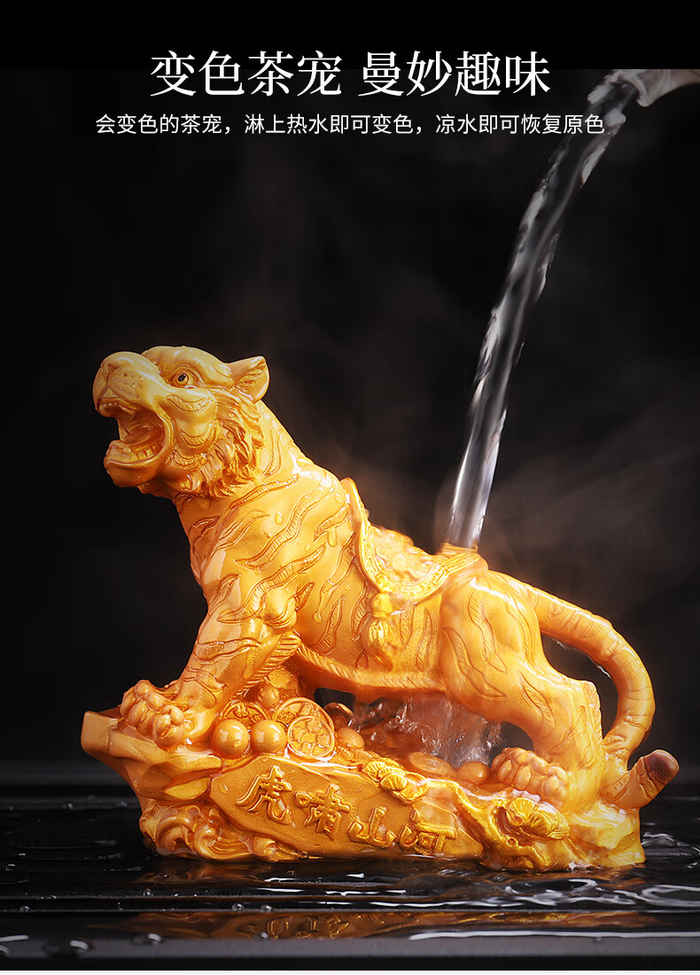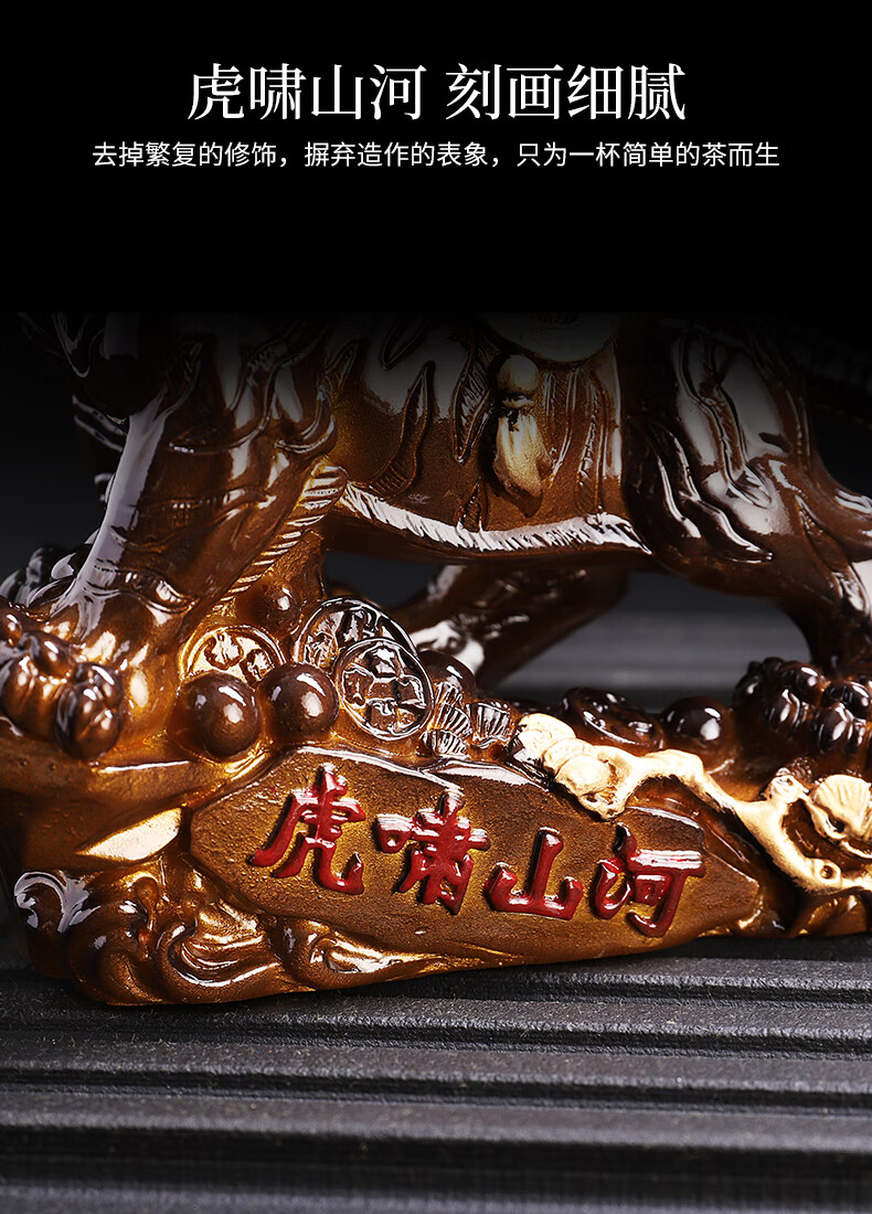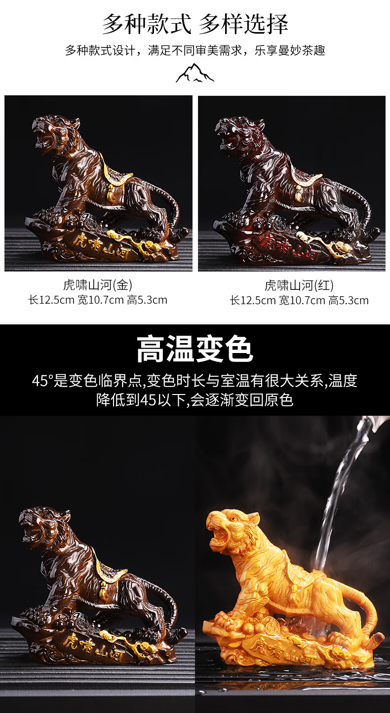 Yunhua Color Changing Tea Pet Tiger Roaring Mountain River Boutique Tea Play High-end Tea Set Accessories Creative Wealth-Bringing Zodiac Ornaments Tiger Roaring Mountain River Golden Red Letters - Color Changing