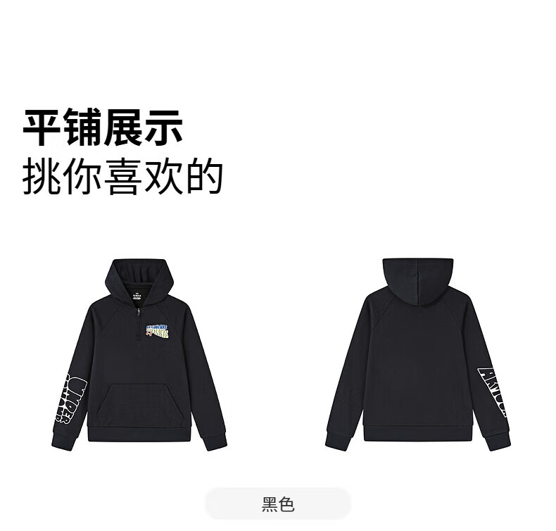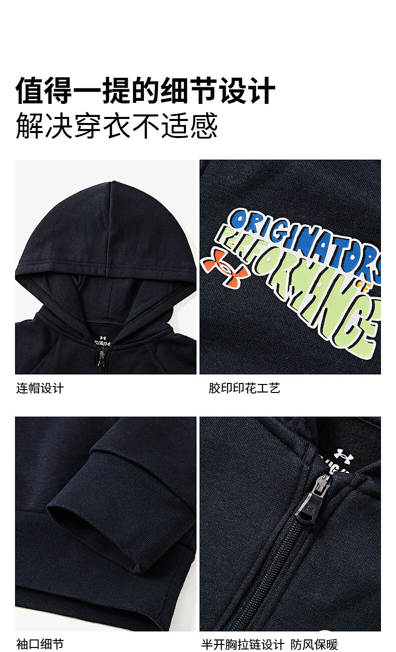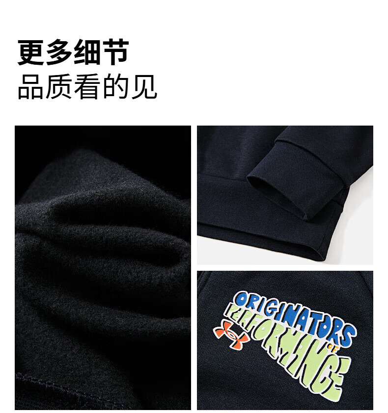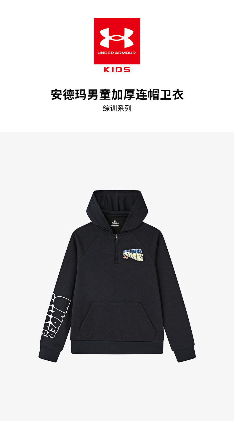 Under Armor children's clothing autumn and winter hooded children's sweatshirt warm casual sports versatile printed sweatshirt black 150
