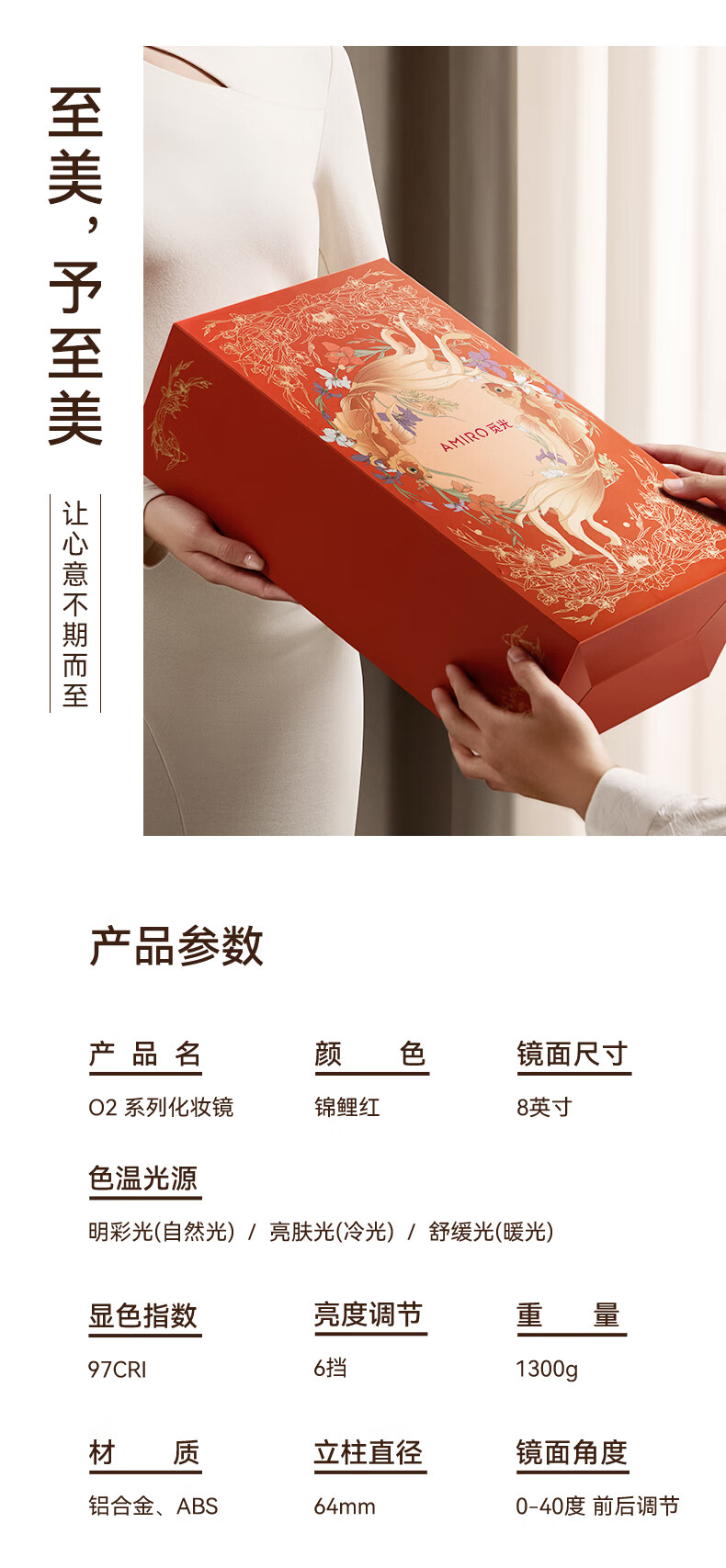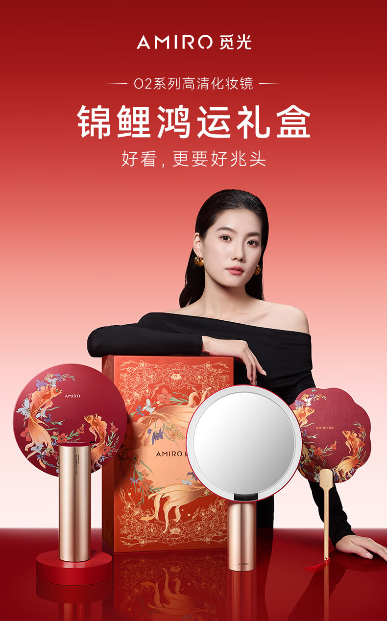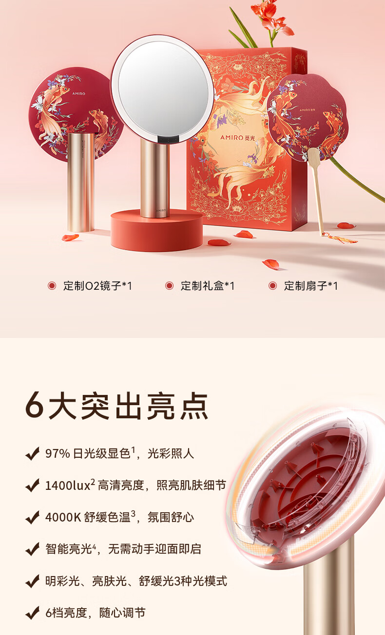 AMIRO Koi Lucky Gift Box Miguang Makeup Mirror LED Desktop Fill Light with Light Birthday Gift with Light Koi Lucky Gift Box