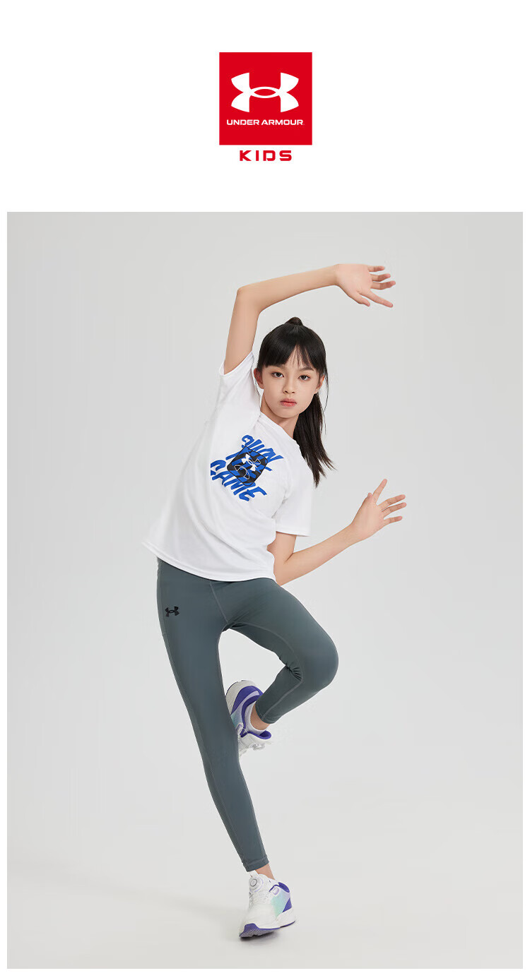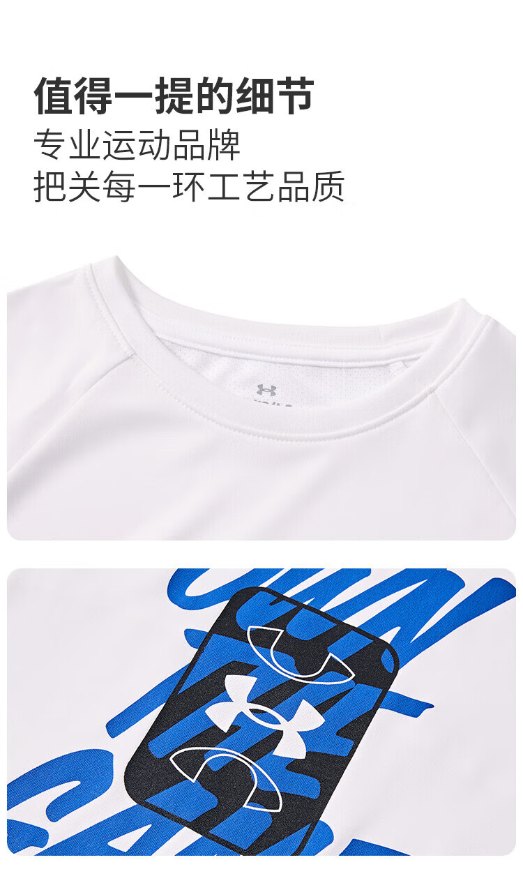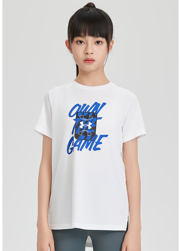 Under Armor children's quick-drying T-shirt summer short-sleeved quick-drying clothes for boys and girls tops summer clothes for children white 160