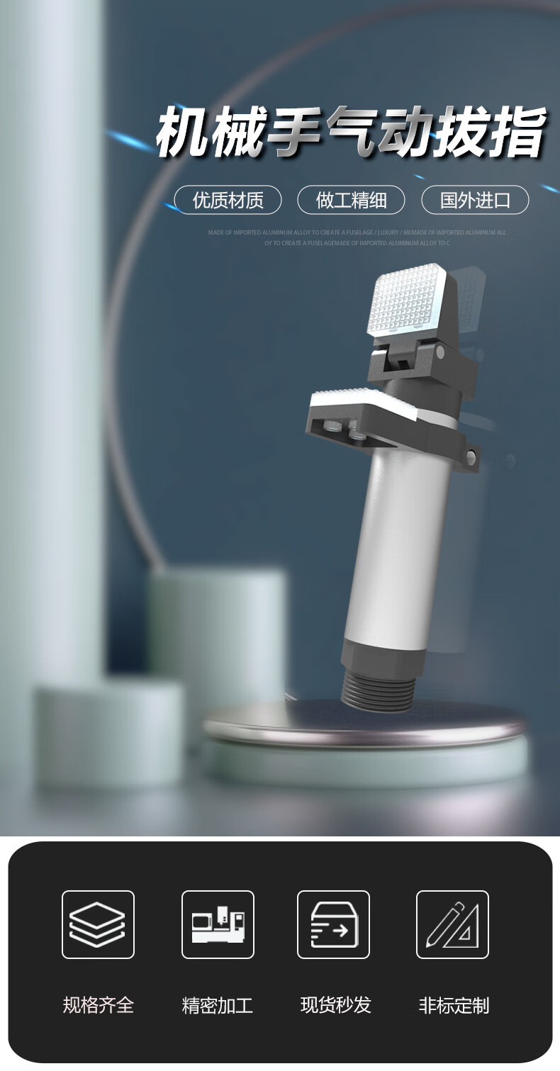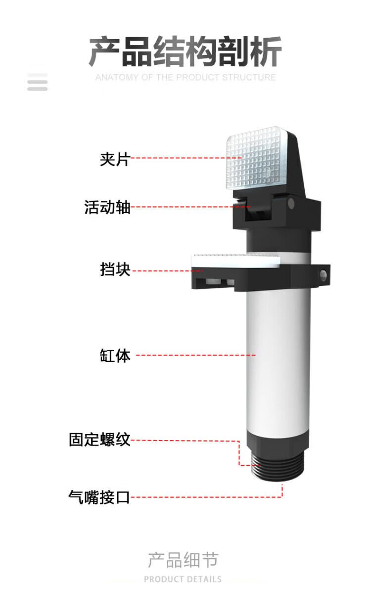 Manipulator pneumatic finger single-action dial cylinder mechanical claw hand 95 degree rotation lengthened clamp pneumatic finger BZ20-95 without baffle-blue pad