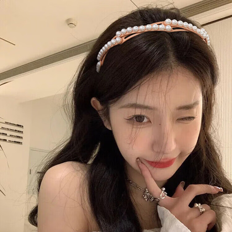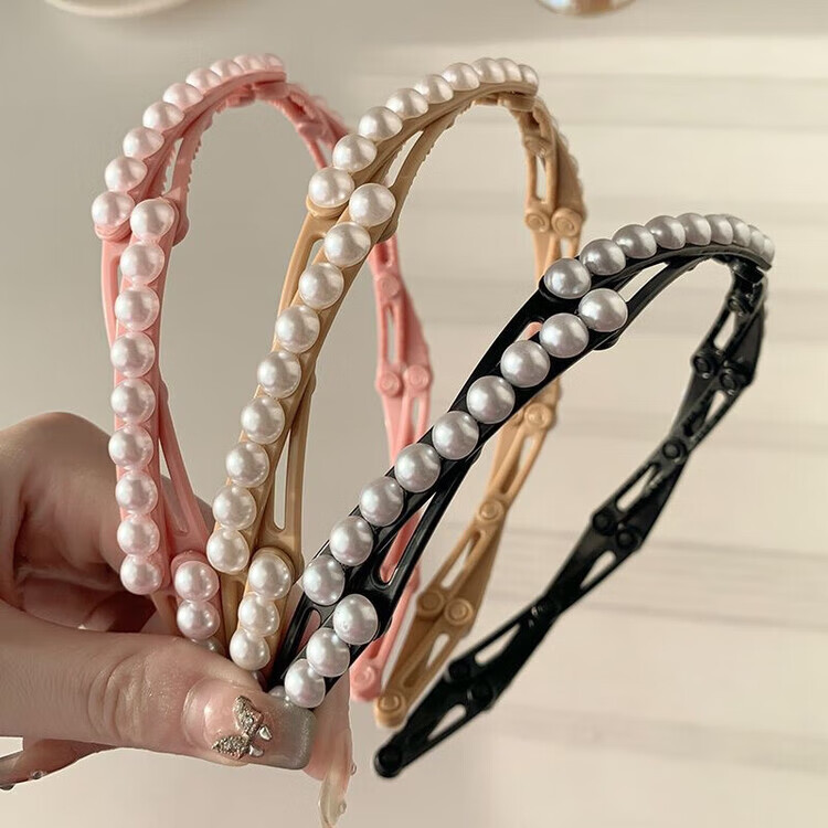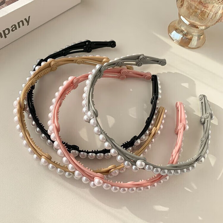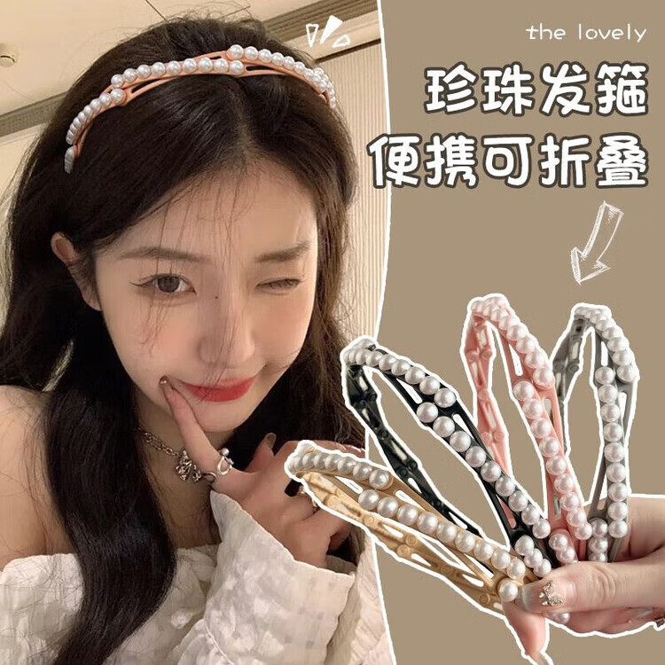 New type of pearl folding headband for women to wash their face and press their hair. Internet celebrity high skull broken hair artifact portable hair accessory. Pearl folding headband black 1 piece