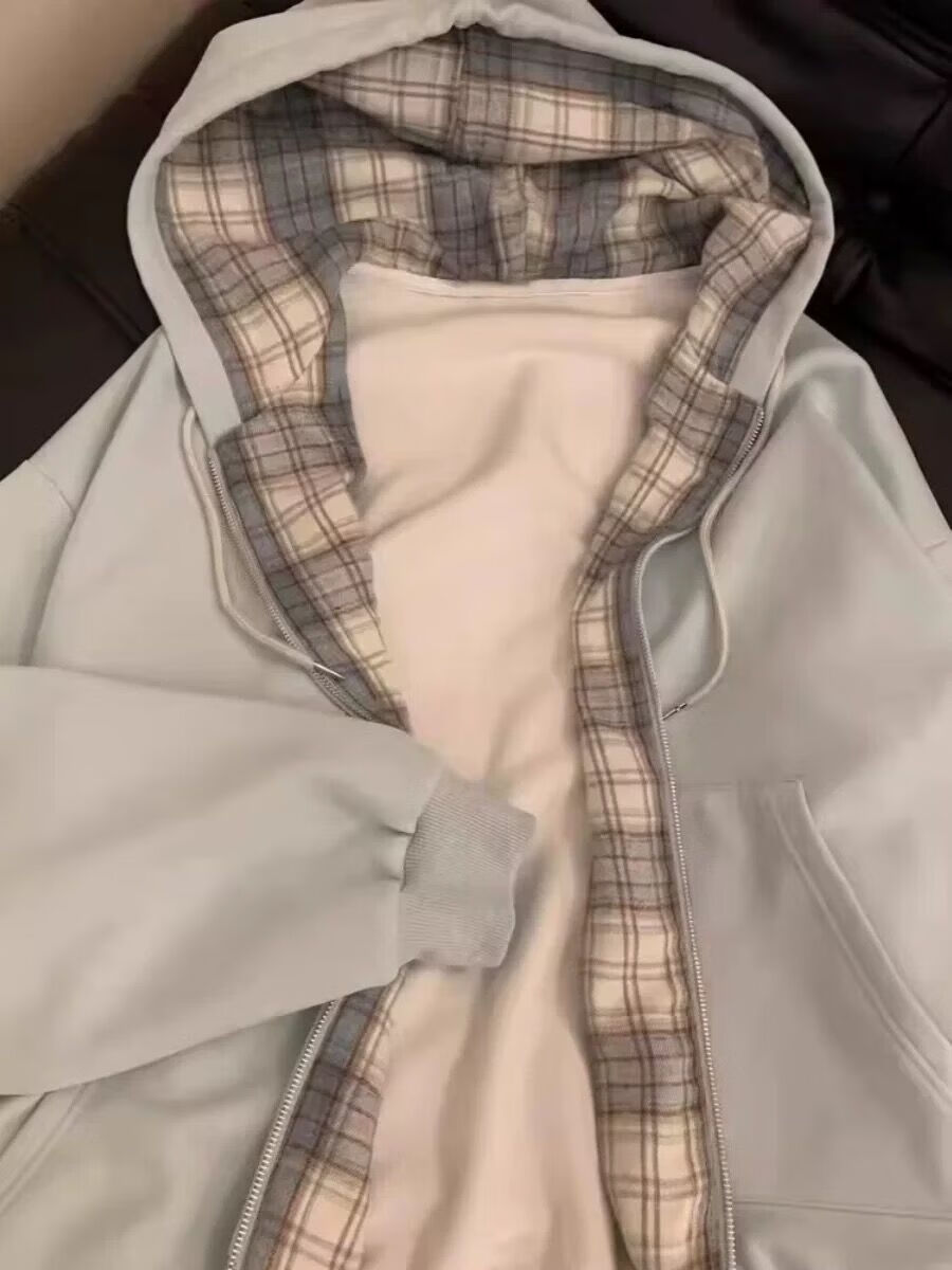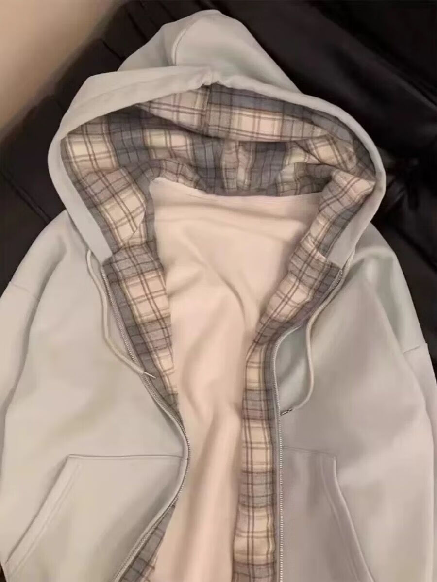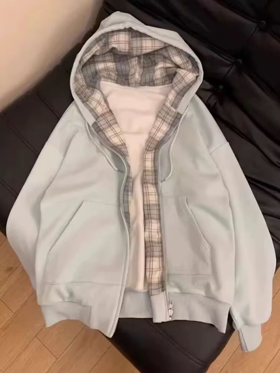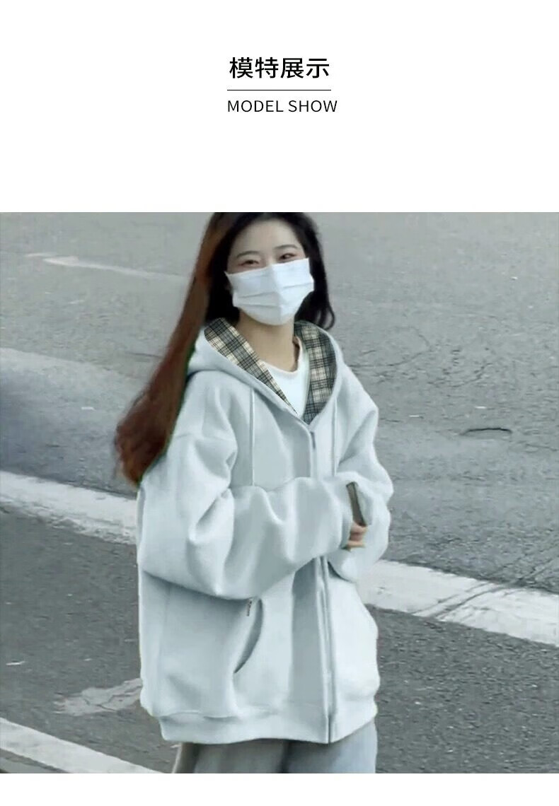 Fake two-piece hooded cardigan jacket for women autumn 2025 winter Korean style velvet loose large size student versatile sweatshirt for women light blue winter velvet (double layer fabric 400g) M recommended 95-110Jin Jin is equal to 0.5 kg