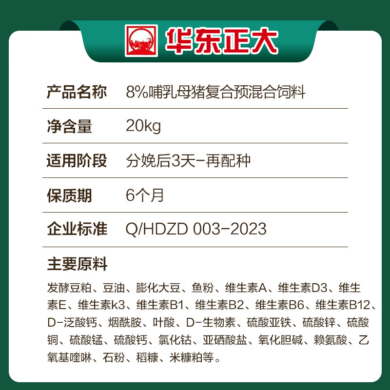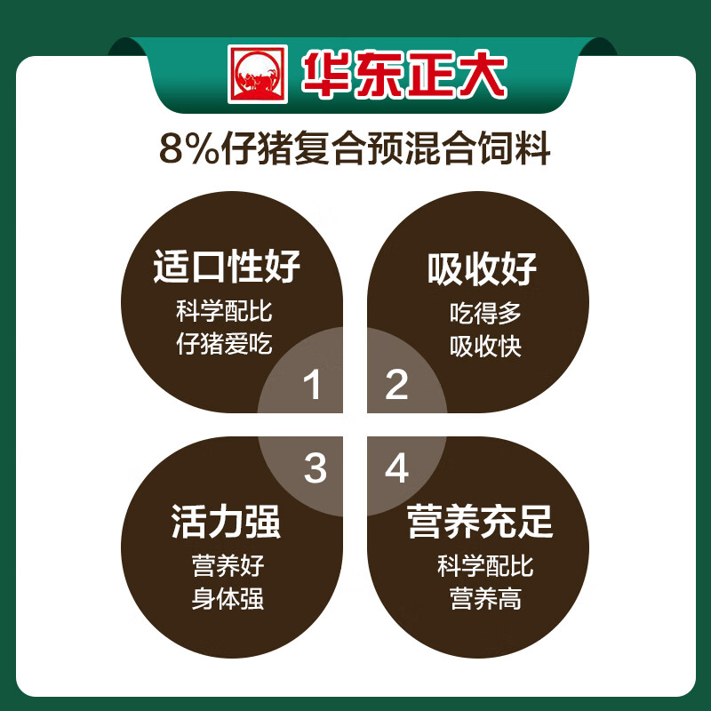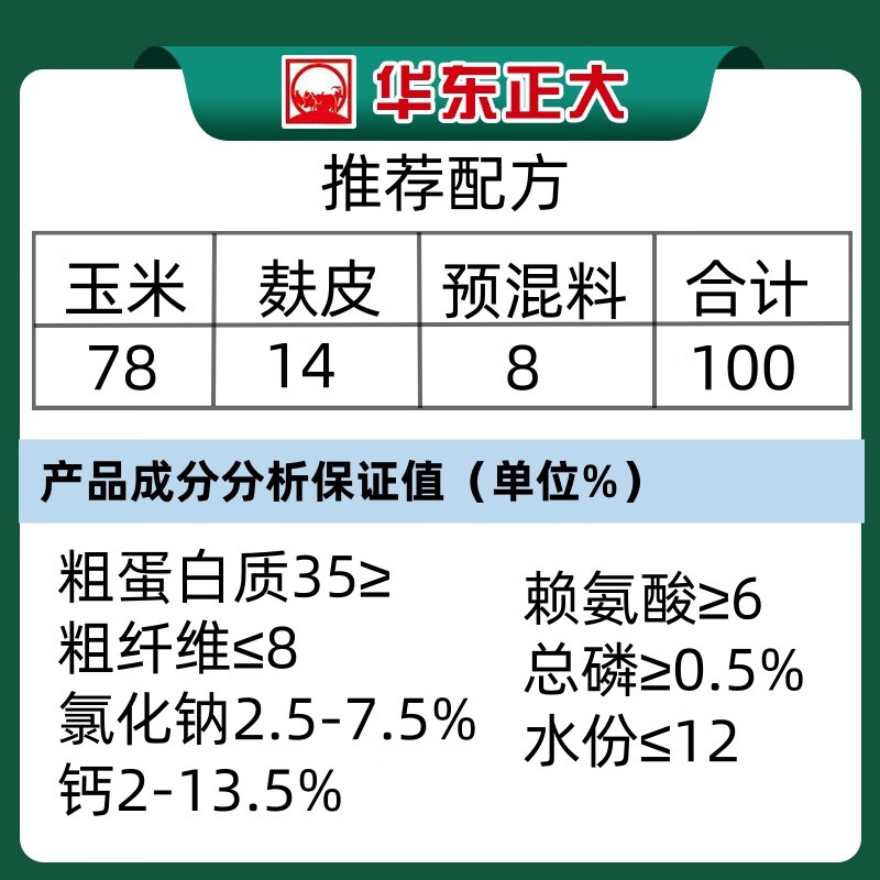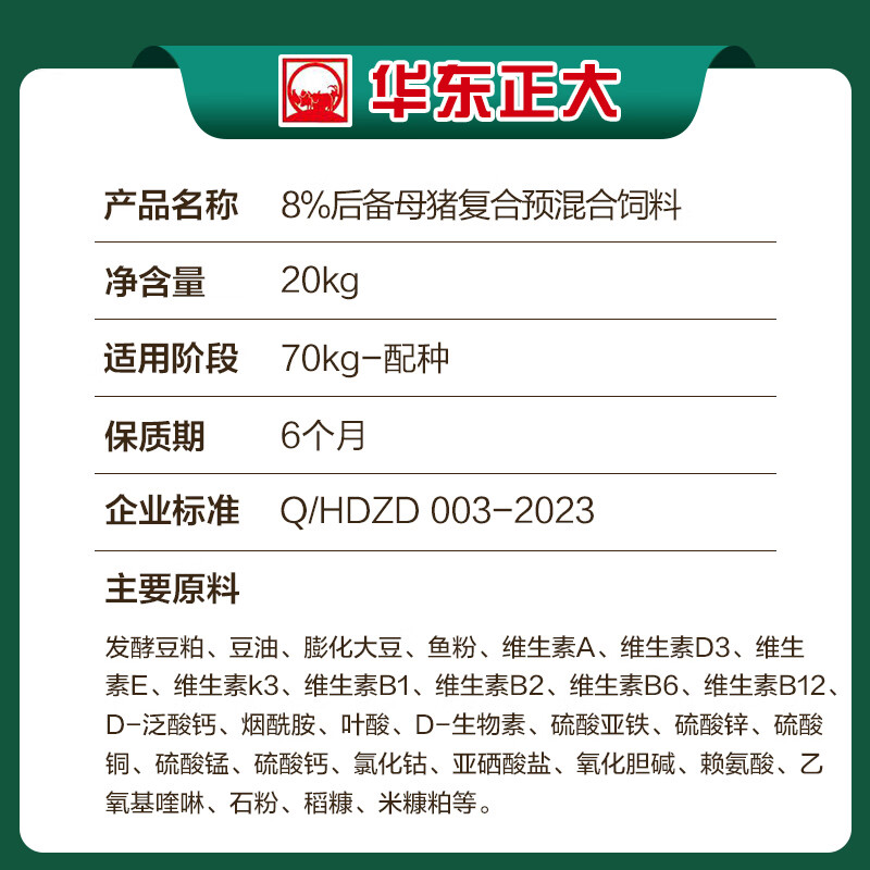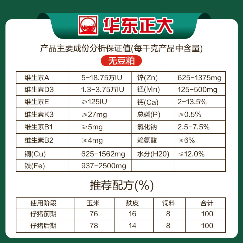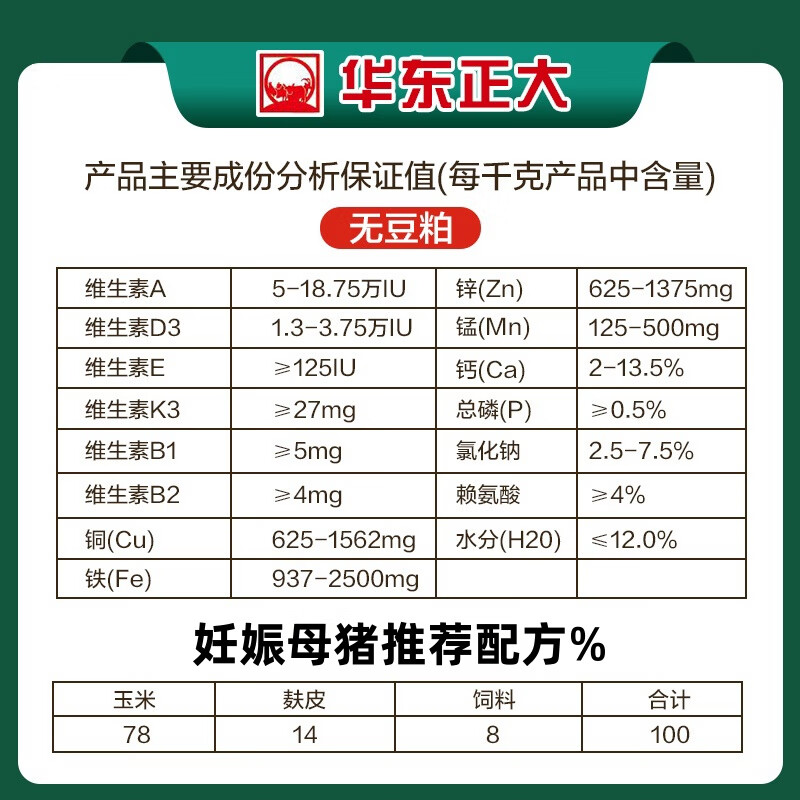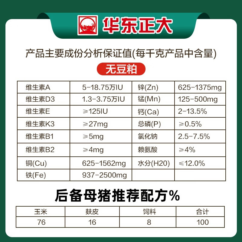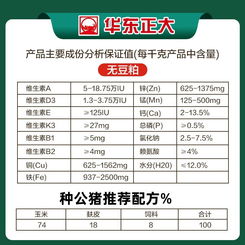 Huadong Zhengda 8% soybean meal-free piglet premix accurately proportions to breed strong piglets, promotes growth, and is cost-effective. 1 bag of soybean meal-free gilt feed. 1 bag of soybean meal-free piglet feed. 40 Jin Jin is equal to 0.5 kg. Mixed with 500 Jin Jin is equal to 0.5 kg. Feed