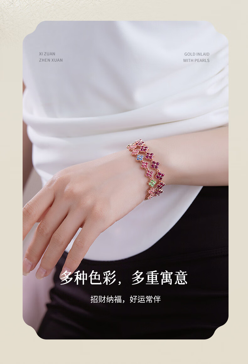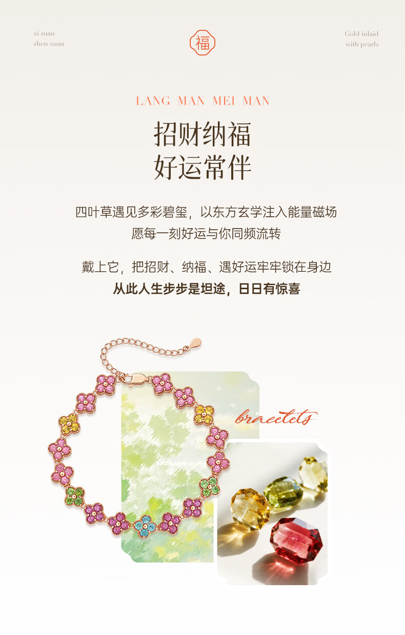 Lucky four-leaf clover natural color tourmaline bracelet for women. Surprise gift for girlfriend on birthday and Valentine's Day. Four-leaf clover tourmaline bracelet. Surprise gift for girlfriend on birthday and Valentine's Day.