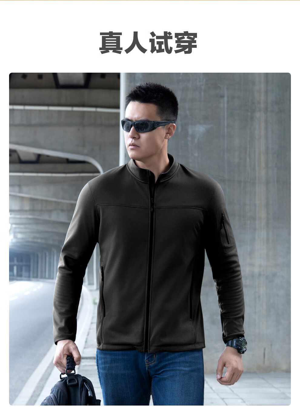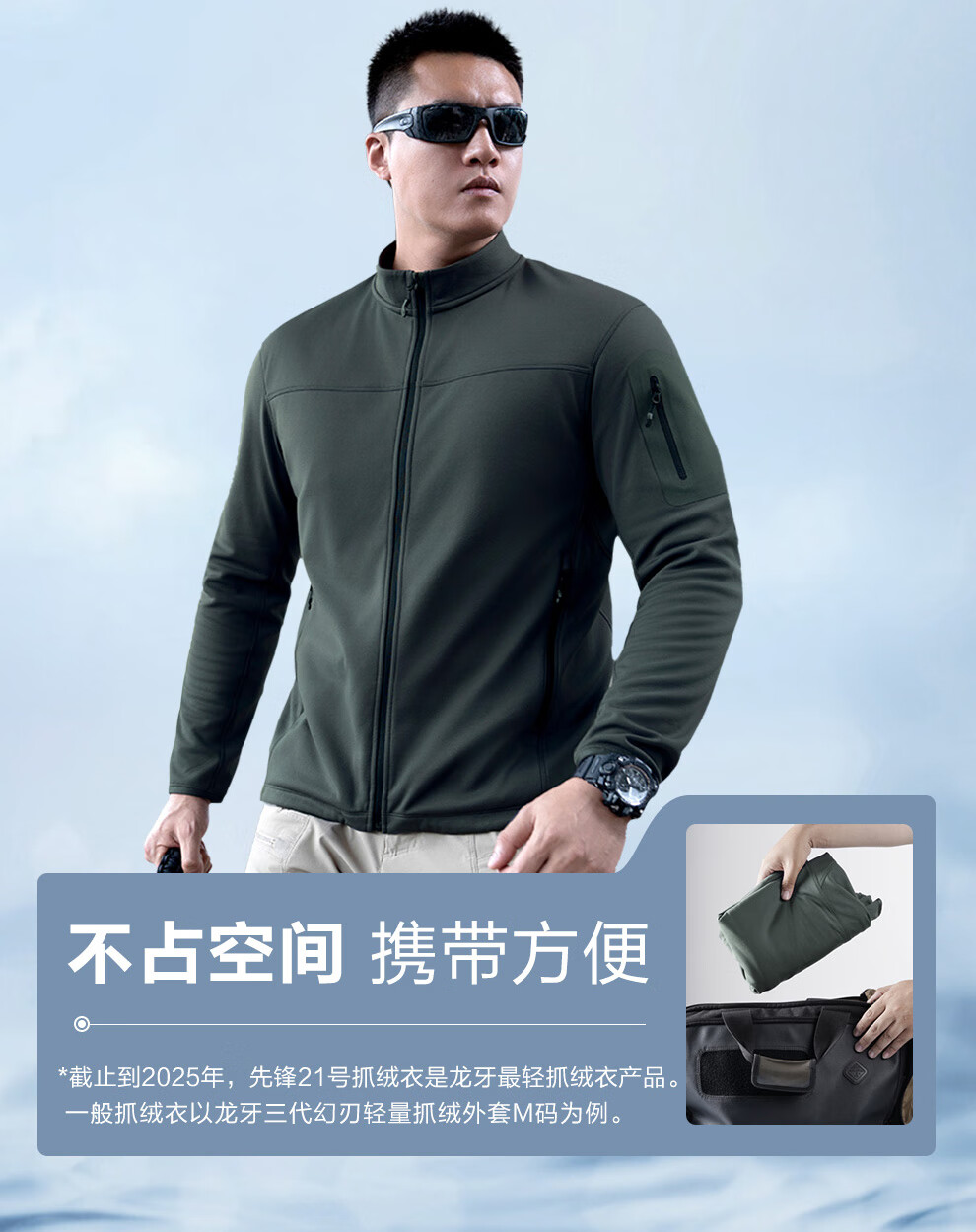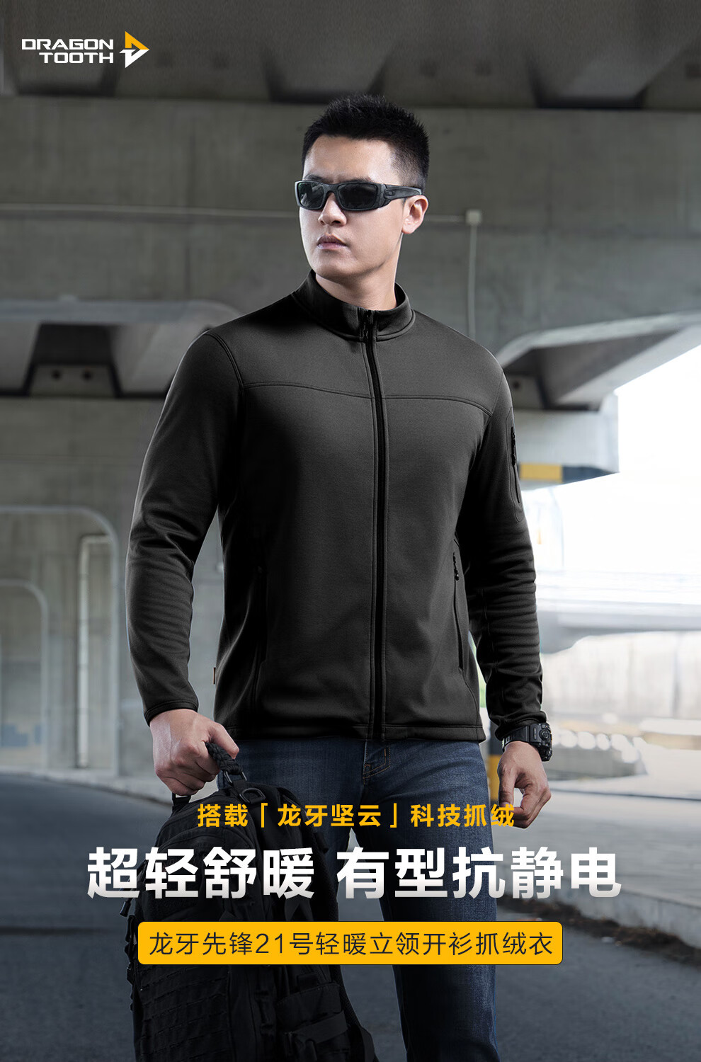 Longya Pioneer No. 21 Light Warm Stand Collar Cardigan Fleece Jacket Autumn and Winter Outdoor Comfortable Warmth Coldproof Handsome Lightweight Jacket Extreme Night Black S 170/92A (Weight 125-140Jin Jin equals 0.5kg)