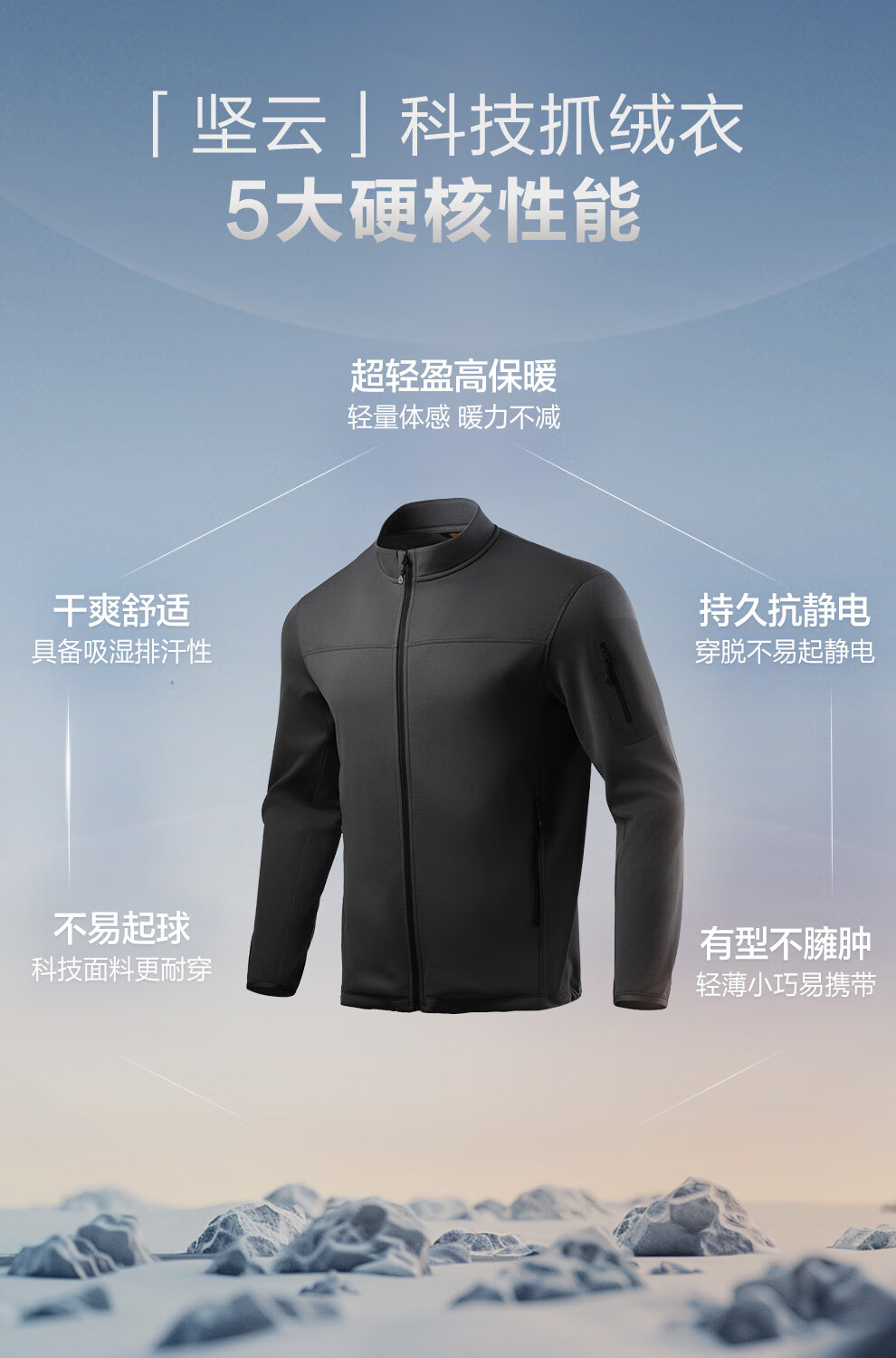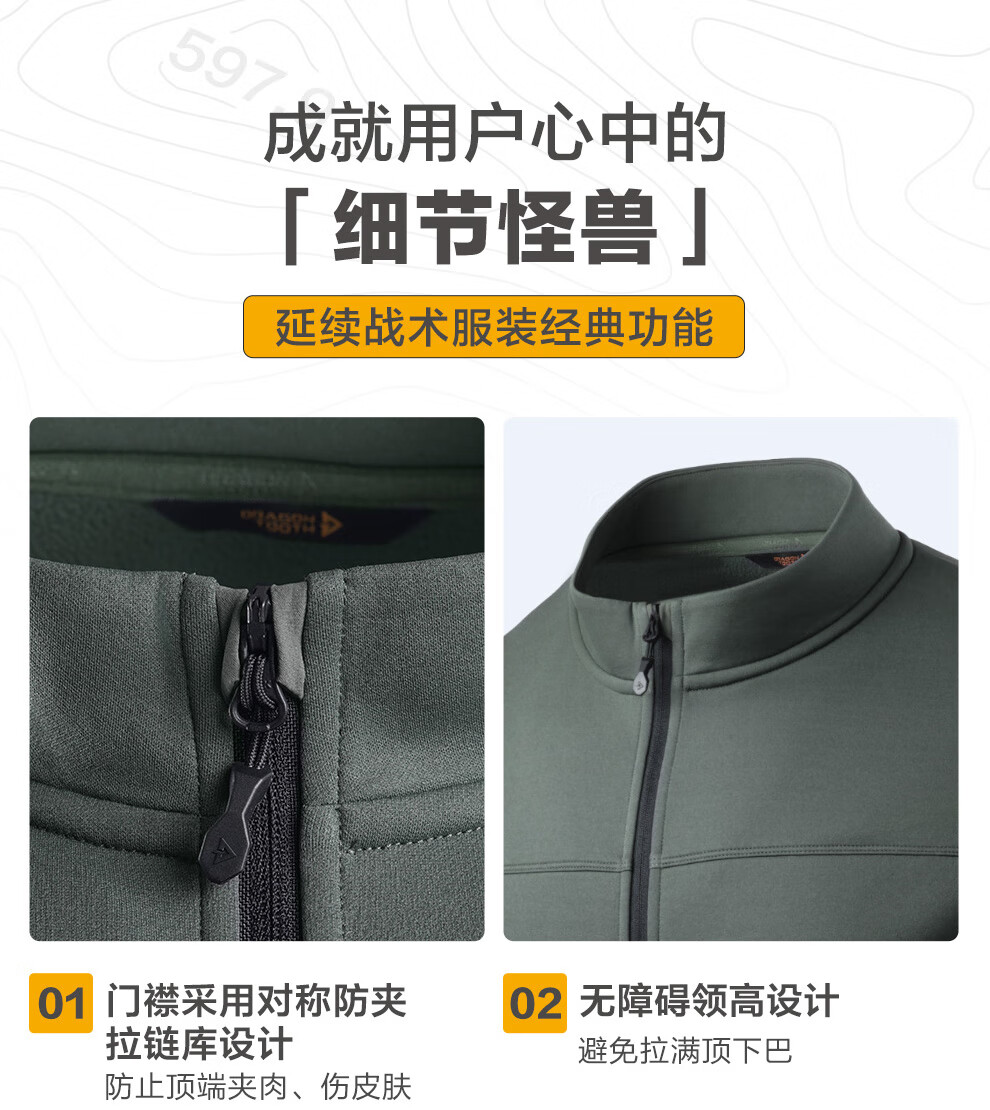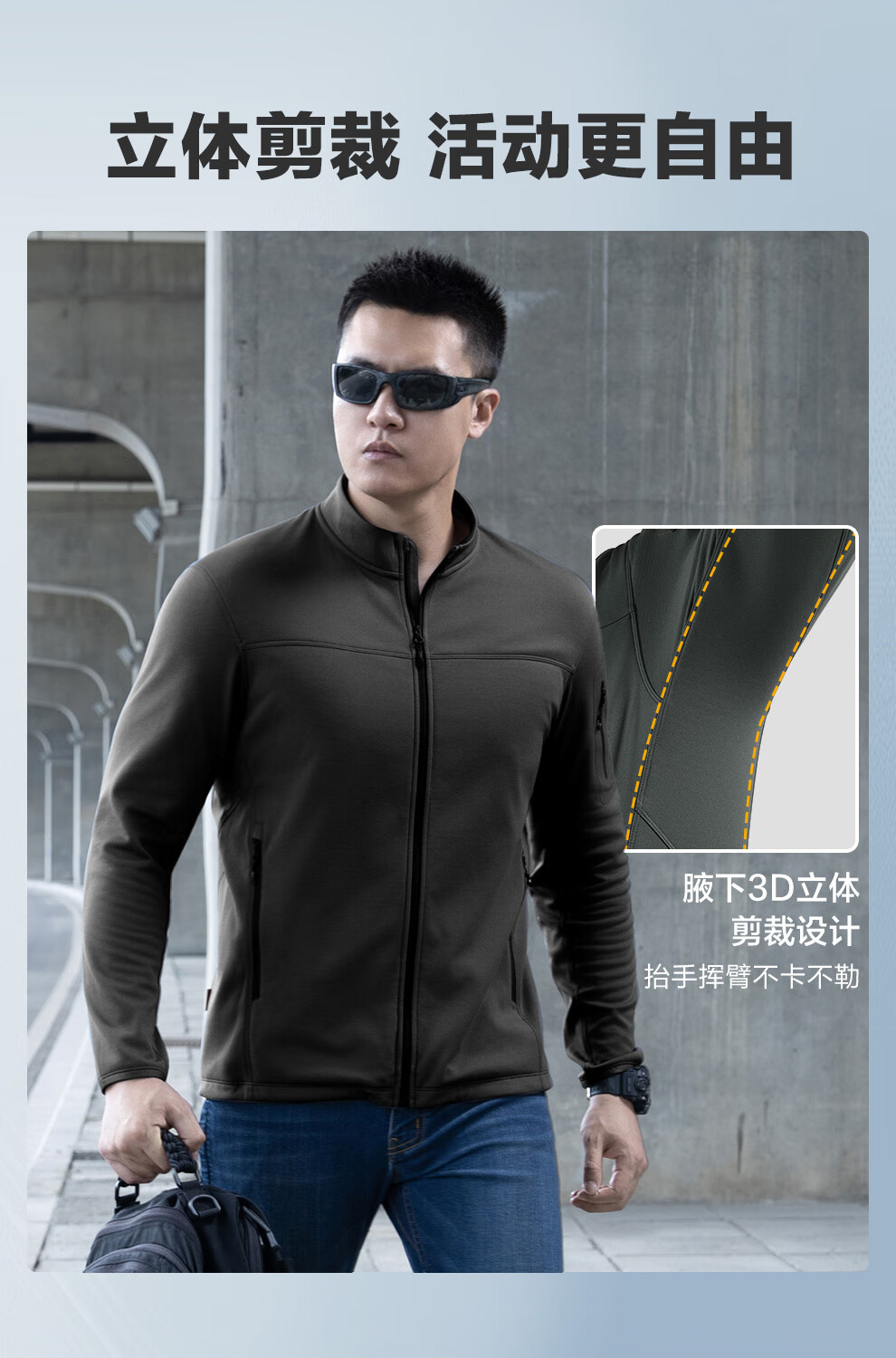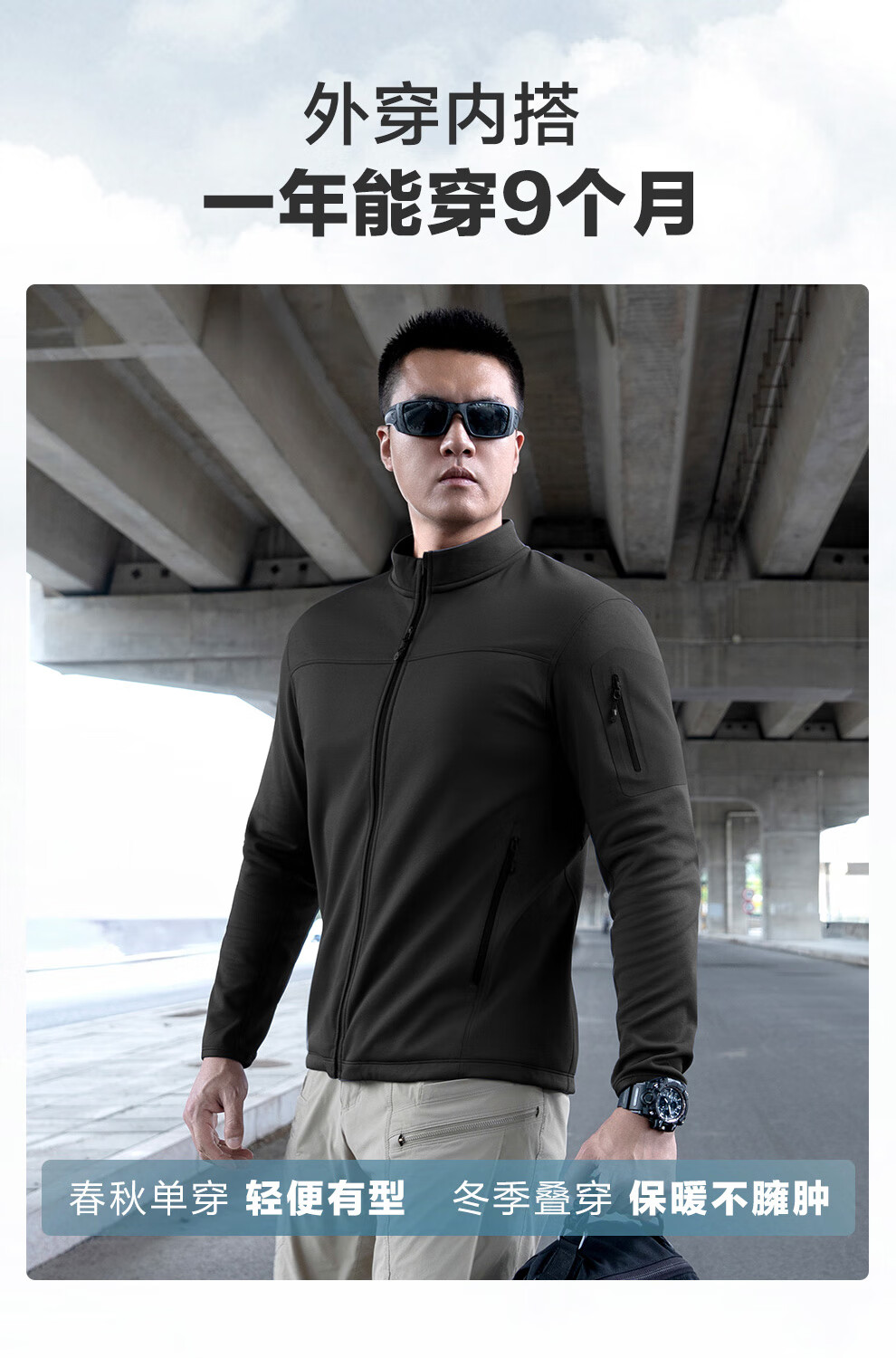 Longya Pioneer No. 21 Light Warm Stand Collar Cardigan Fleece Jacket Autumn and Winter Outdoor Comfortable Warmth Coldproof Handsome Lightweight Jacket Extreme Night Black S 170/92A (Weight 125-140Jin Jin equals 0.5kg)