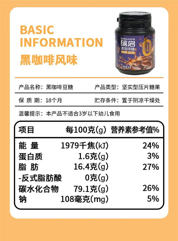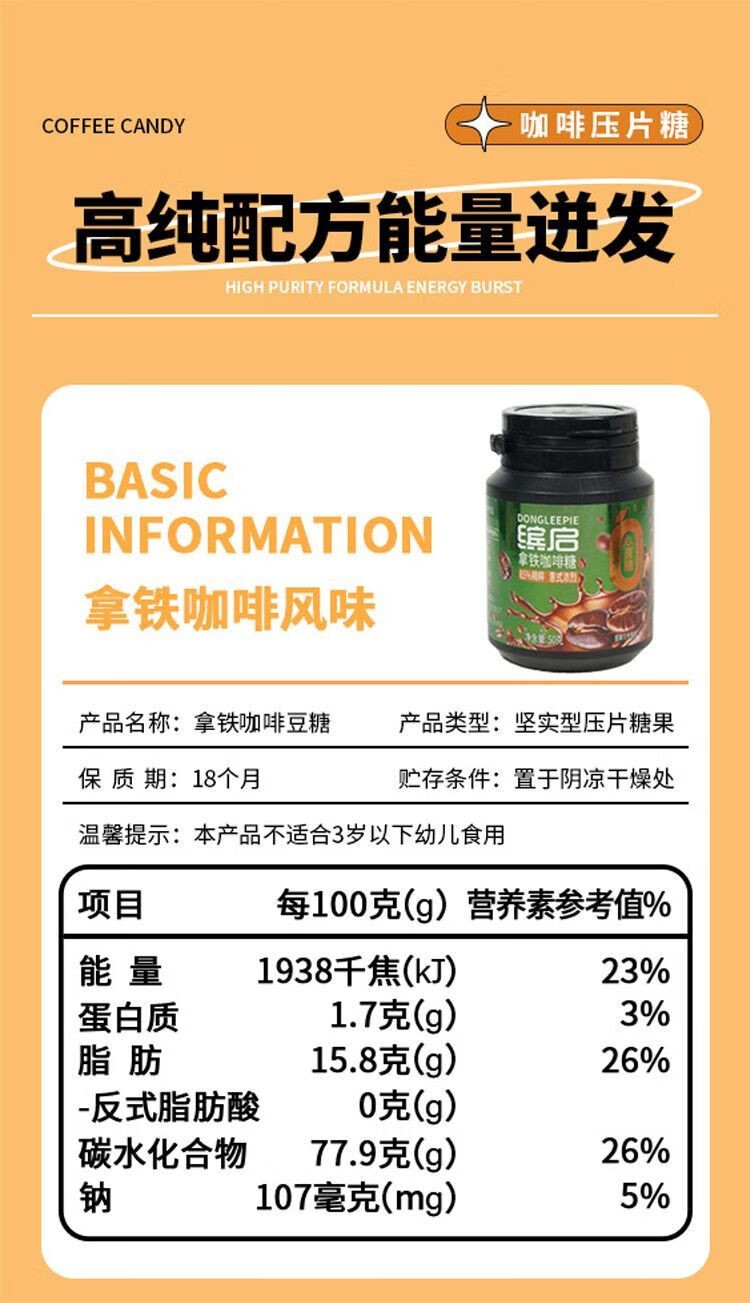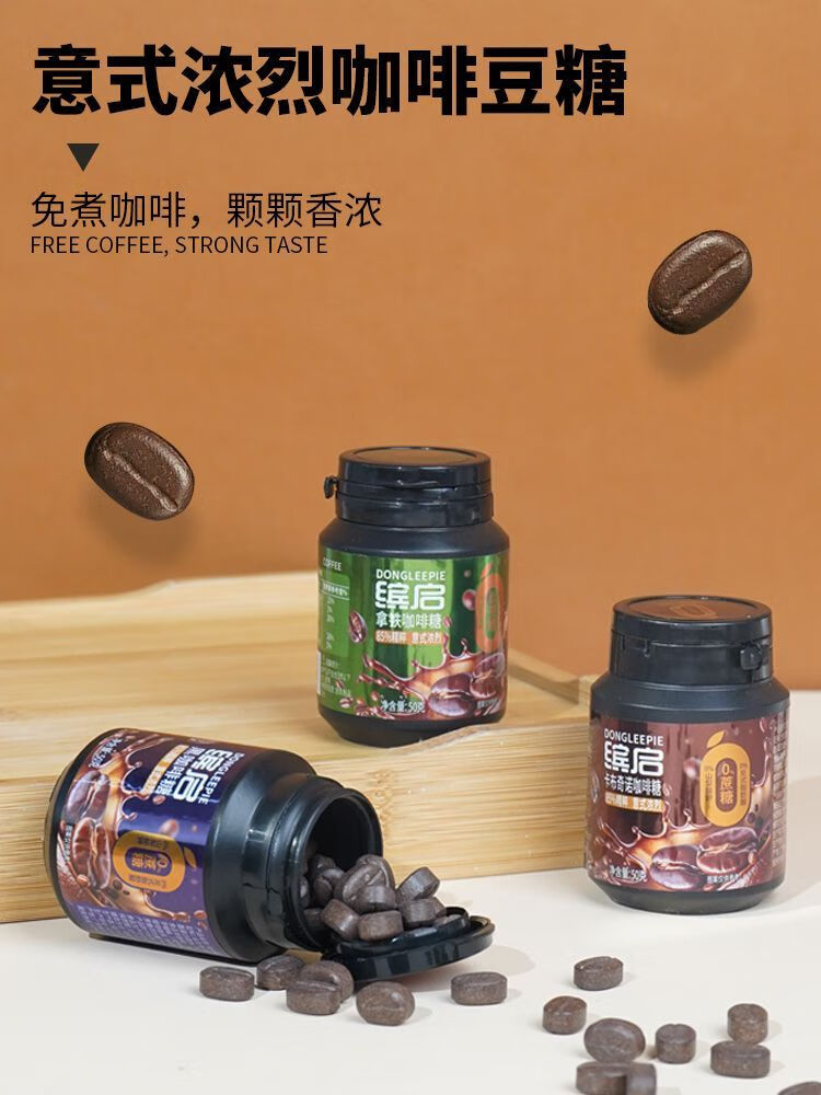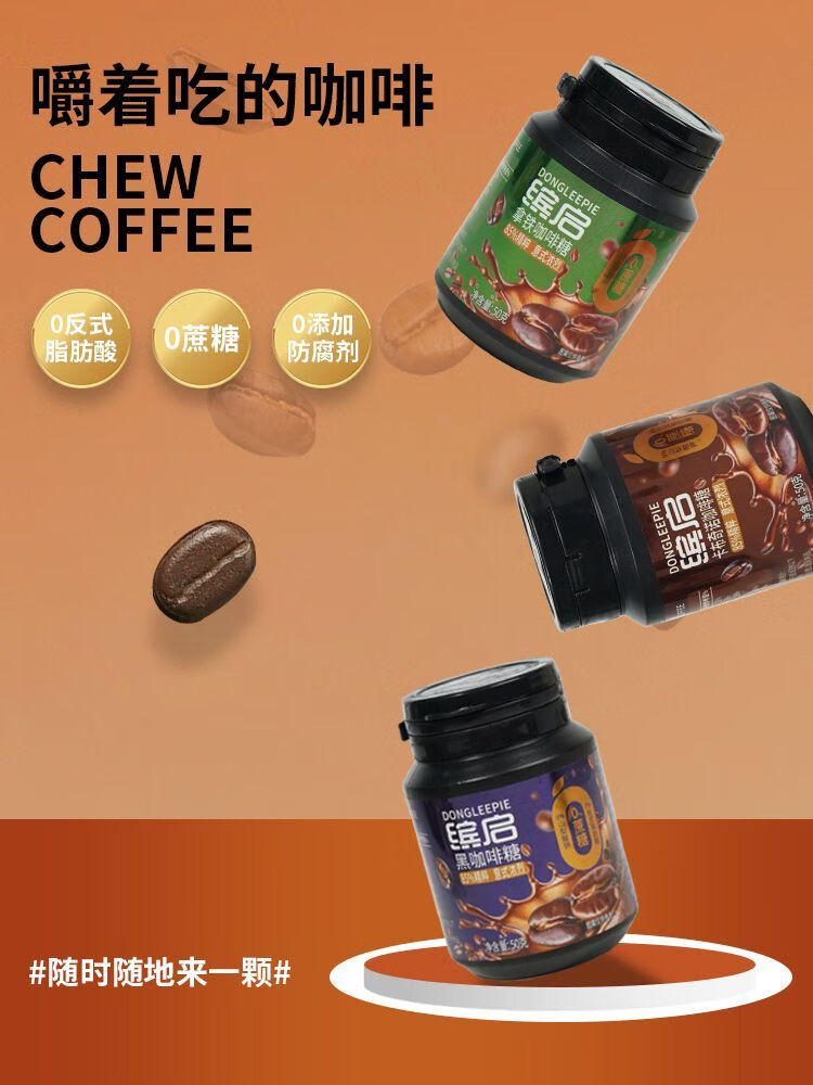 The same style as Fat Donglai, sugar-free coffee for diabetics, concentrated 0 sucrose latte, chewable for driving overtime, 6 cans, 2 cans each of 3 flavors of coffee bean sugar