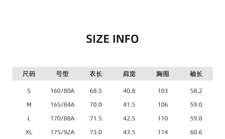 China (cm) 160-165/84-86 165-170 / 88-90 167-172 / 92-96 168-173 / 98-102 170-176 / 106-110