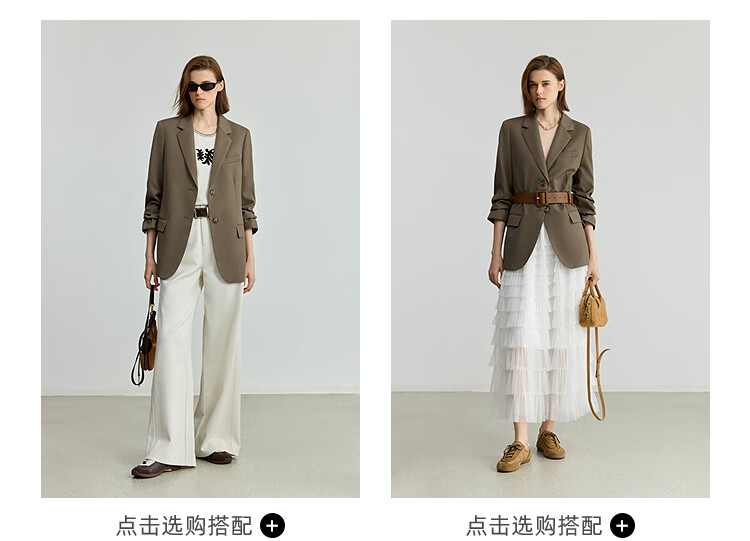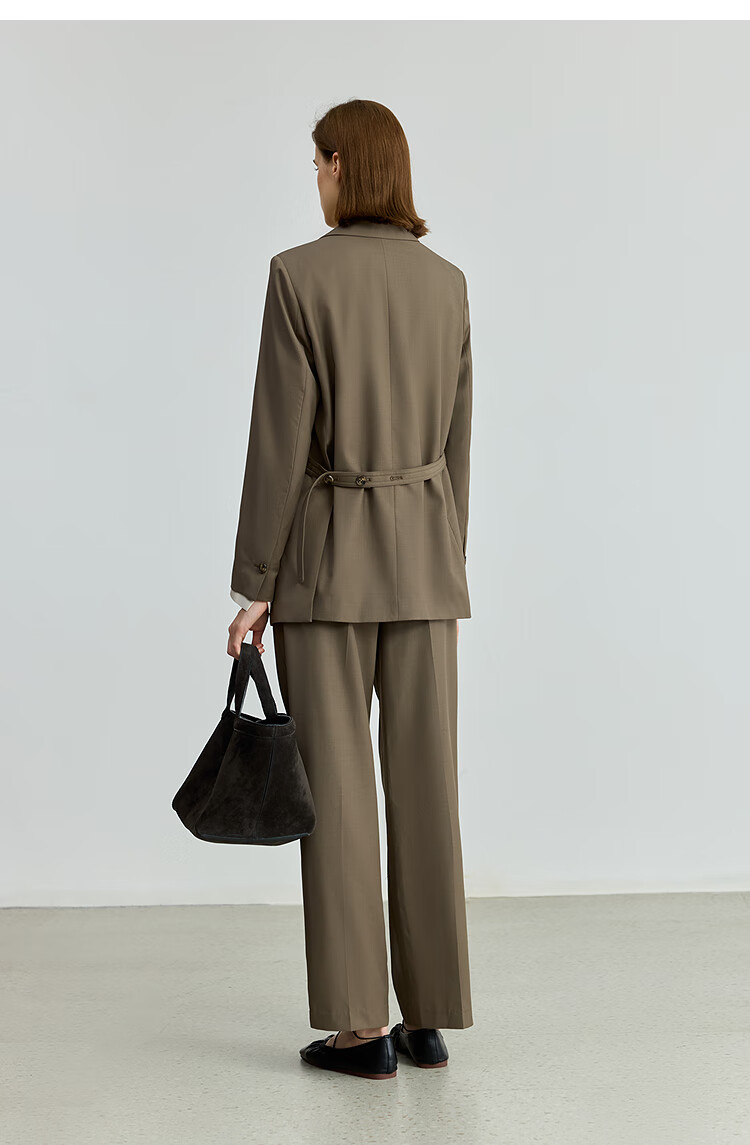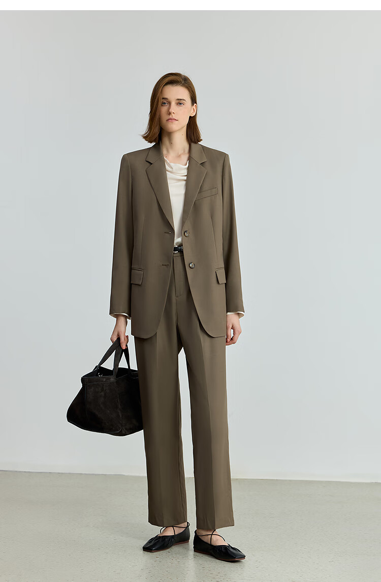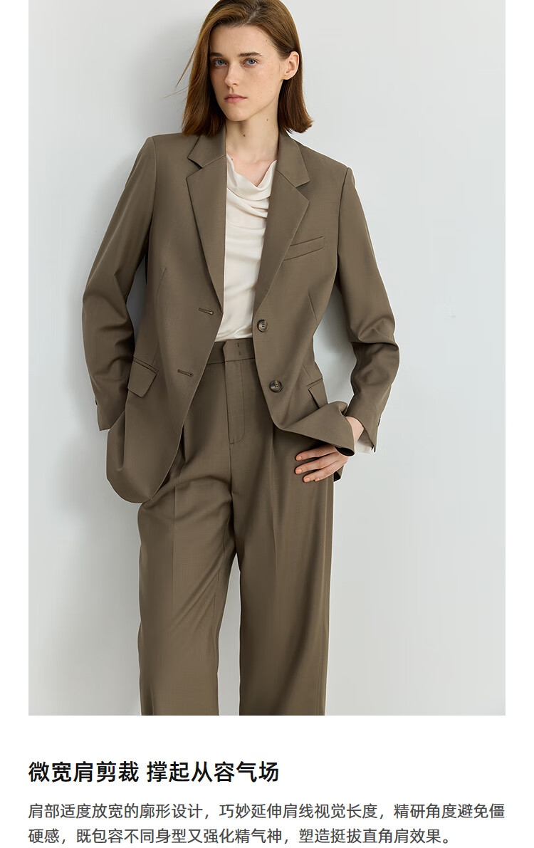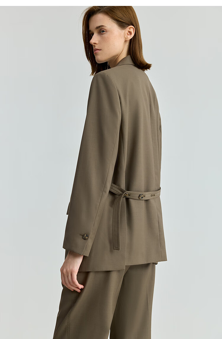LILY2025 new autumn women's clothing contains sheep wool worsted retro old money style casual commuter blazer suit 706 camel M