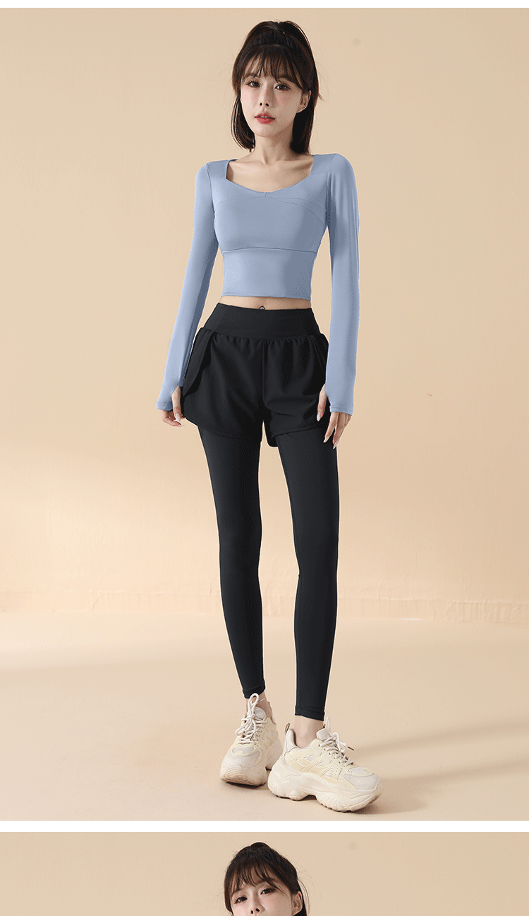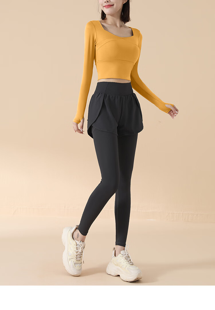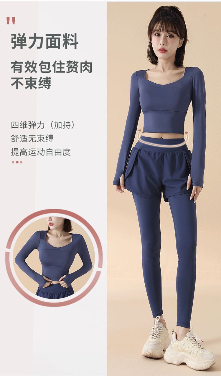 Yoga clothes for women 2025 spring and autumn new long-sleeved slim sports tops running training Pilates fitness clothes set Star Black Long Sleeve + Star Black Pants L Recommended 115-130 Jin Jin equals 0.5 kg