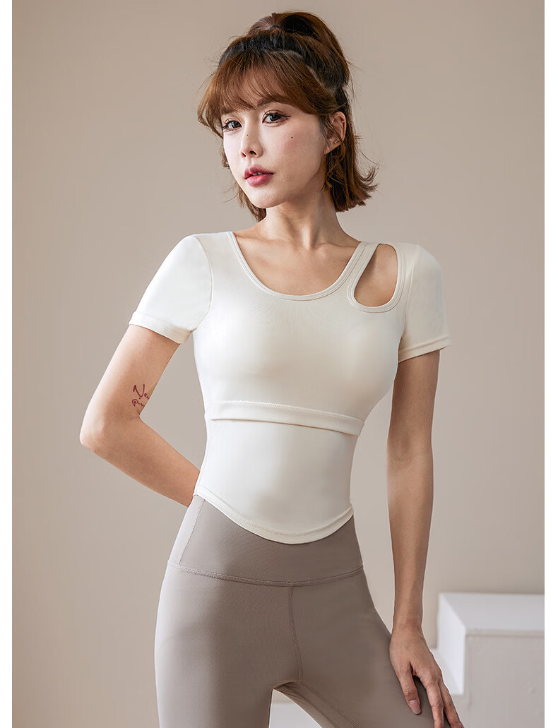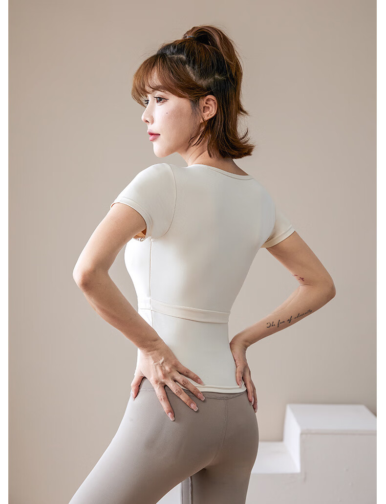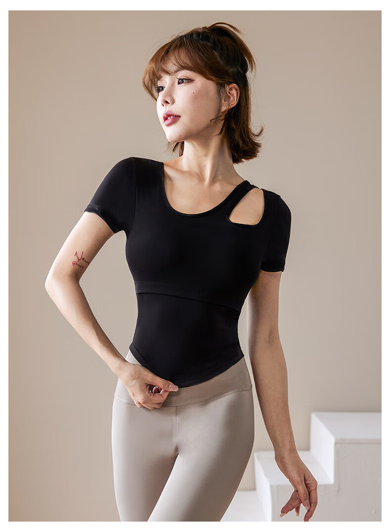 Yoga wear women's short-sleeved 2025 new spring and summer fitness top Pilates training morning running waist shaping sports suit Star Black Short Sleeve L Recommended 120-135 Jin Jin equals 0.5 kg