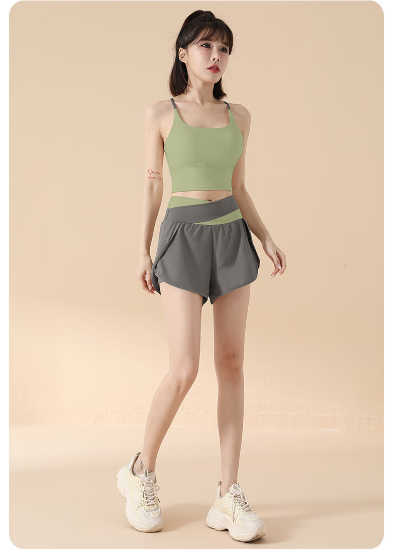 Color-blocking sports suit for women outdoor spring and autumn fitness yoga clothes 2025 new Pilates training morning running top cardamom green bra S recommended 80-100Jin Jin equals 0.5 kg
