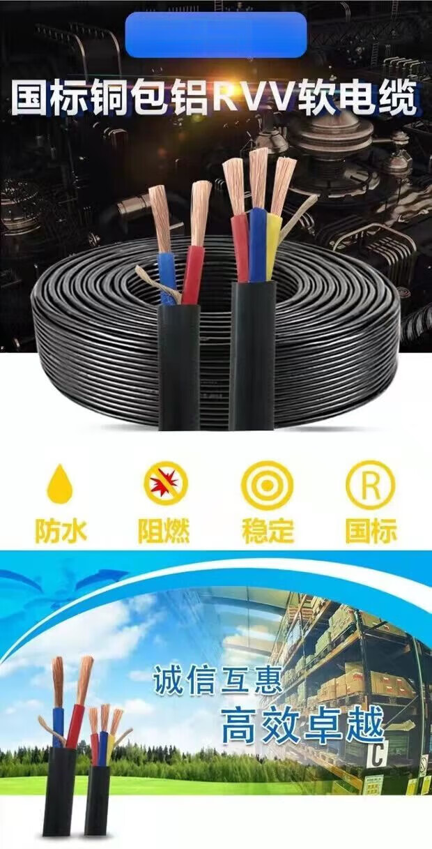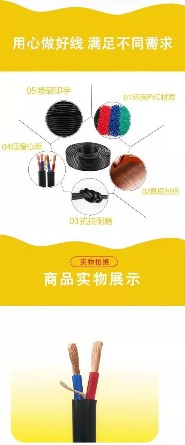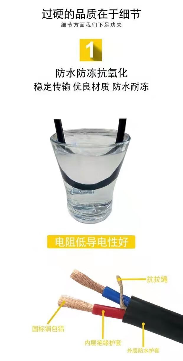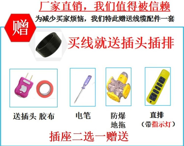 Electric wire with plug and socket integrated cable engineering 2-core 3-core household outdoor waterproof and anti-freeze high-power extension A 2 x 1 square 10 meters free gift