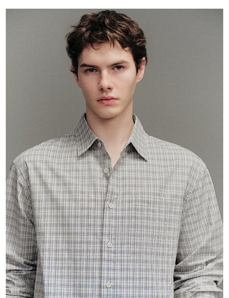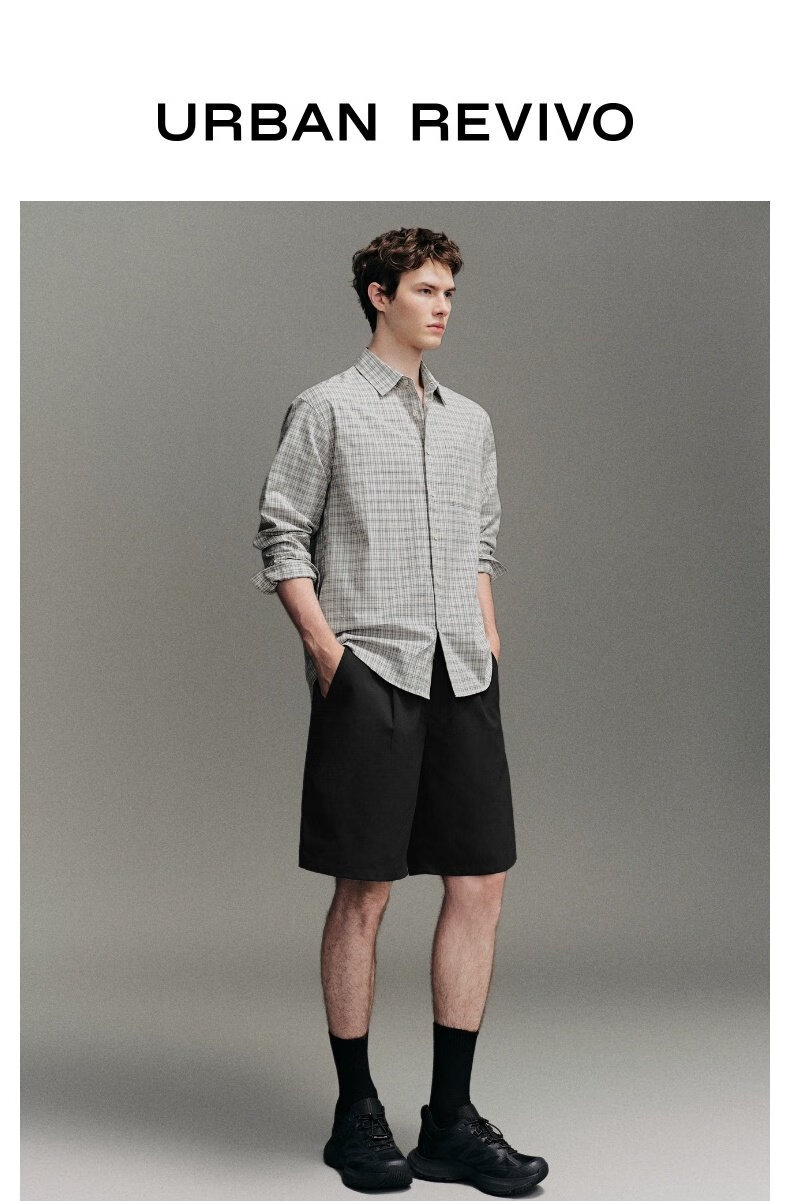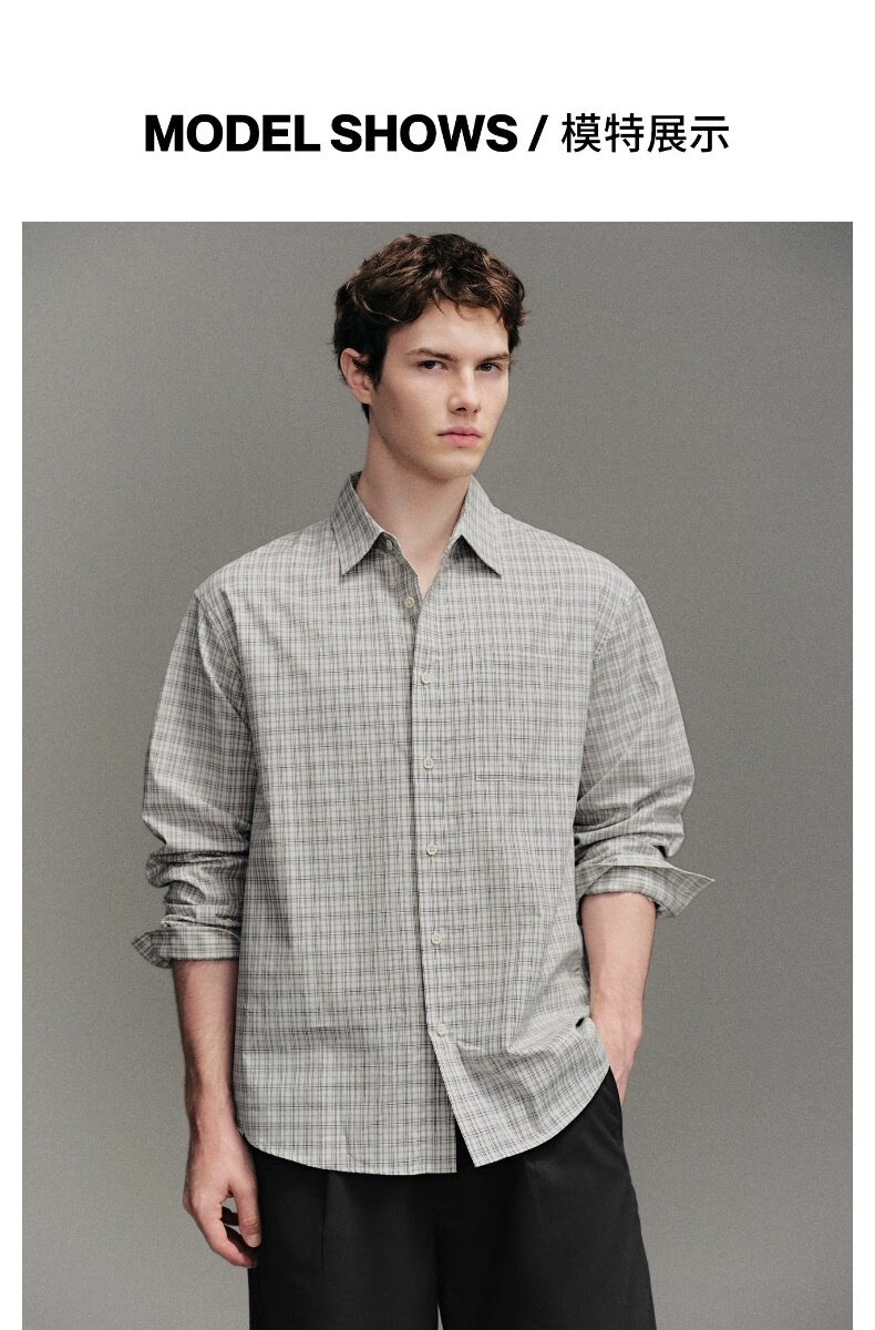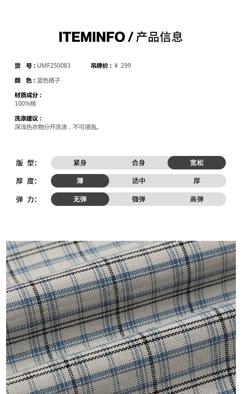 UR2026 spring new men's retro casual plaid cotton long-sleeved cardigan shirt UMF250083 blue plaid S