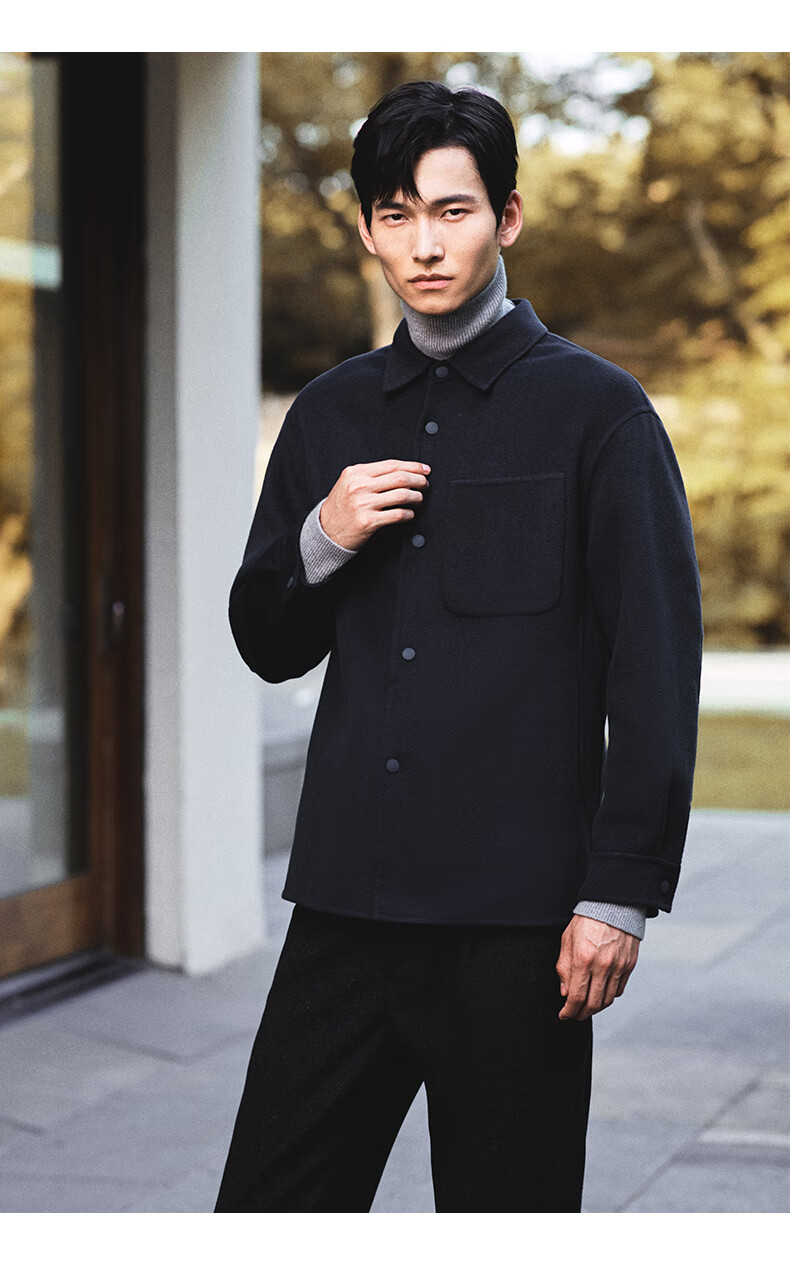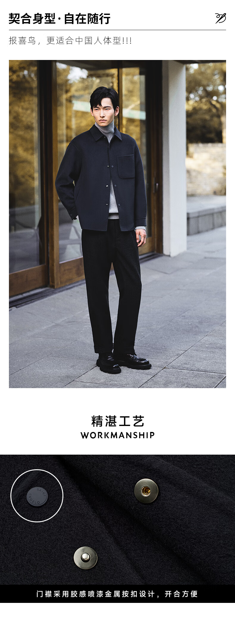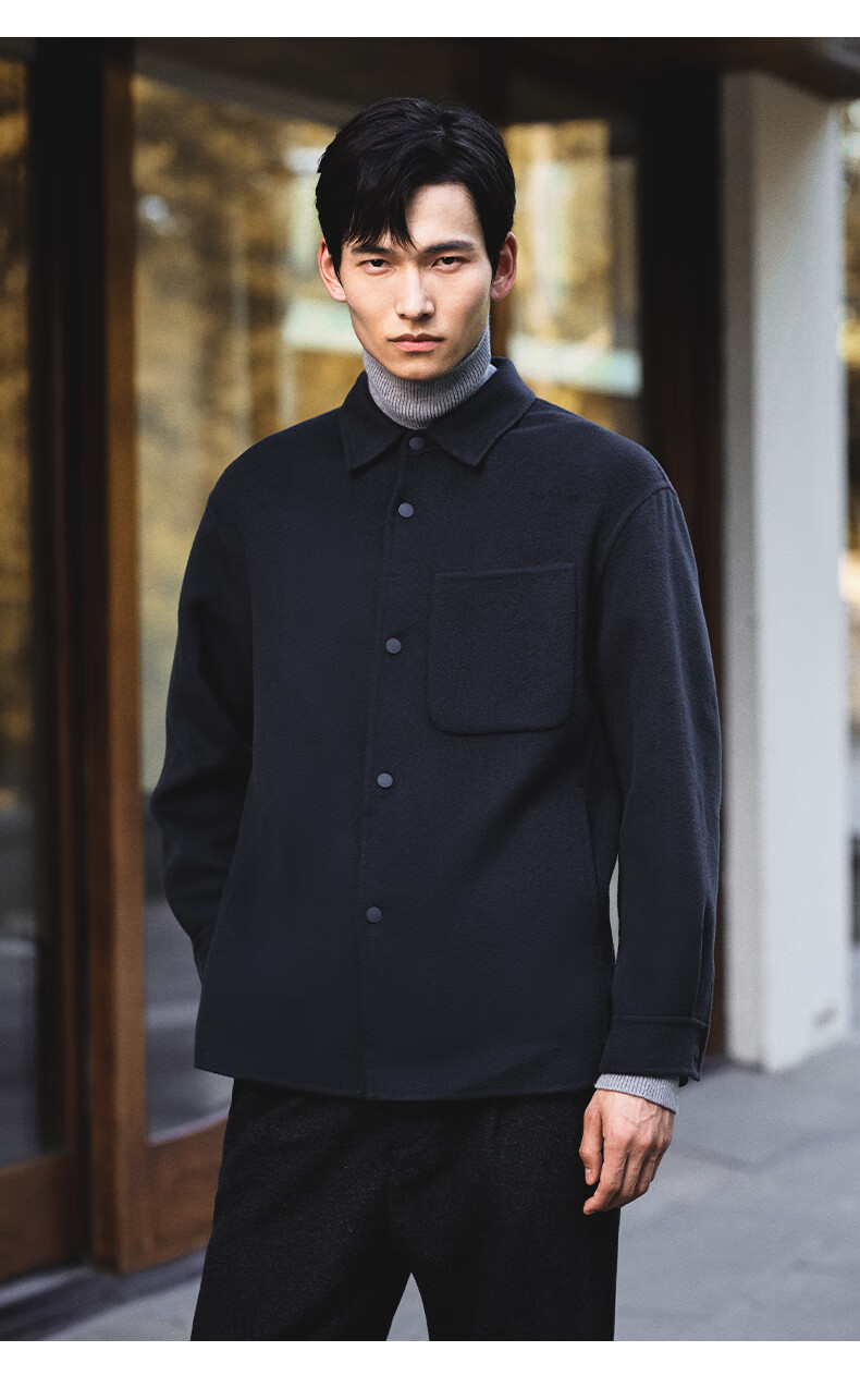 Announcement Bird Jacket Men's Autumn Men's Pure Wool Shirt Style Micro-wide Edition Double-sided Woolen Jacket Coat Lapel Micro-wide Men's Deep Ocean Blue L -48(175/96)