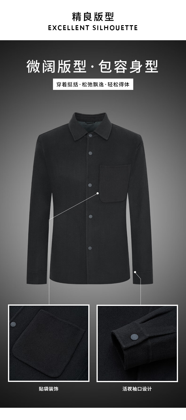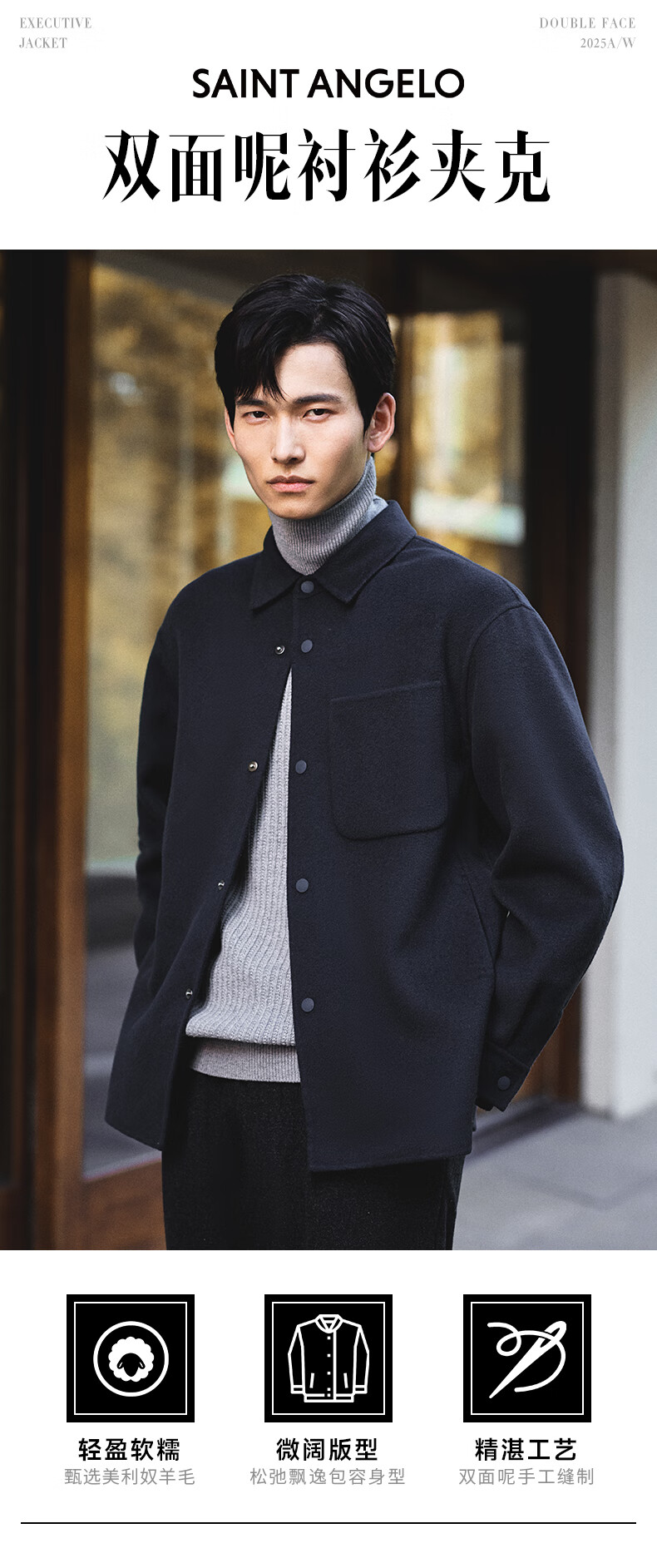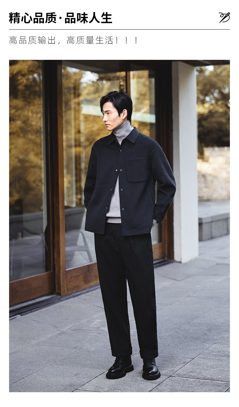 Announcement Bird Jacket Men's Autumn Men's Pure Wool Shirt Style Micro-wide Edition Double-sided Woolen Jacket Coat Lapel Micro-wide Men's Deep Ocean Blue L -48(175/96)