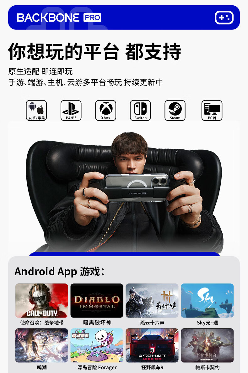 BACKBONE new product official flagship Backbone-Pro mobile game controller suitable for Apple iPhone15/16iOS/Android Android typeC interface Backbone-pro