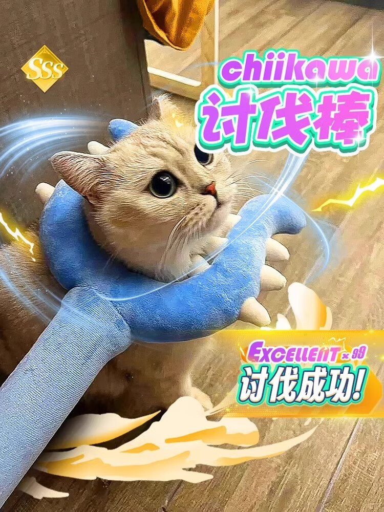 Plush crusade stick chiikawa black cat pet Jiikawa Xiaohachi children's toy fork cat winter blue crusade stick 1 pack color style random delivery