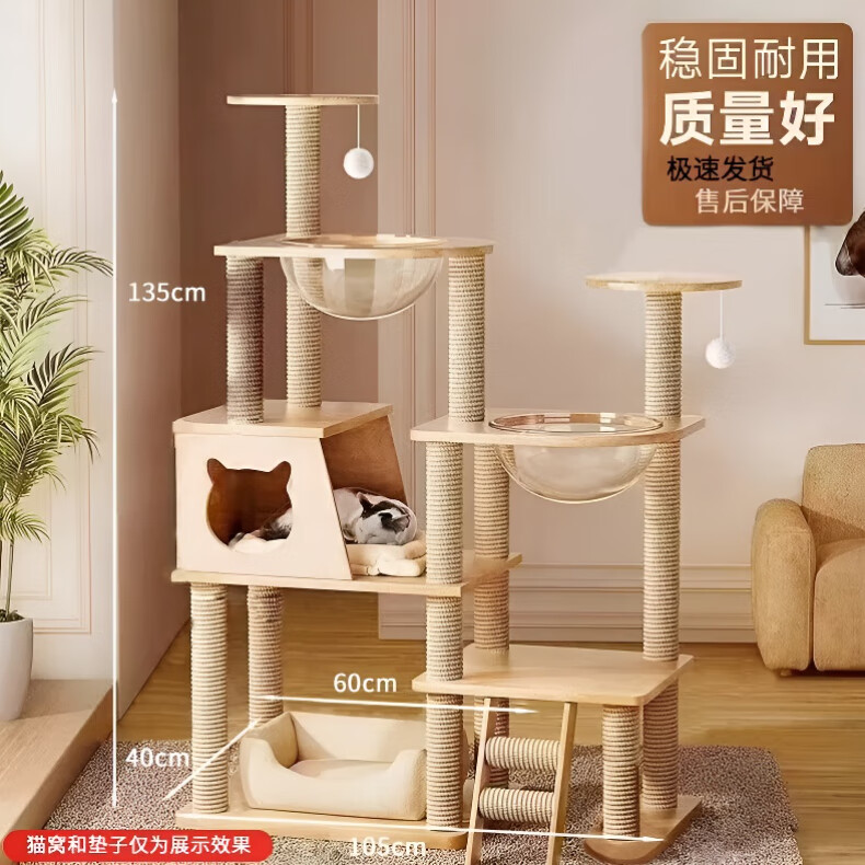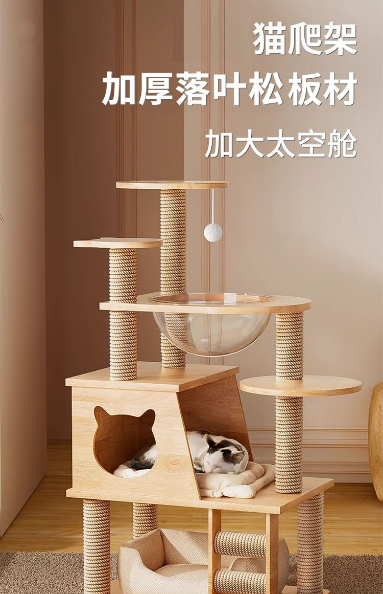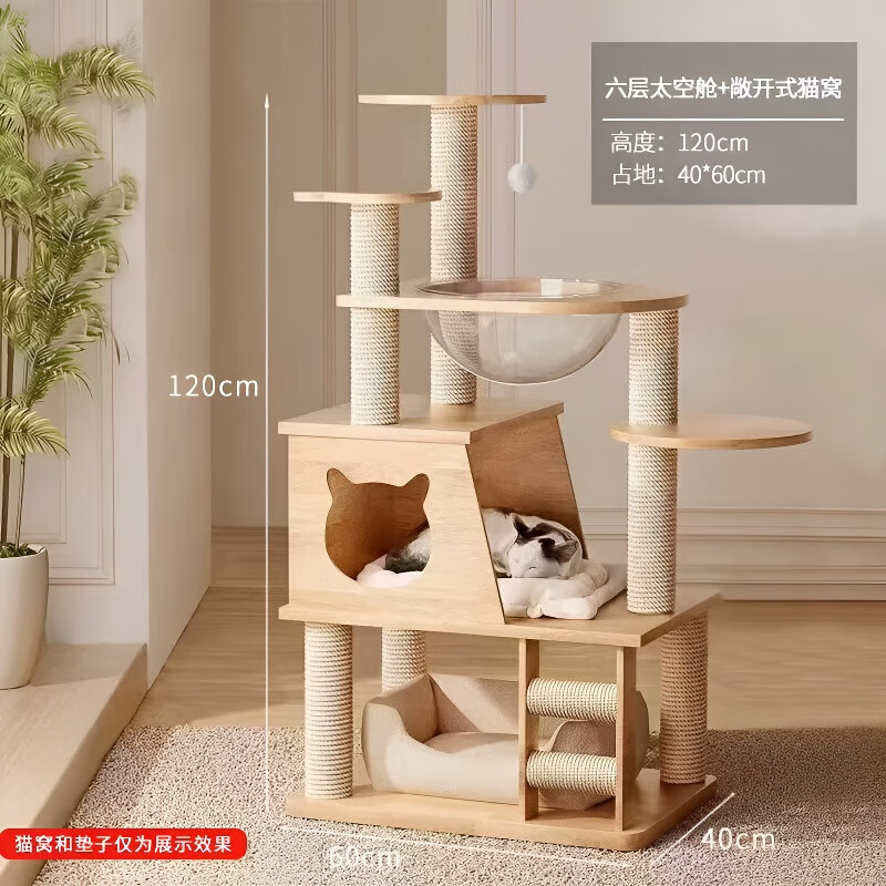 JD Logistics Cat Climbing Frame Cat Nest Cat Tree Integrated Sky Pillar Jump Platform Space Capsule Cat Scratching Board Cat Toy Seven-Layer Sisal Open Cat Nest + Double Cat Cabin