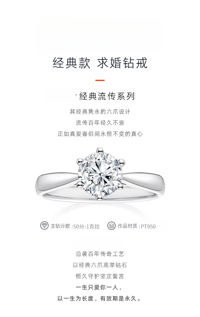 DR Proposal Diamond Ring K Gold/PT950 Platinum Classic Six Claw Classic Wedding Moissanite Ring Valentine's Day Gift 1 Carat Gift Box + Certificate PT950 Live (Size Adjustable)