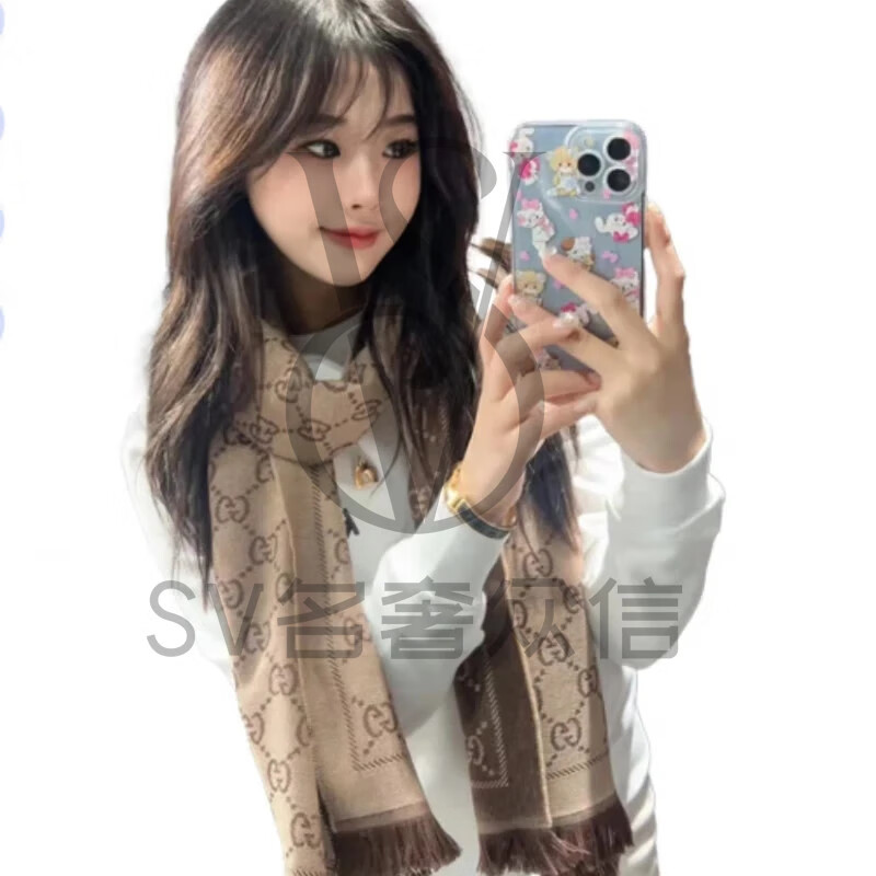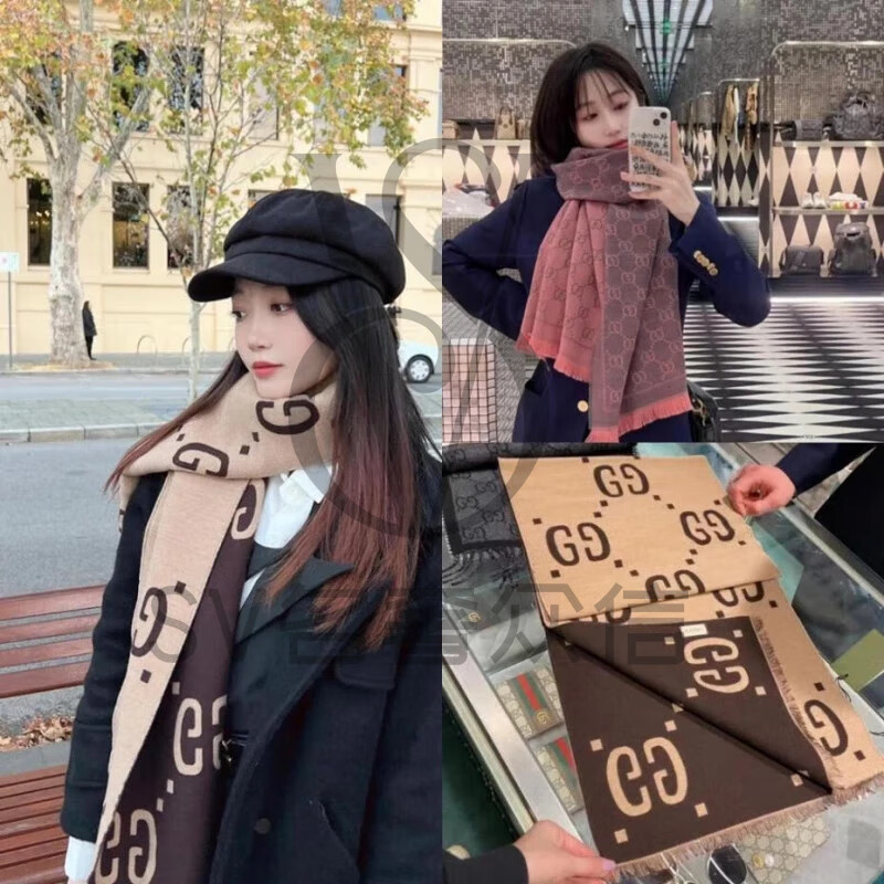 Gucci scarf spring and autumn new double-sided mulberry silk thick shawl silk scarf gift girlfriend wife scarf Gucci holiday pink