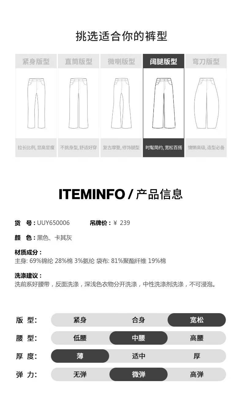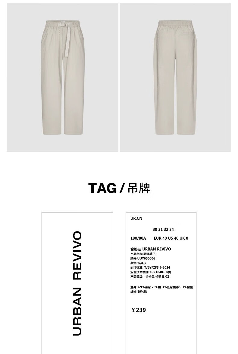 UR2026 Spring New Men's Fashion Casual Elastic Waist Belt Wide Leg Pants UUY650006 Khaki Gray 30
