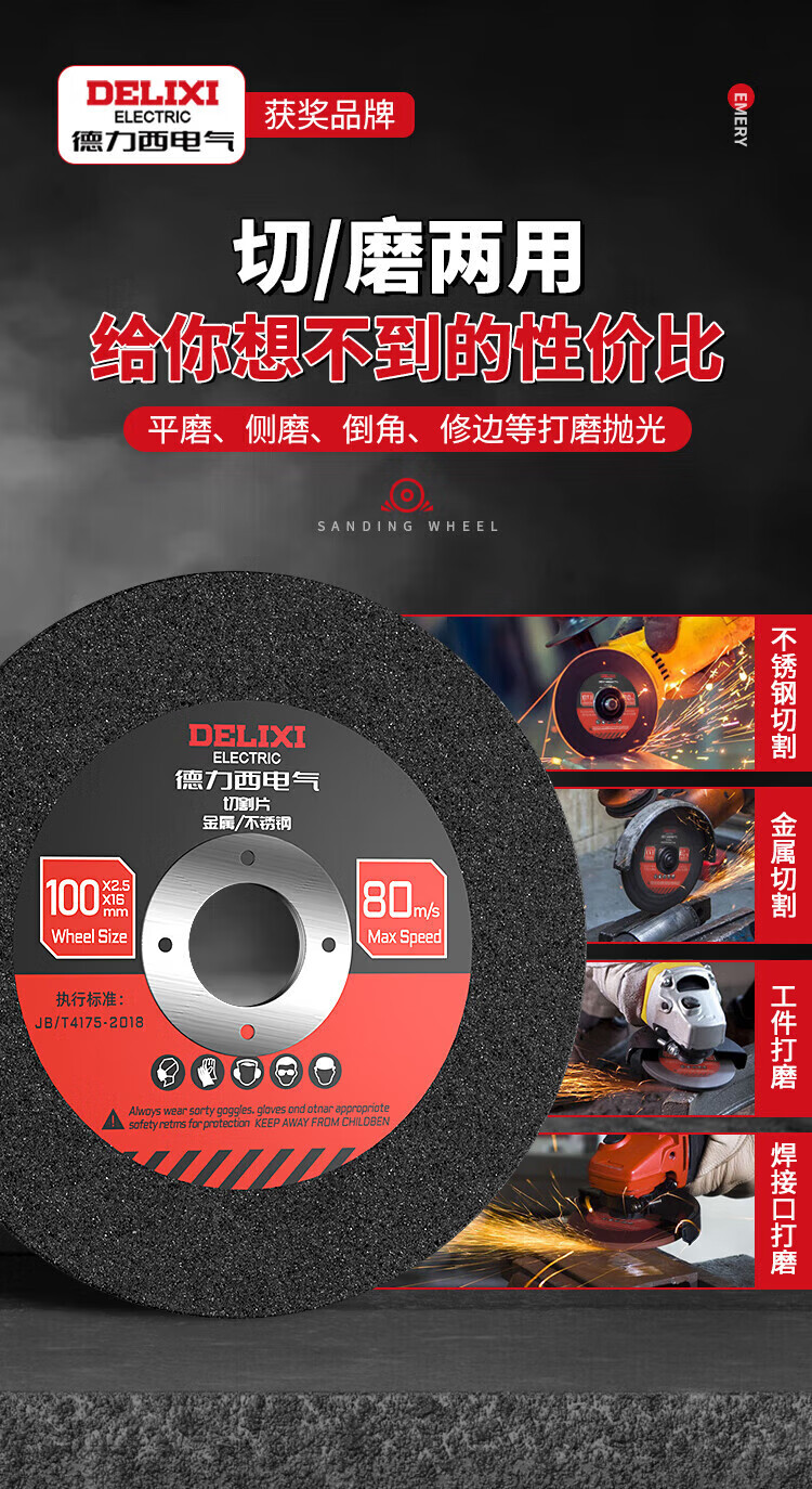 Delixi Electric cutting disc 100 type angle grinder cutting and grinding dual-purpose sharp polishing disc metal grinding stainless steel grinding wheel blade saw blade 100 type cutting and grinding dual-purpose cutting disc 12 pieces