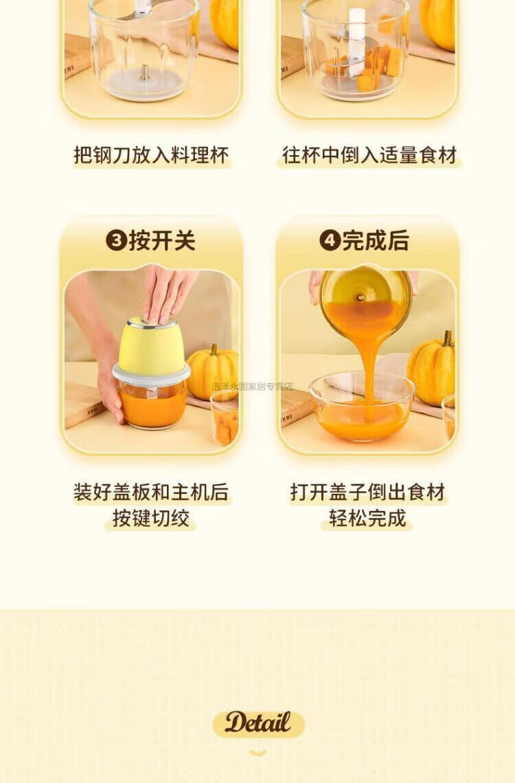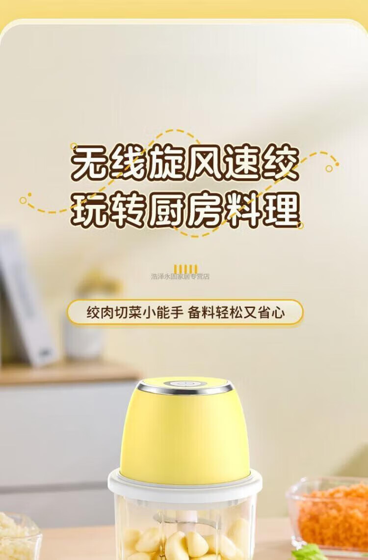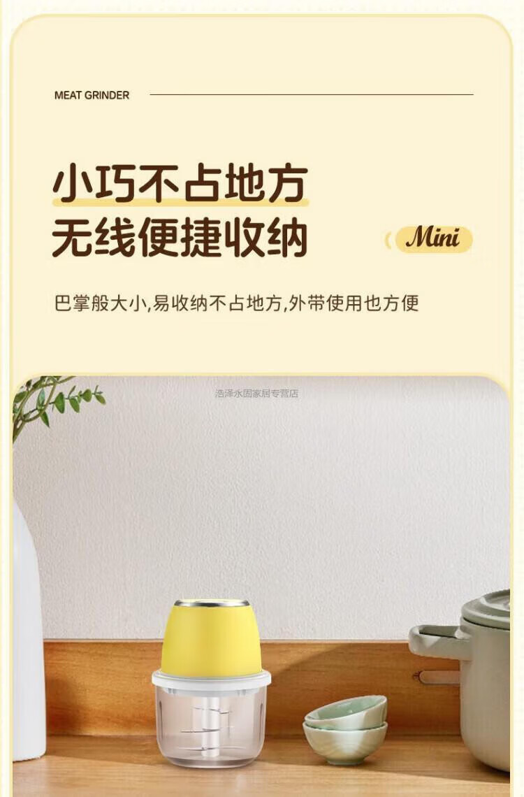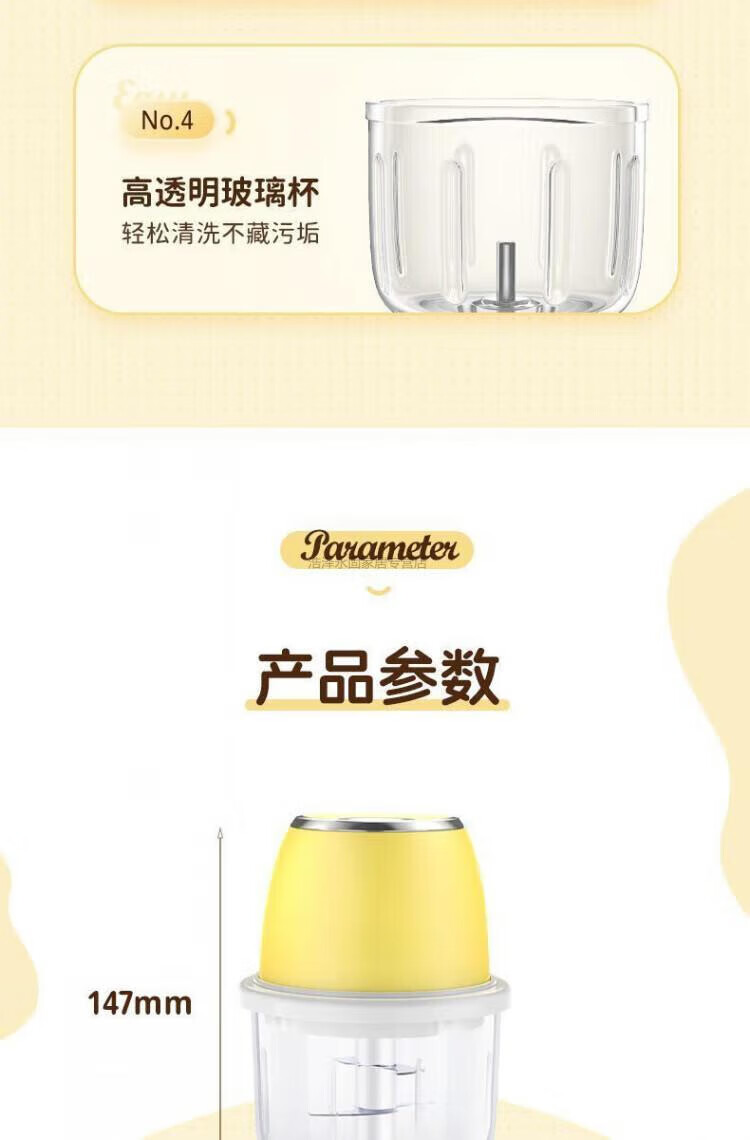 UOSO German quality electric garlic pounder garlic mashed artifact garlic stirrer garlic crusher garlic beater six-leaf knife 6-leaf knife head 350ML glass bowl-yellow/blue color random