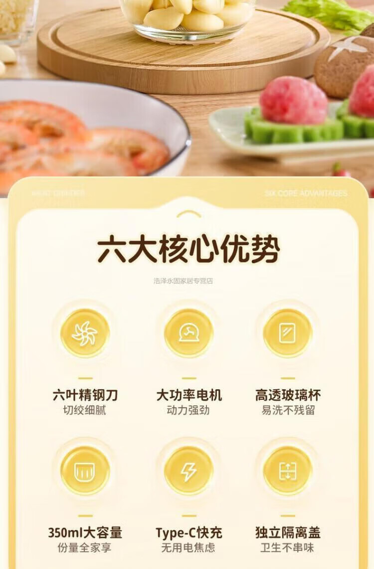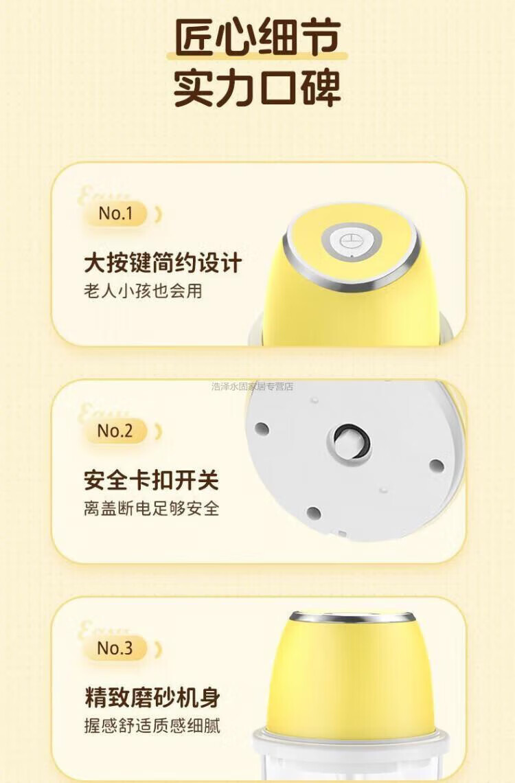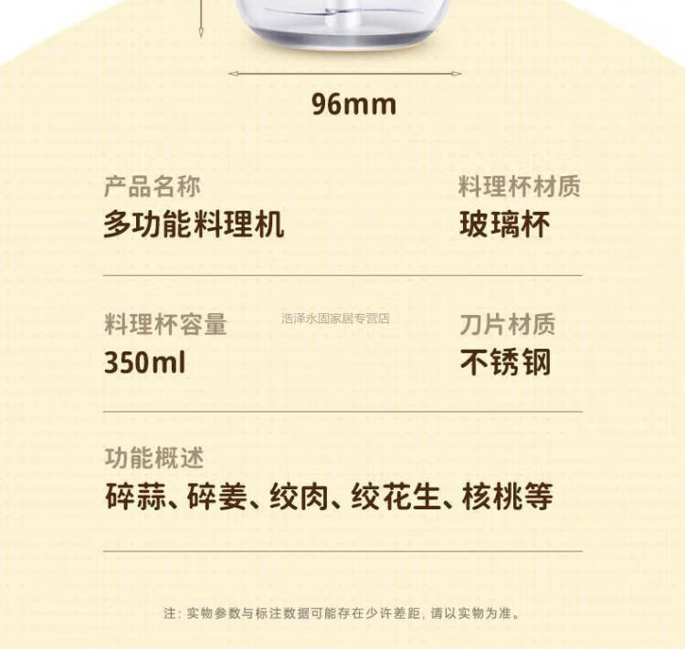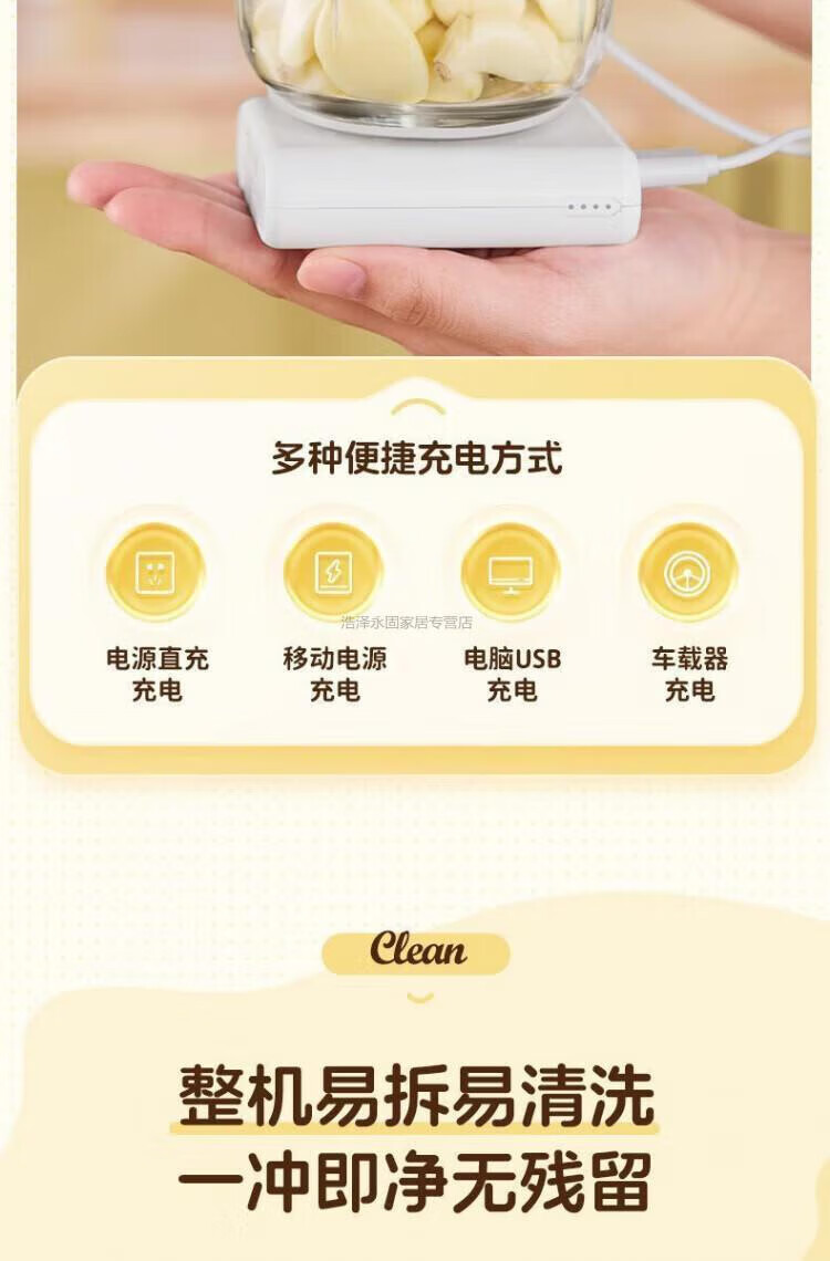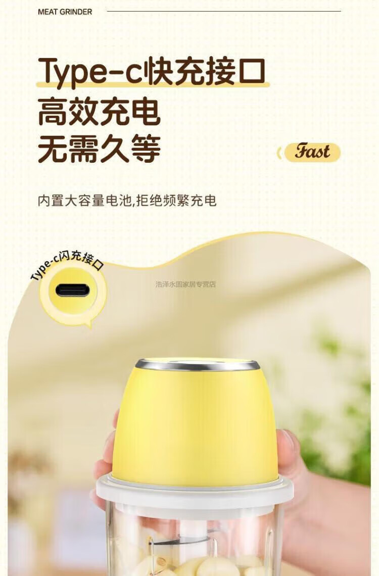 UOSO German quality electric garlic pounder garlic mashed artifact garlic stirrer garlic crusher garlic beater six-leaf knife 6-leaf knife head 350ML glass bowl-yellow/blue color random