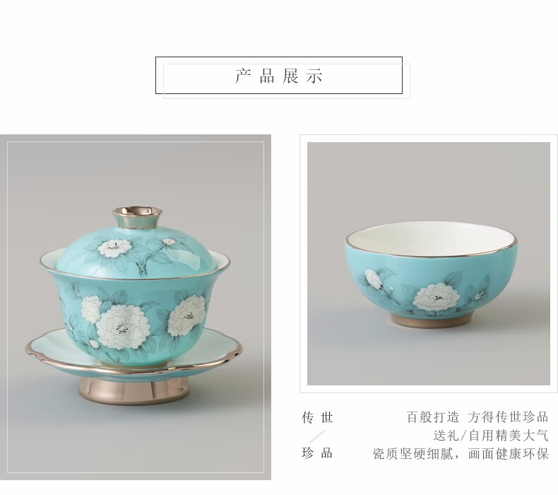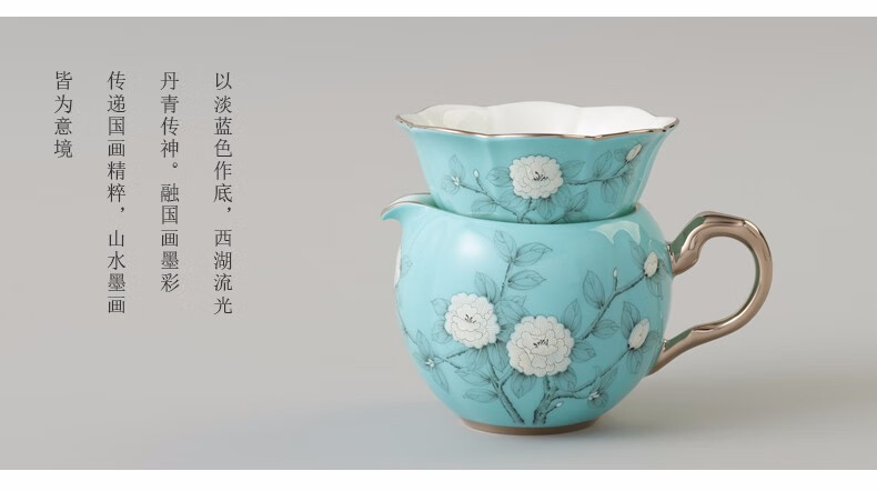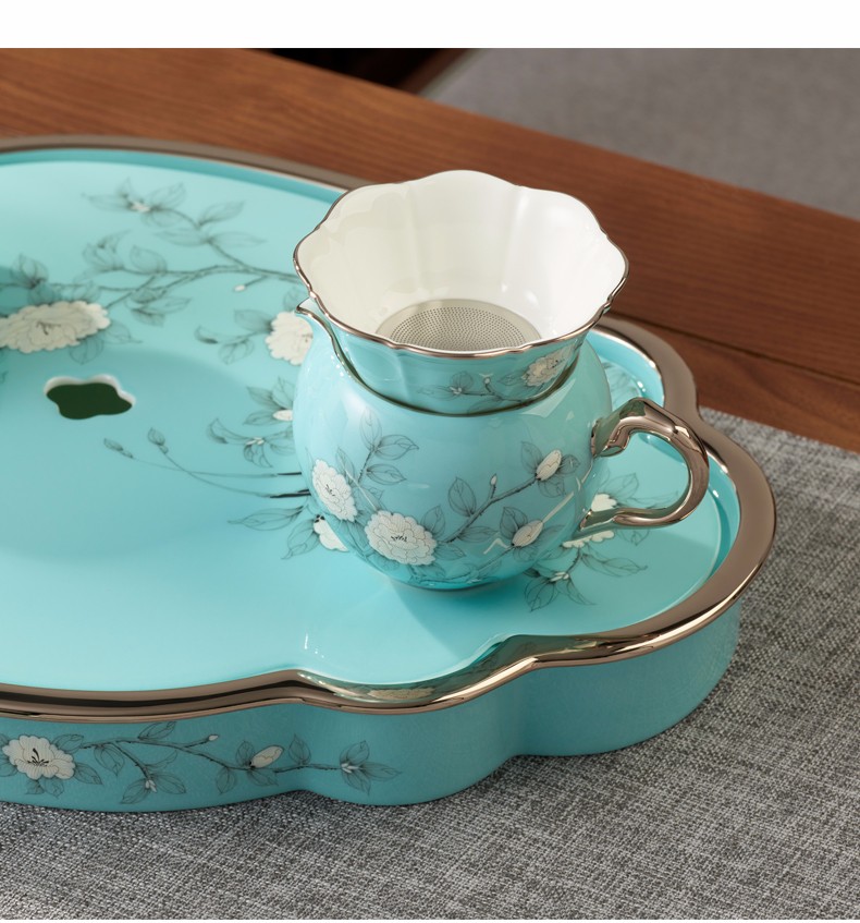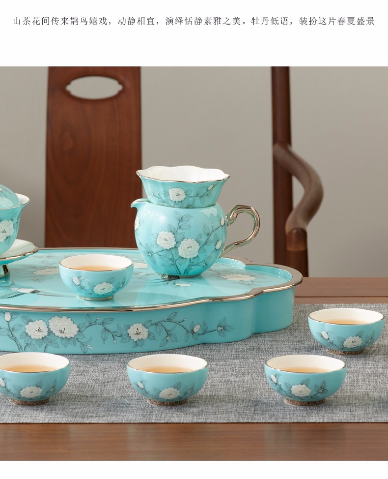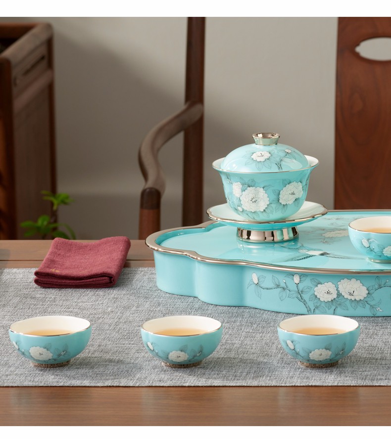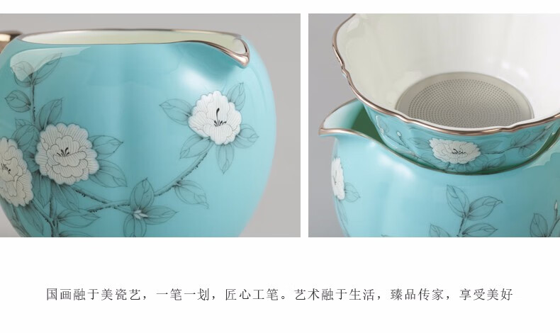 Lady Yongfengyuan (auratic) porcelain hand-painted blue 12-head/15-head ceramic teapot, lid, bowl, tea set, hand-painted high-end gift box packaging, 12 heads, 4 persons