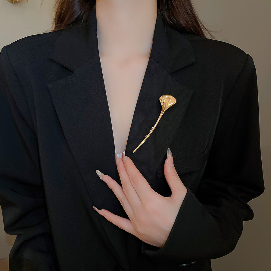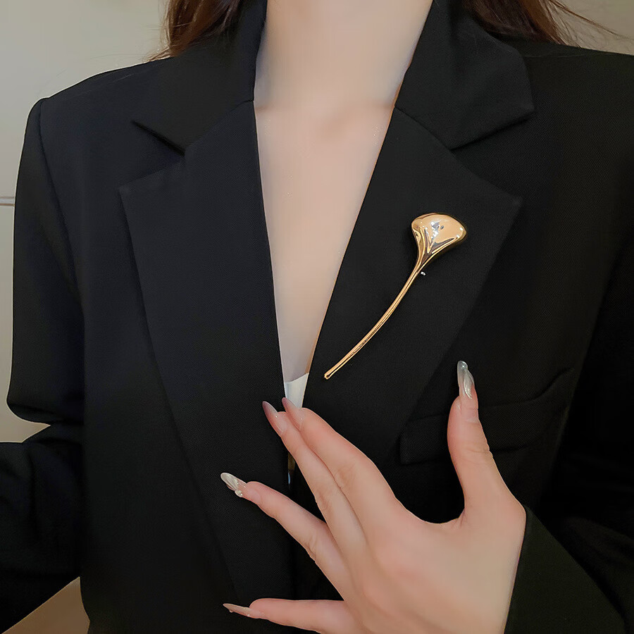 European and American ins metal leaf brooch, new personalized high-end suit pin, fashionable, exquisite and versatile chest accessories, brooch - gold