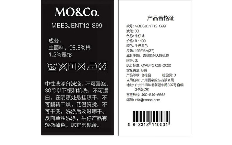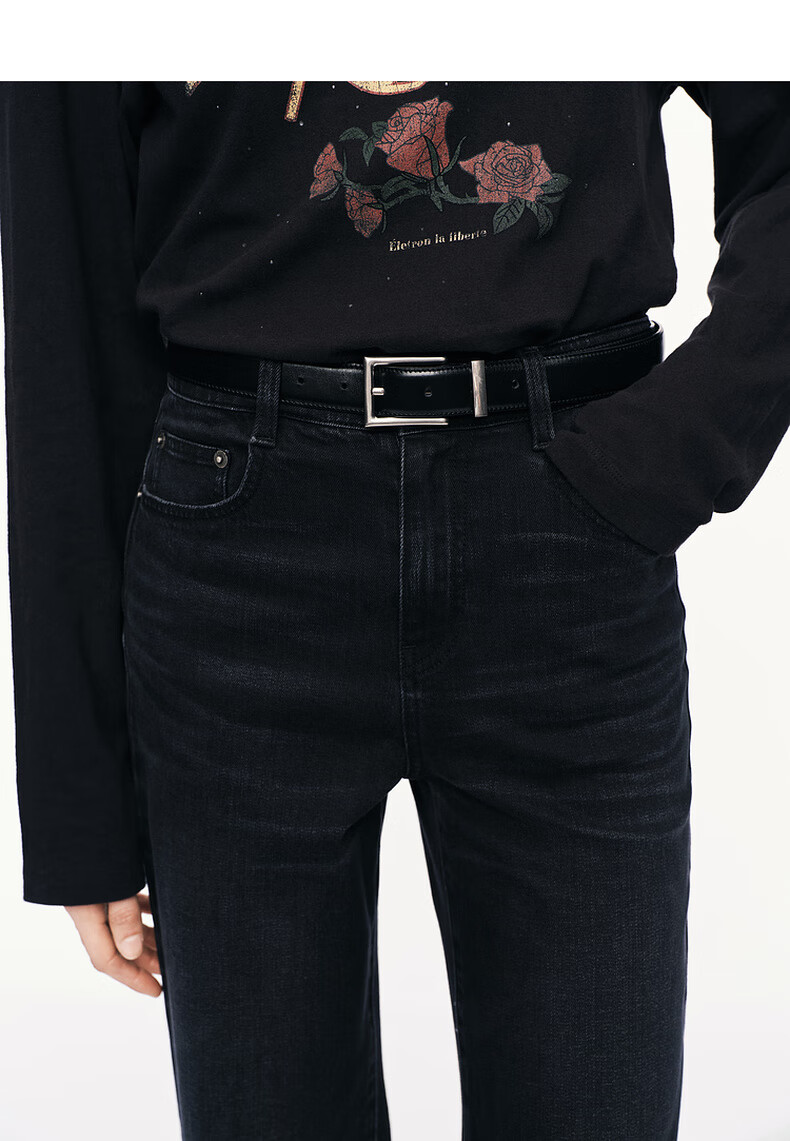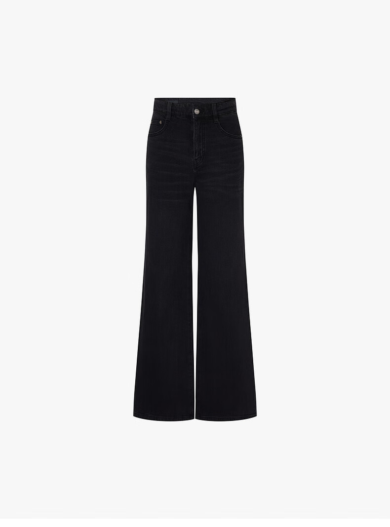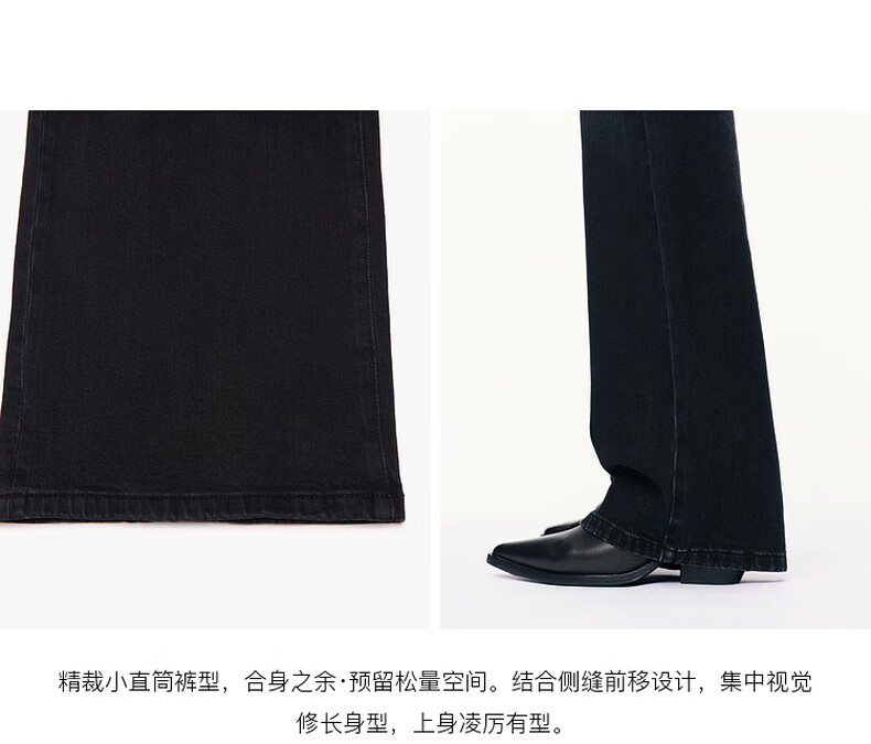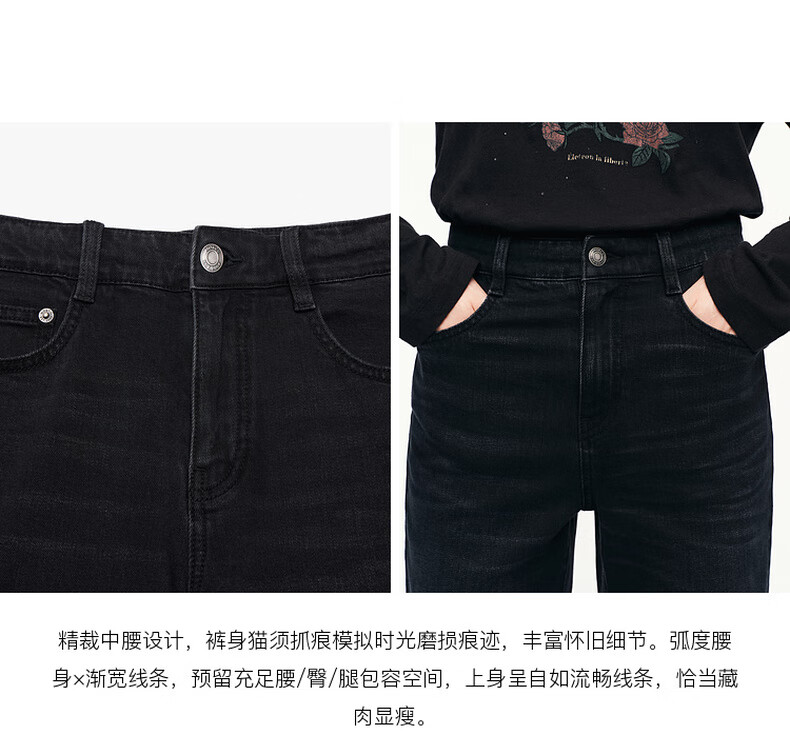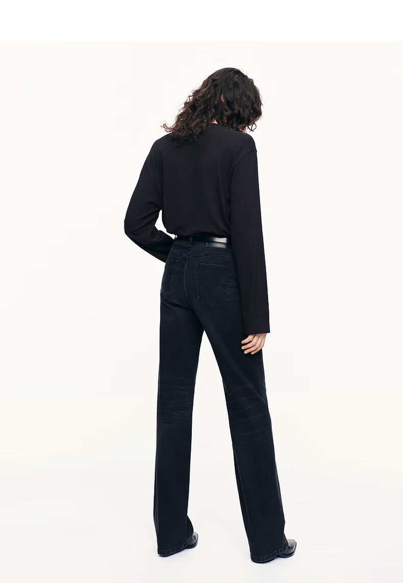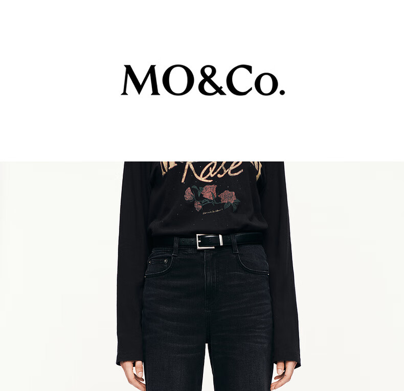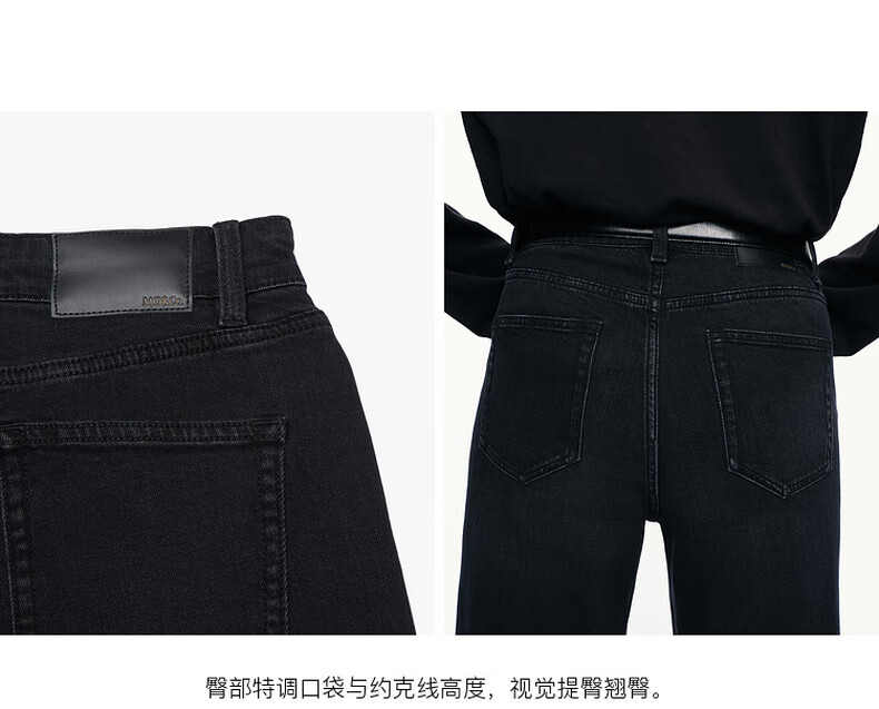 MO&Co. Jeans 2025 Autumn New Product Cotton Stretch Lycra Washed Straight Black Mid-Waist MBE3JENT12 Denim Black L /L