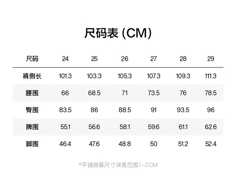 Outseam (cm) 99 cm 101.5 cm 104 cm 106.5 cm 109 cm