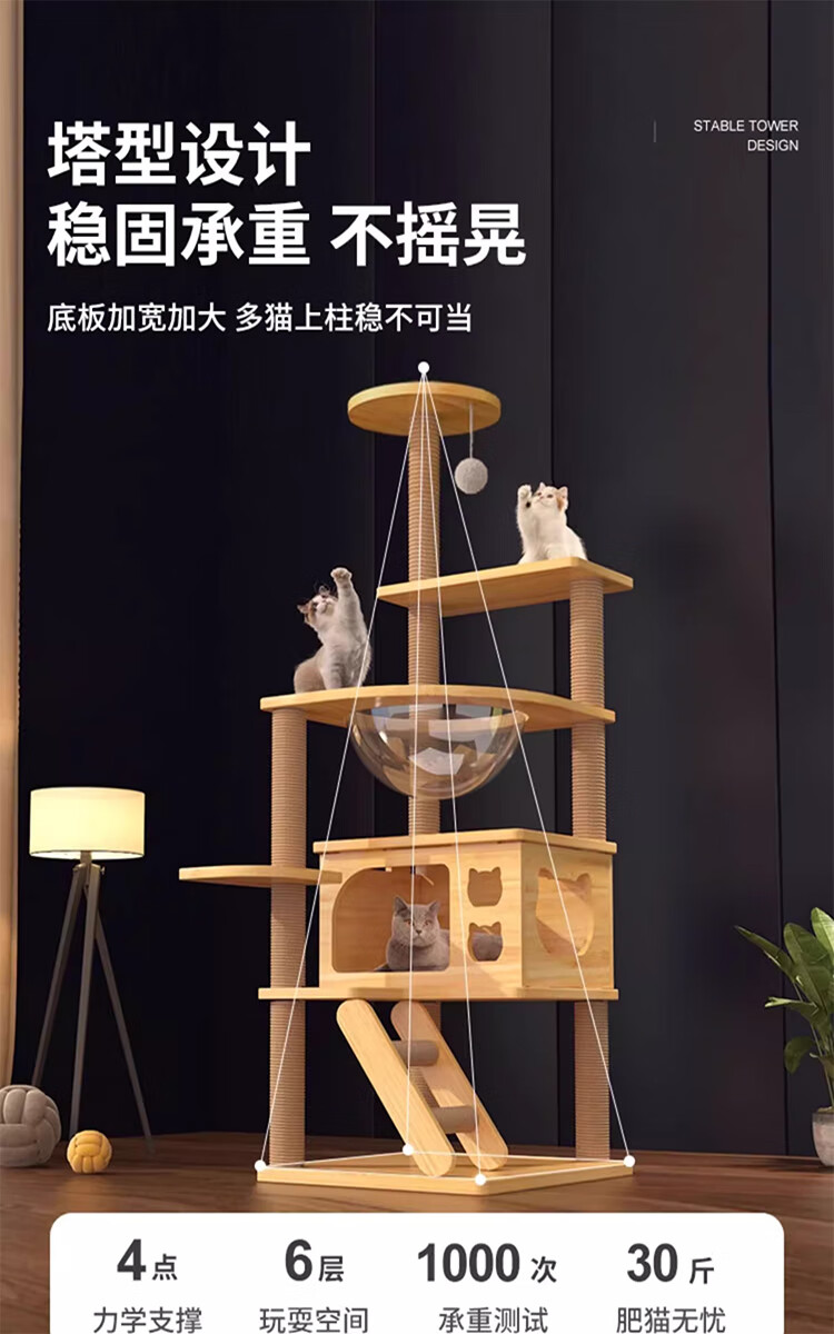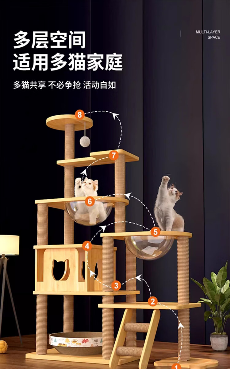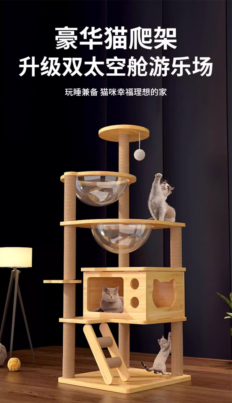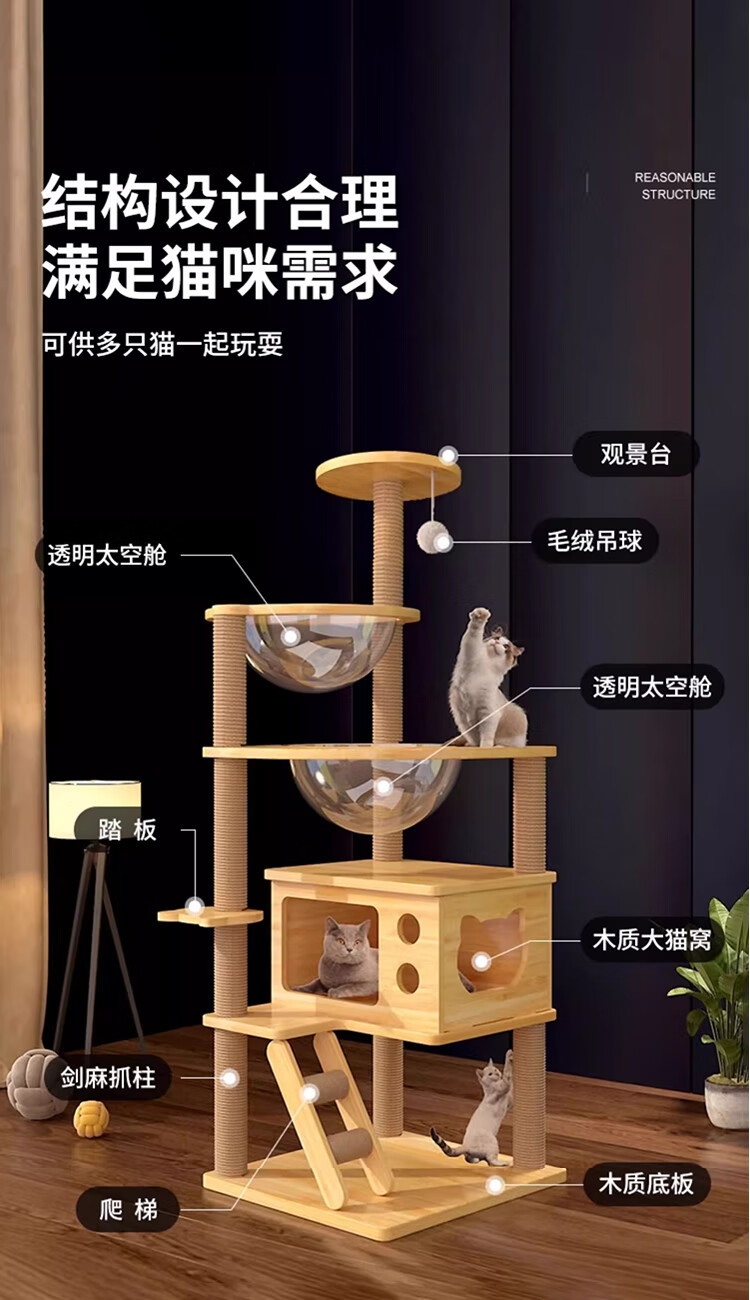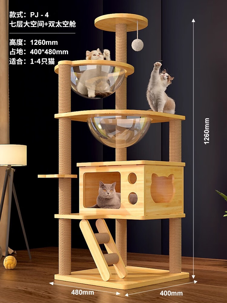 Jingdong Express Cat climbing frame integrated sky column cat tree space capsule wear-resistant jumping platform cat scratching board cat toy 6-layer sisal column kitten house + space capsule