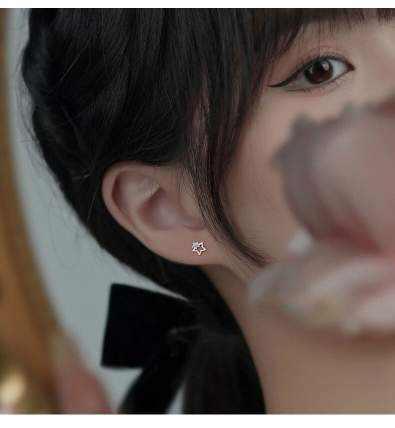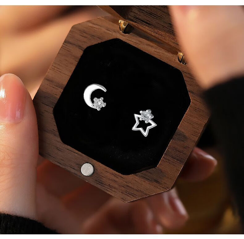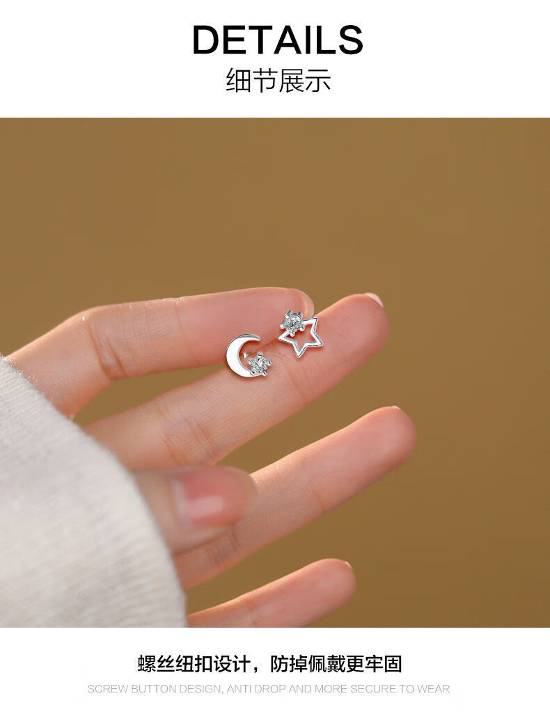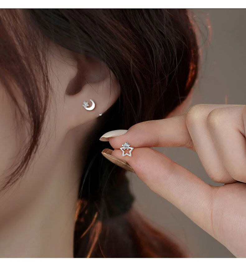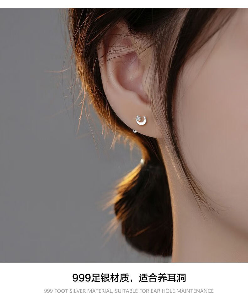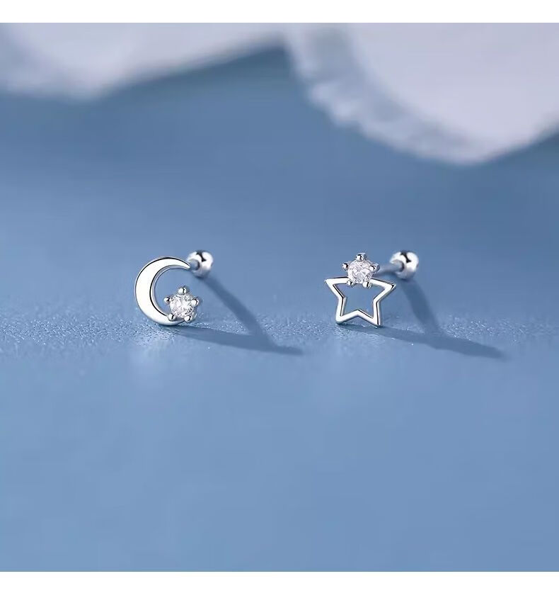 Fan Shengyu earrings for women, 999 sterling silver ear piercing earrings, no need to take them off when sleeping, asymmetric star and moon ear bone stud earrings for men, s999 pure silver star and moon spiral earrings, a pair