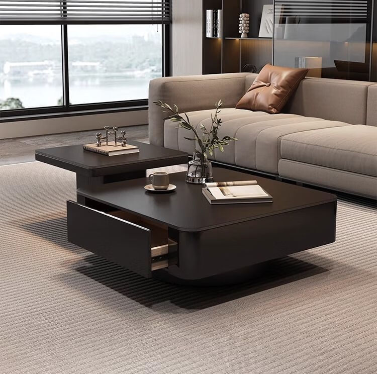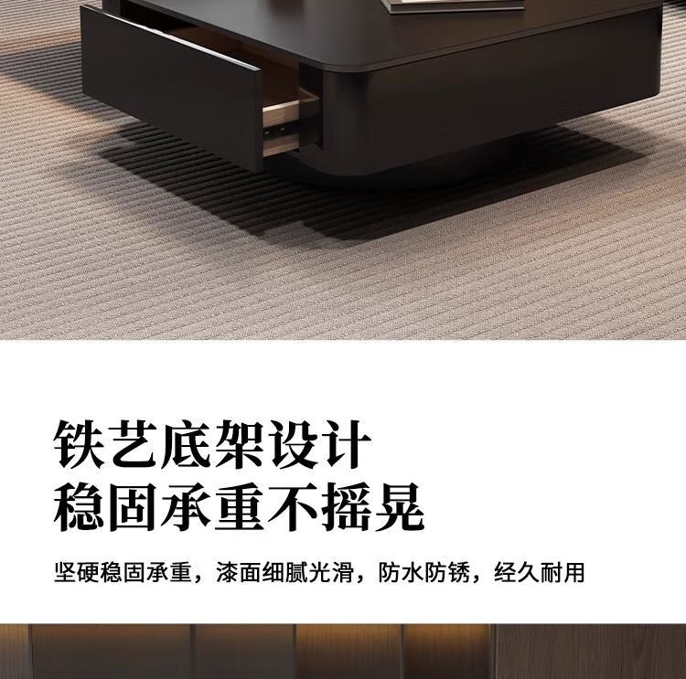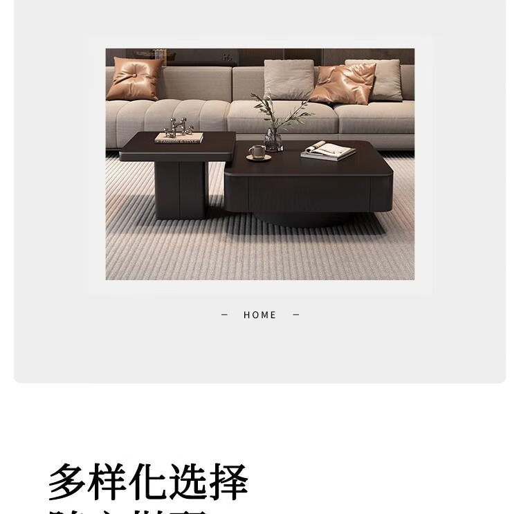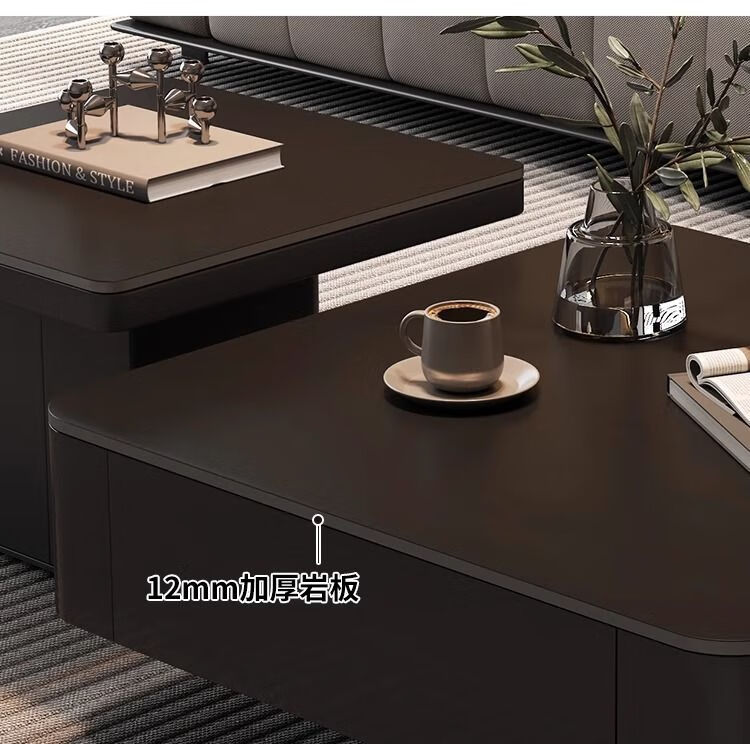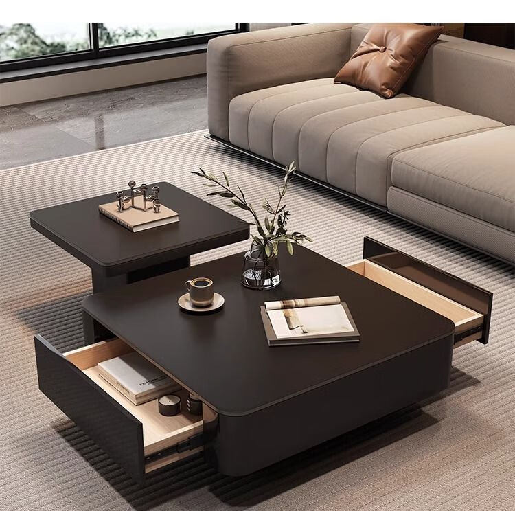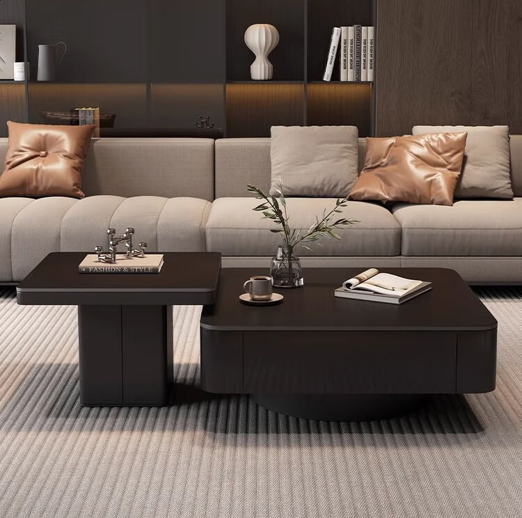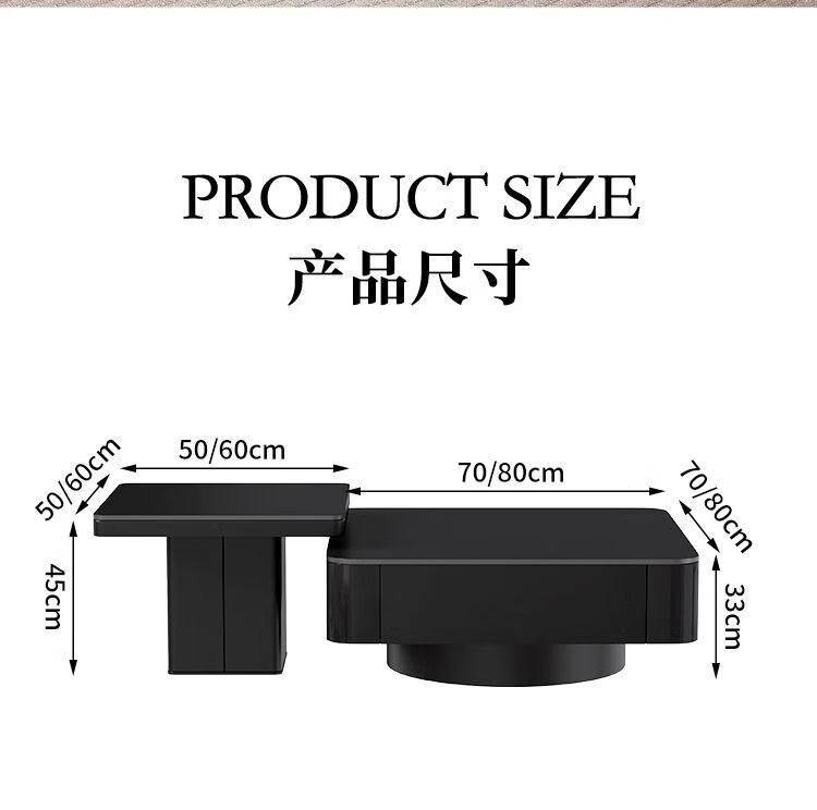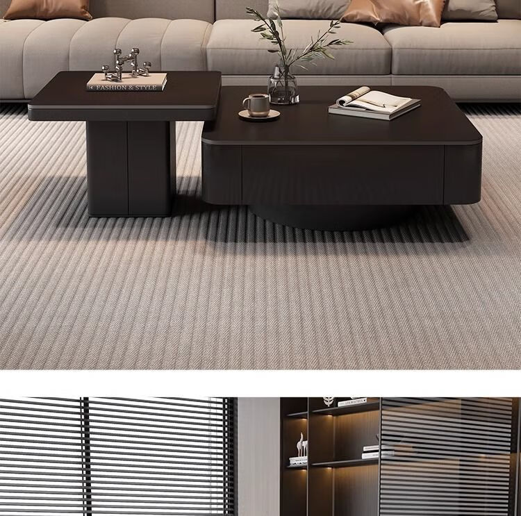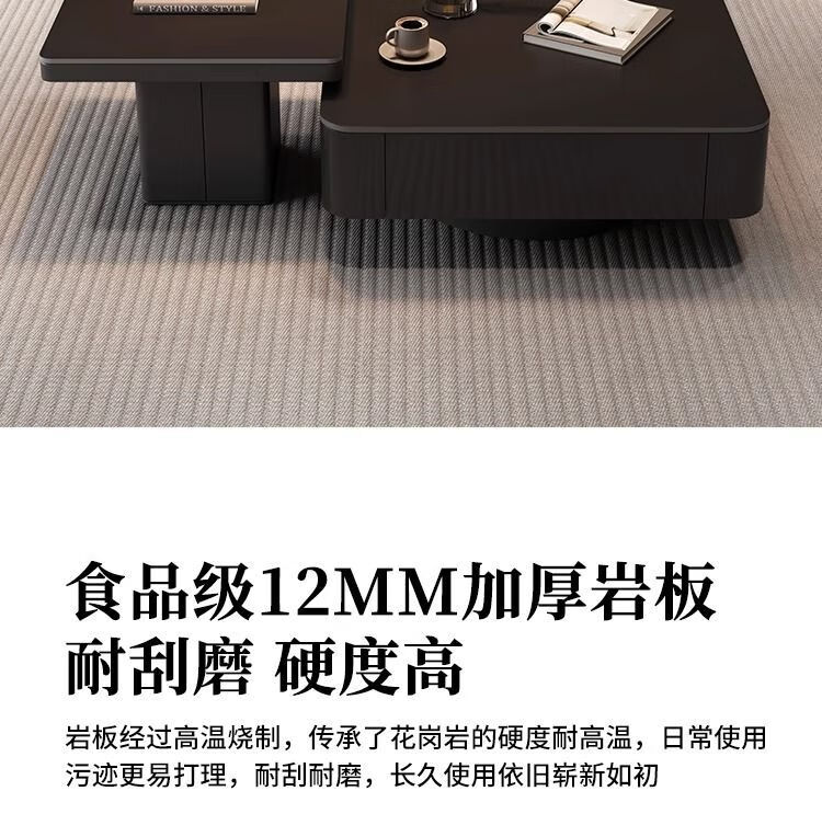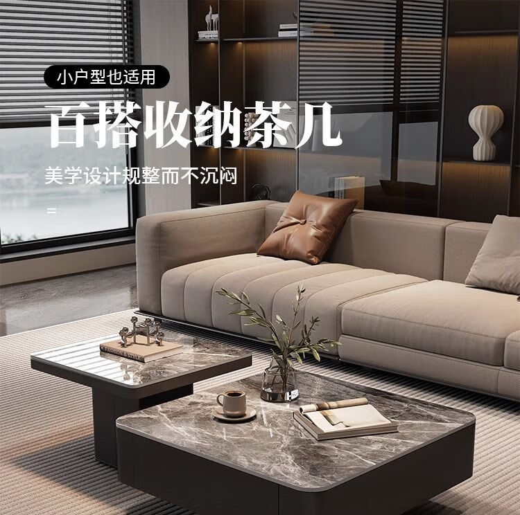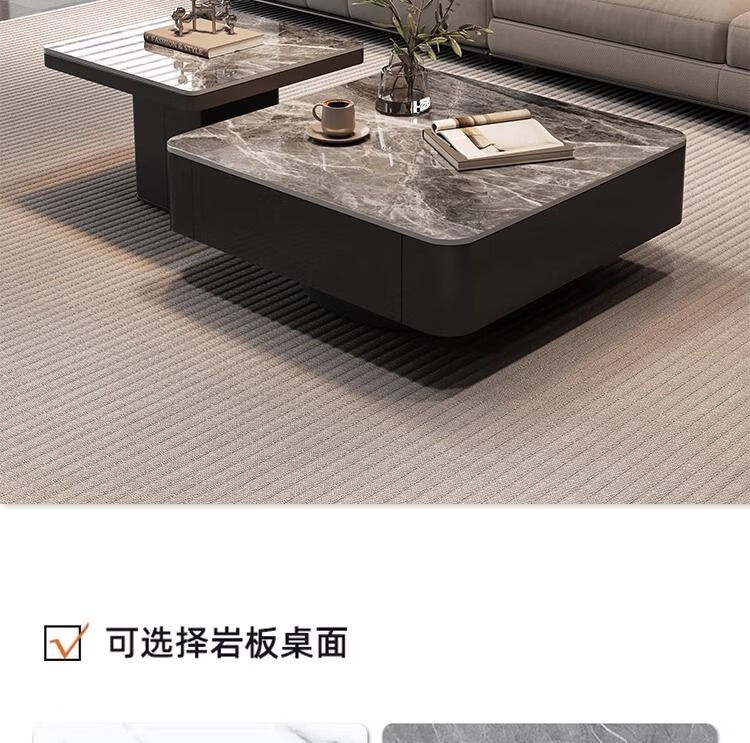 Zhixing Italian gray slate coffee table light luxury high-end style small apartment living room home Italian minimalist 2025 new square coffee table square + T new Italian gray slate black frame black cabinet 80 slate + side table 60