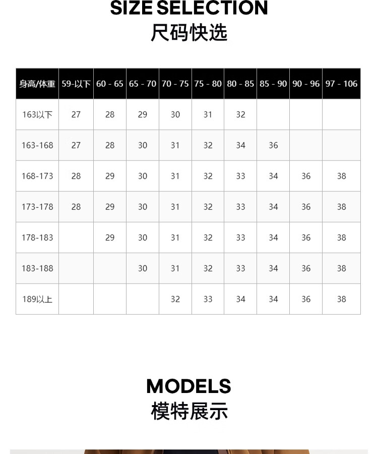 China (cm) 160-165/84-86 165-170 / 88-90 167-172 / 92-96 168-173 / 98-102 170-176 / 106-110