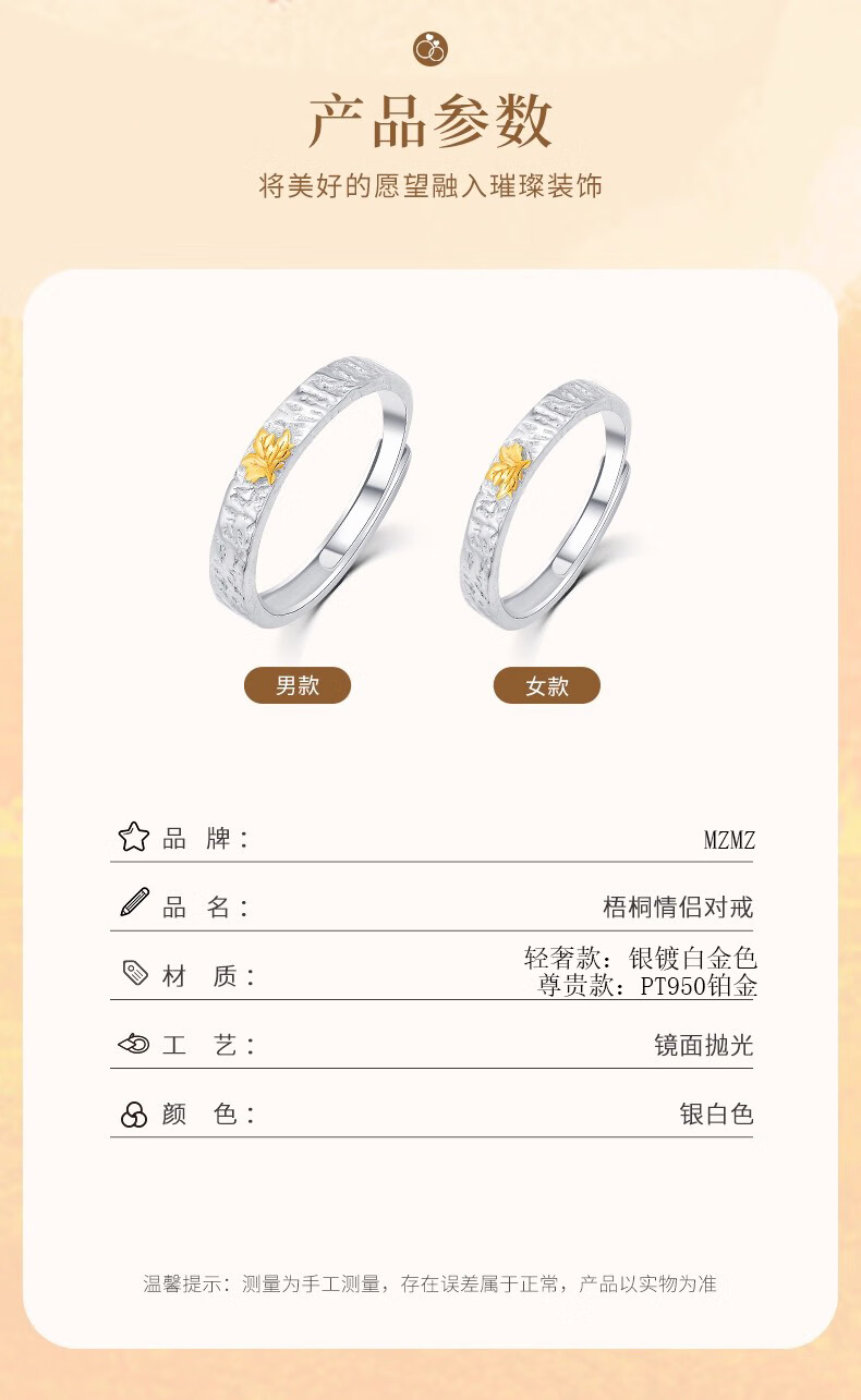 MZMZ Wutong Platinum Couple Ring PT950 Platinum Pairing Rings Wedding, Valentine's Day, Birthday Gift for Girlfriend, Wife, Light Luxury Style - Live Pairing Rings Local Warehouse/Next Day Delivery