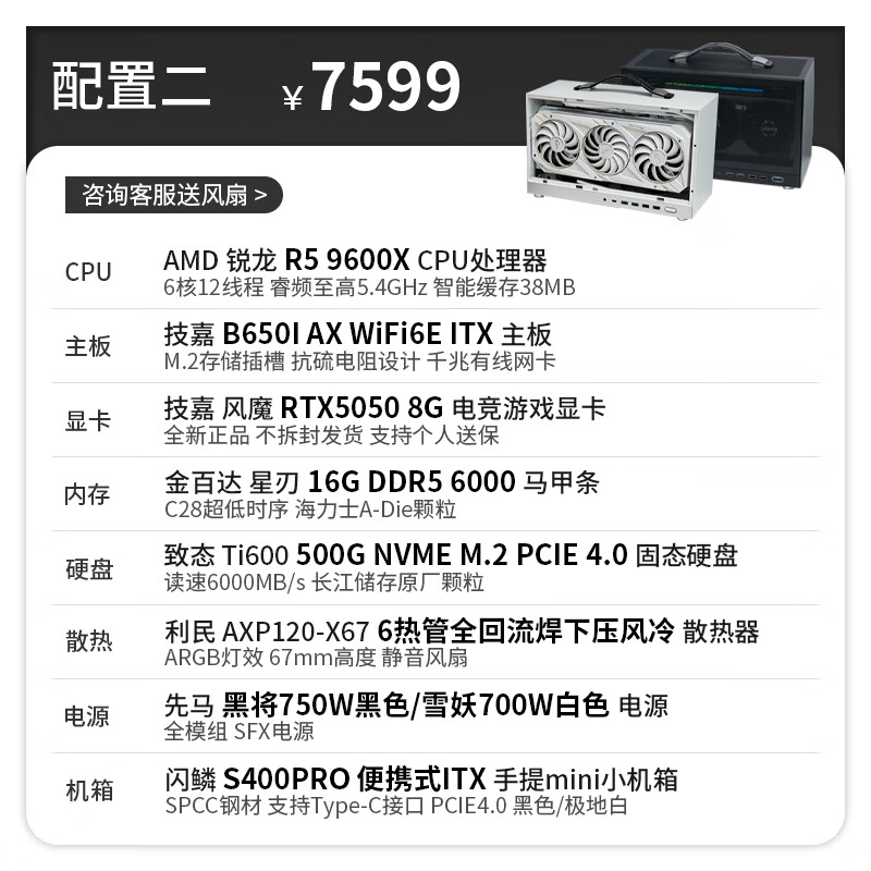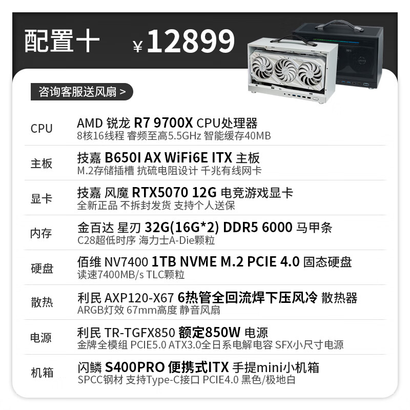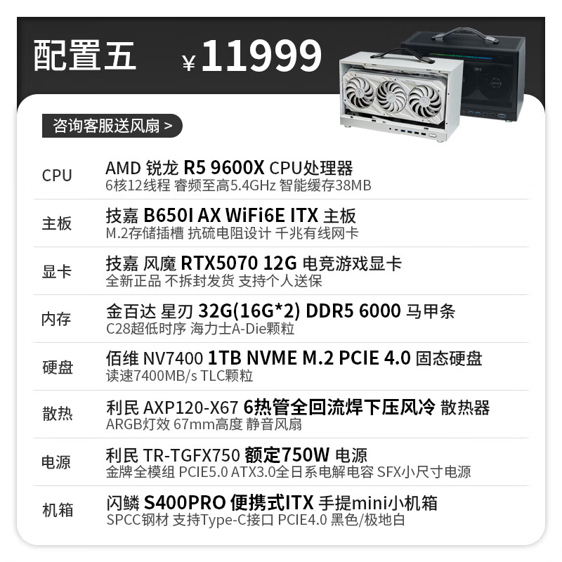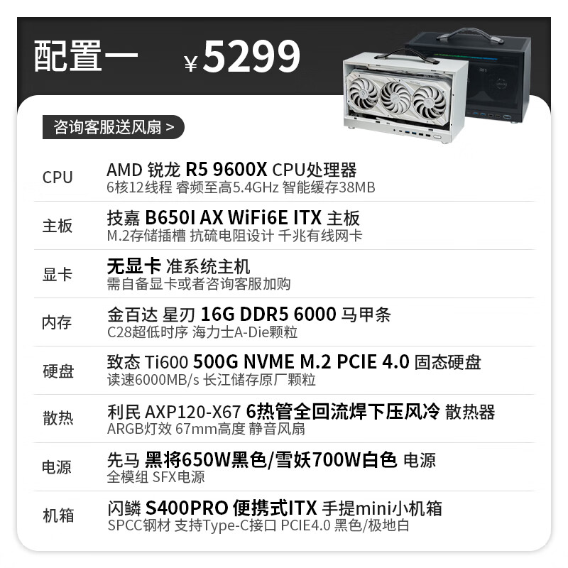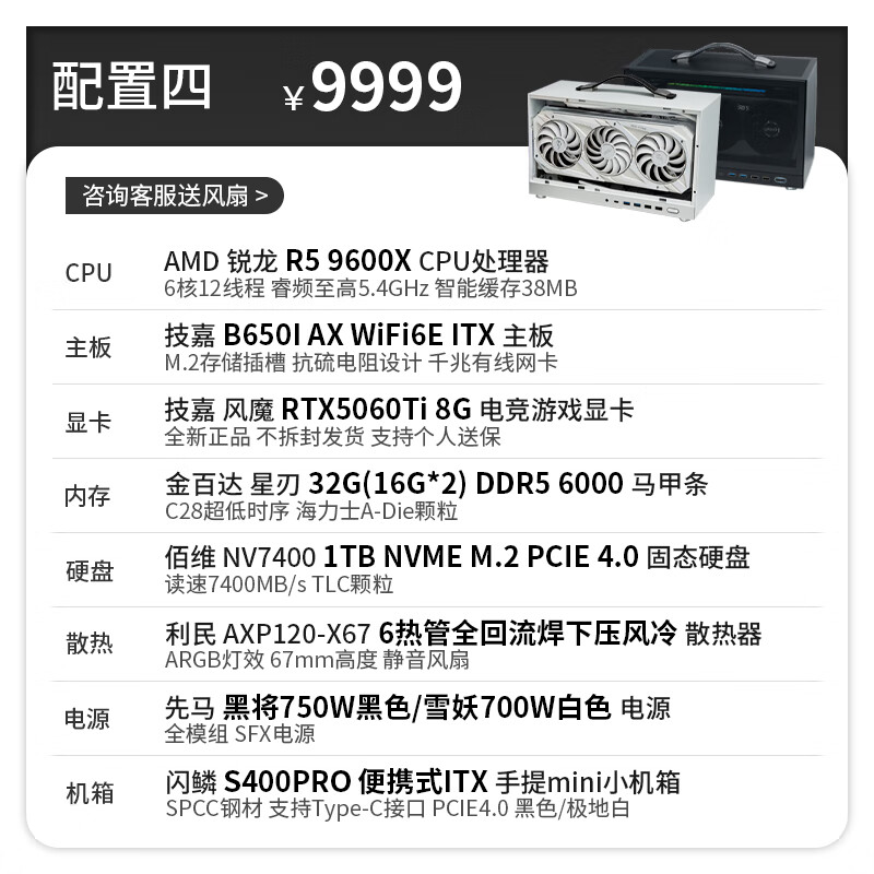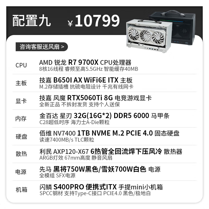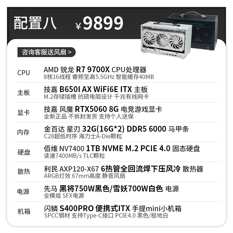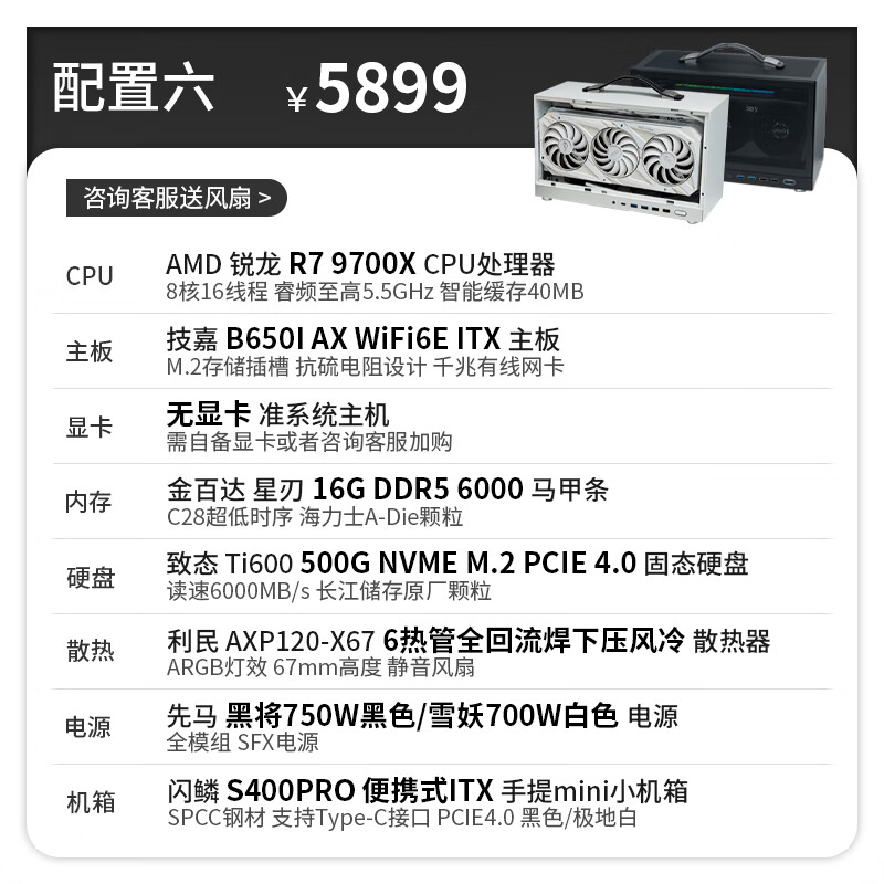 Gigabyte 24-issue interest-free AMD Ryzen 9600X/9700X graphics card RTX5050/5060Ti/5070 S400PRO portable DIY host 053 Configuration 6 Ryzen 7 9700X丨No graphics card