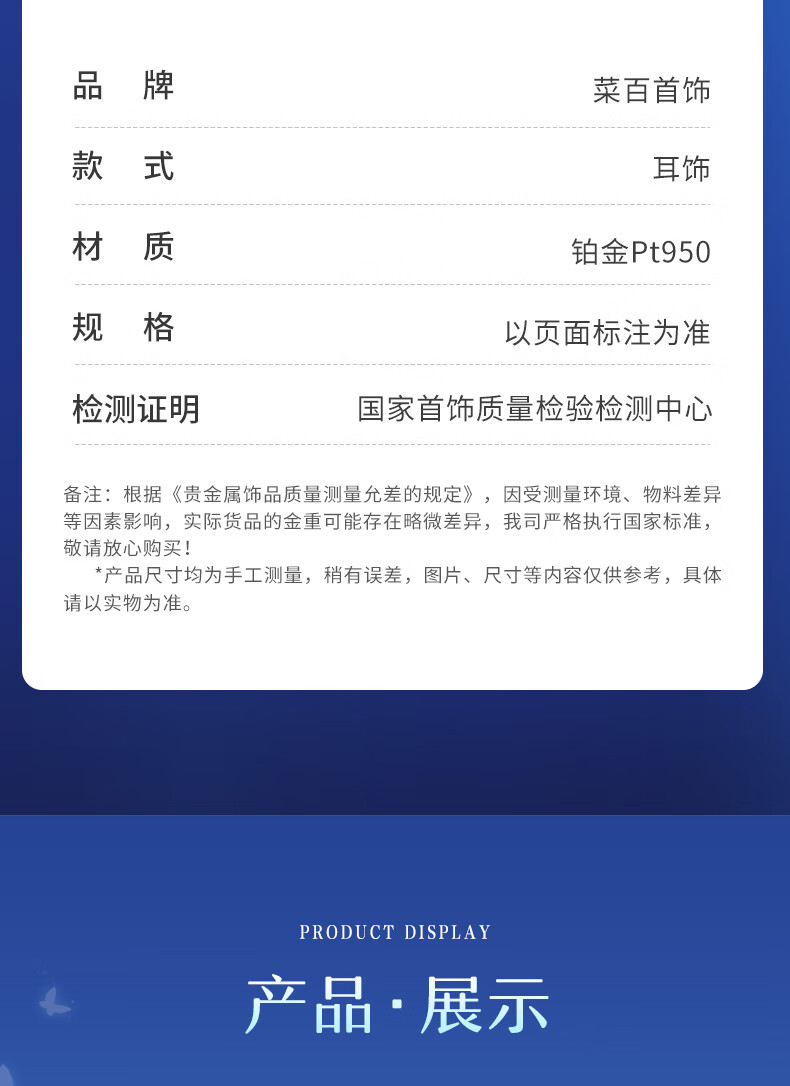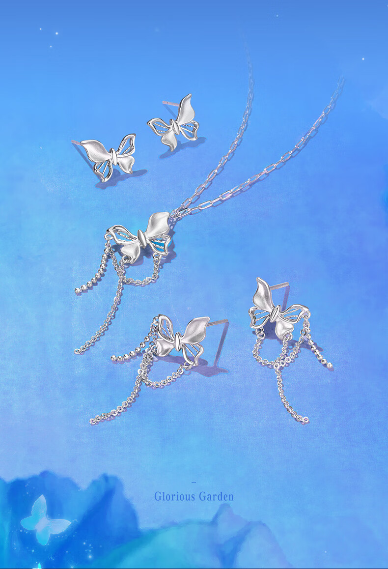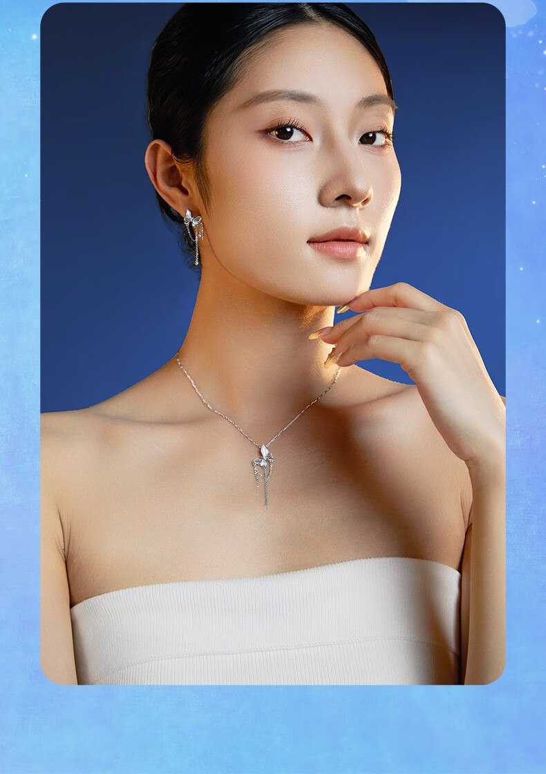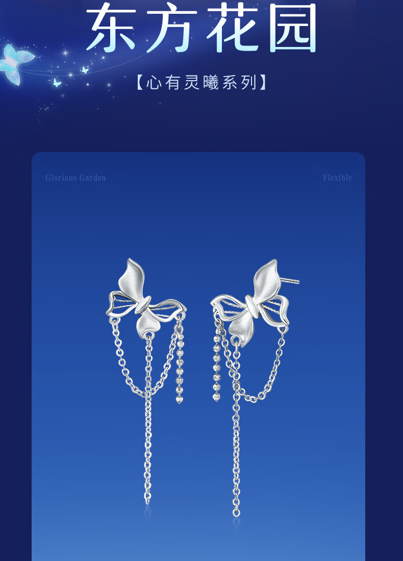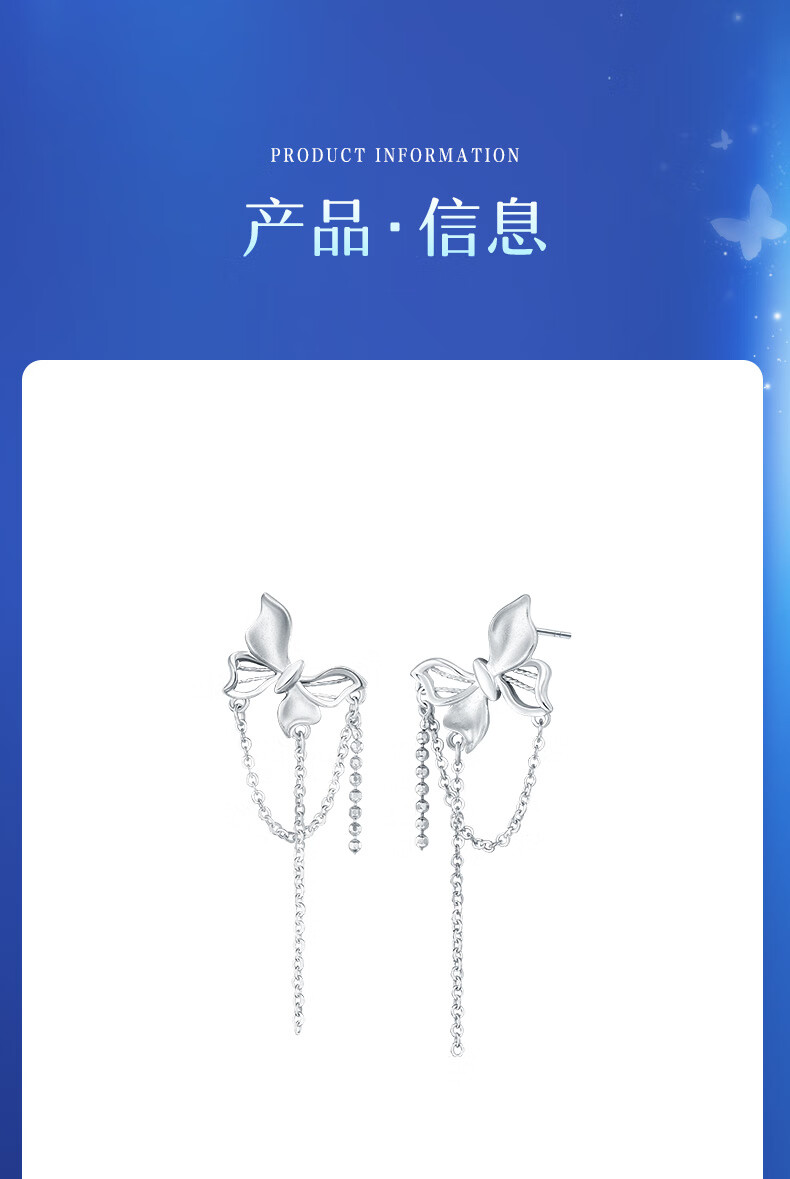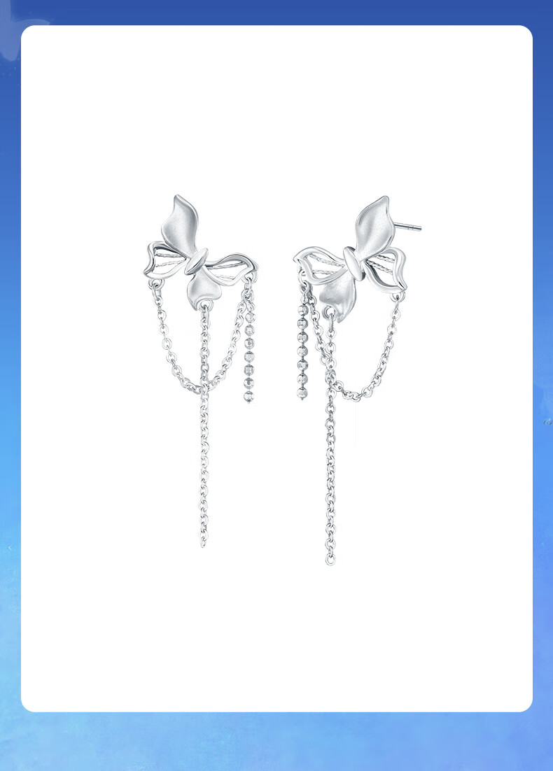 Caibai Jewelry Platinum Earrings Pt950 Platinum Oriental Garden Heart with Lingxi Series Butterfly Tassel Earrings Price BJ Platinum Earrings About 3.70g