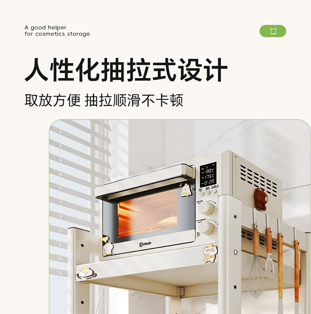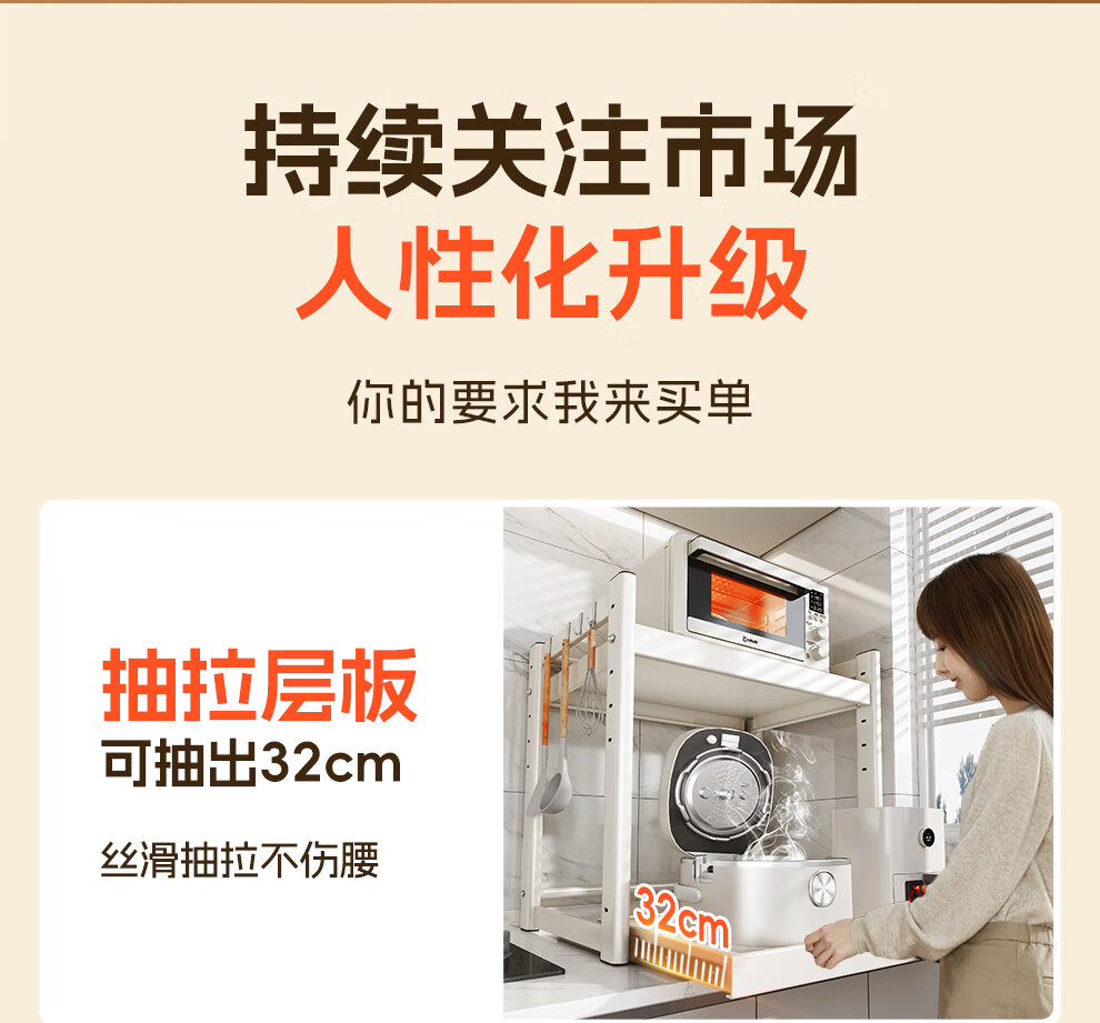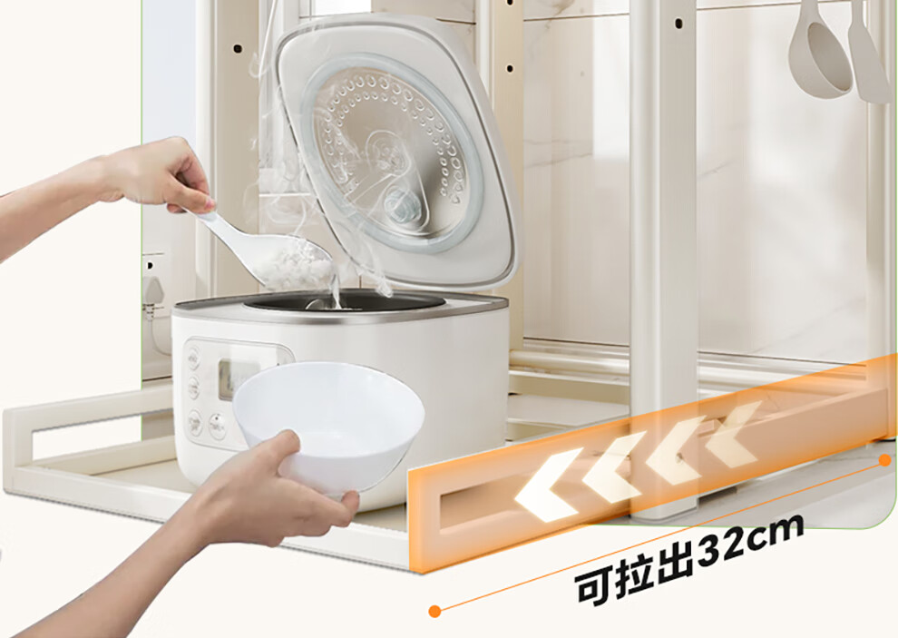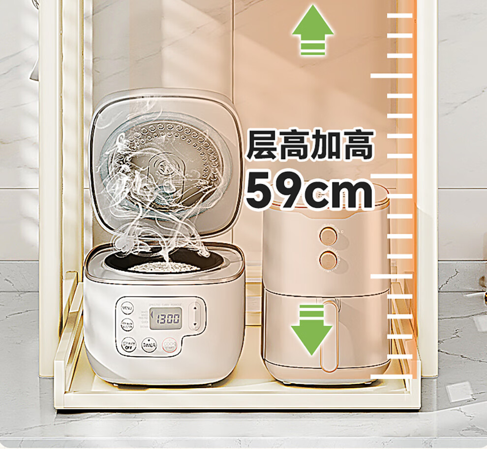 Shuaishi (shuaishi) Kitchen Microwave Rack Rice Cooker Shelf Countertop Oven Bracket Storage Pull-out Storage Rack Utensils Guide Rail Telescopic Type Telescopic Adjustable Milk White