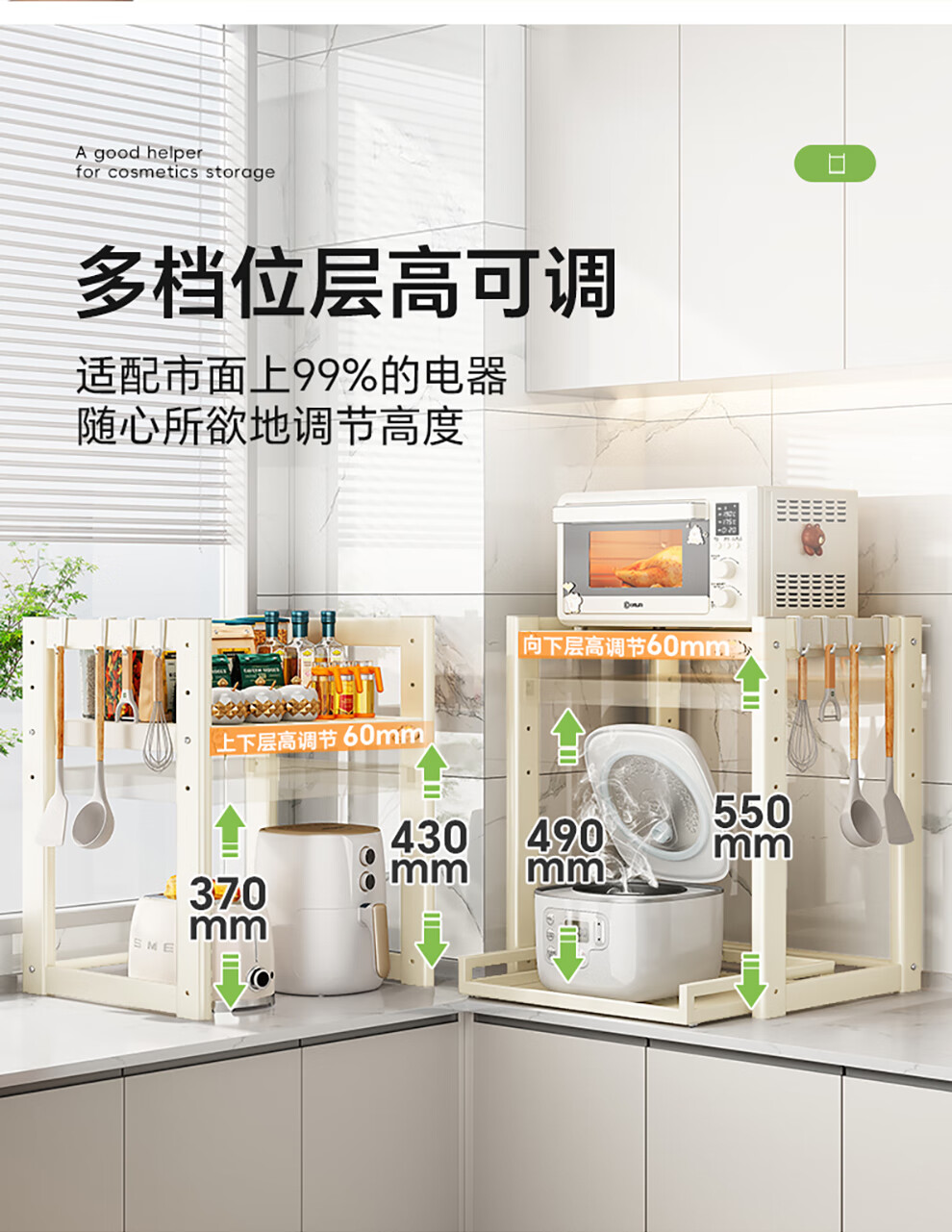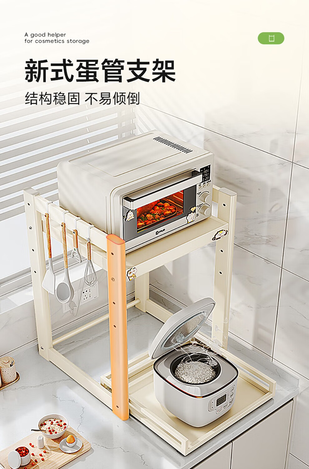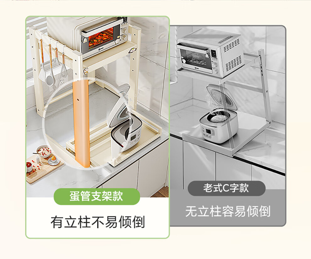 Shuaishi (shuaishi) Kitchen Microwave Rack Rice Cooker Shelf Countertop Oven Bracket Storage Pull-out Storage Rack Utensils Guide Rail Telescopic Type Telescopic Adjustable Milk White