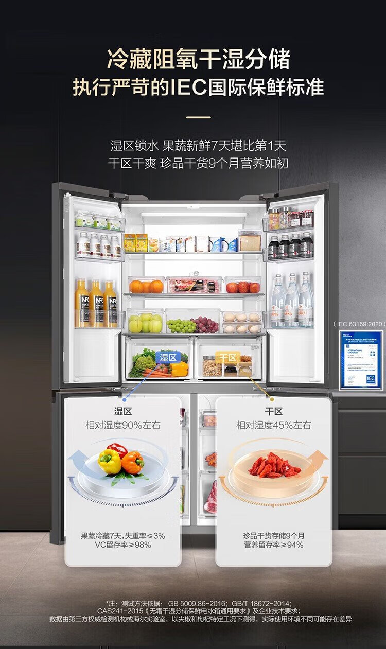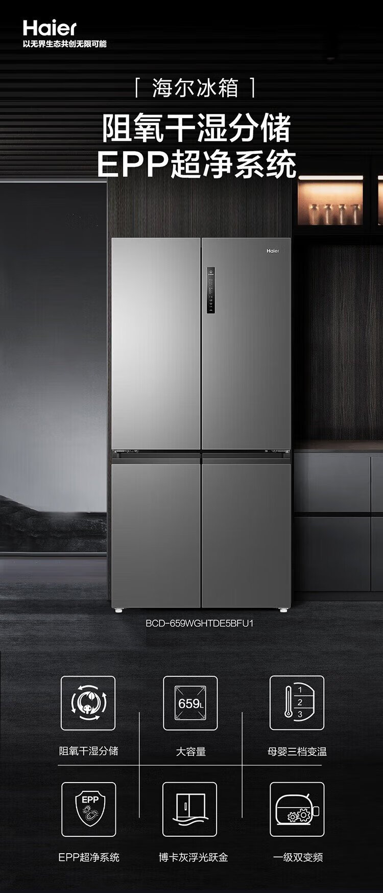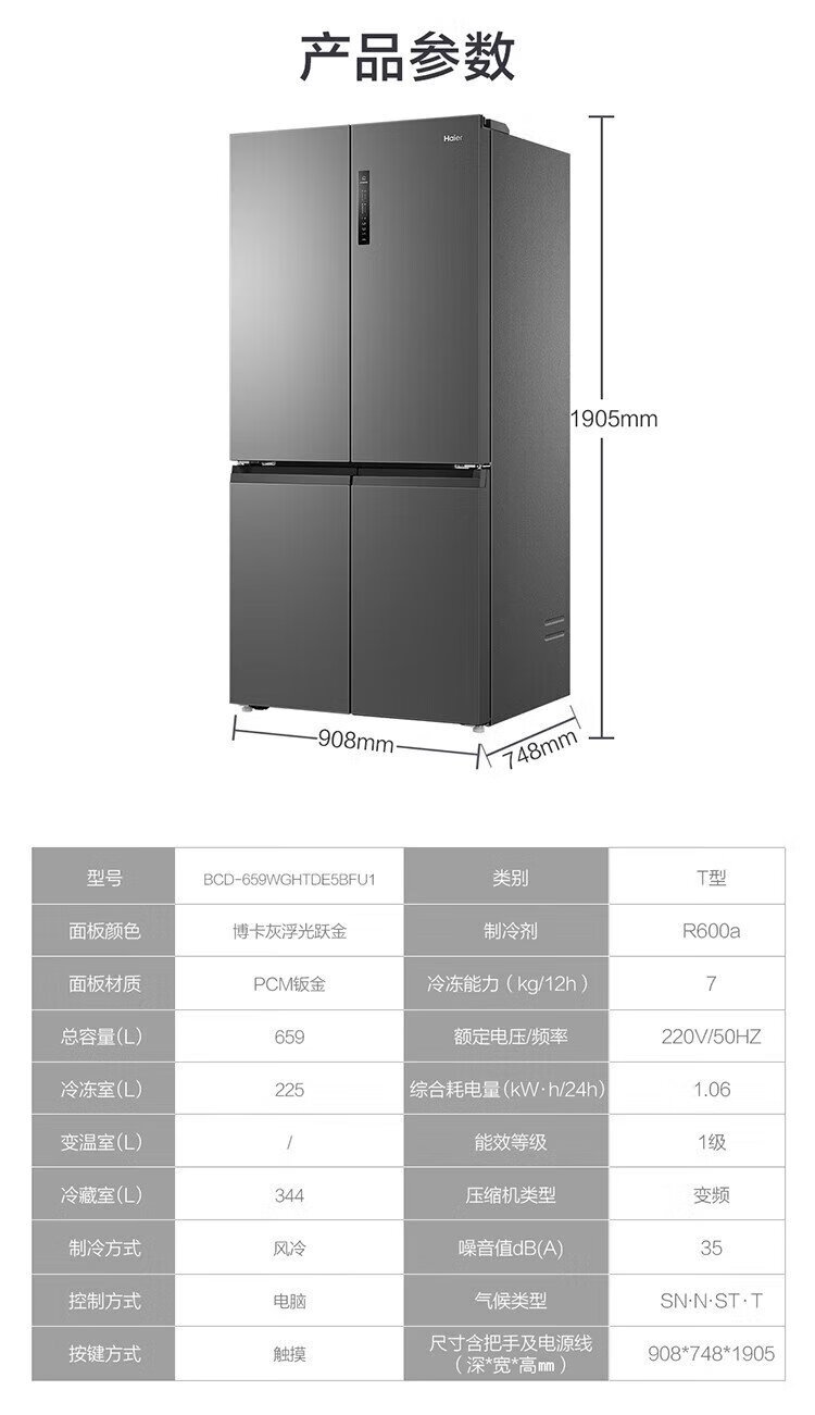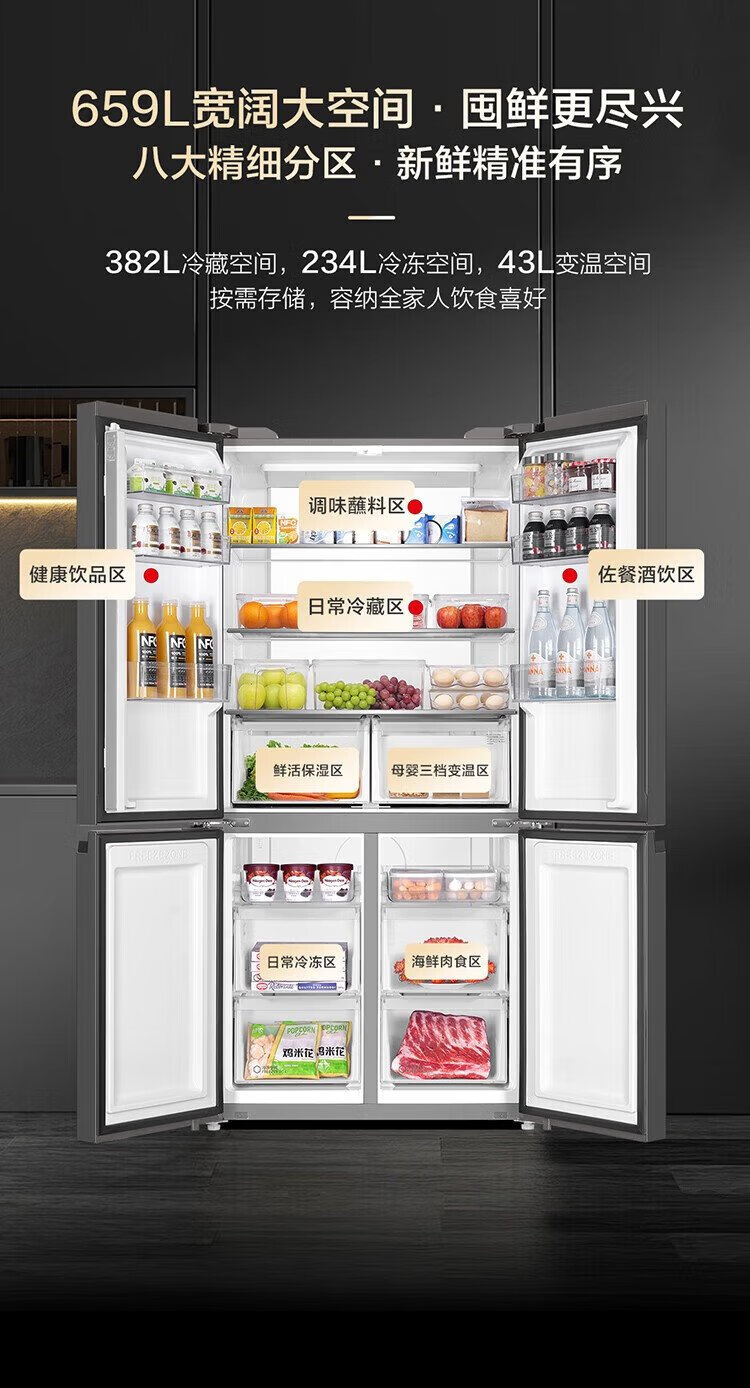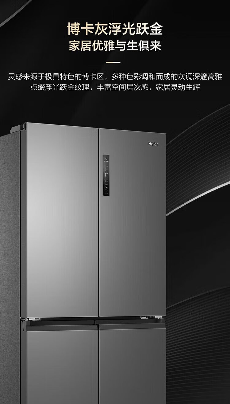 Haier household refrigerator 659 liters four-door cross-folding double-door first-class energy-efficiency energy-saving air-cooled frost-free ultra-large refrigerator with a capacity of 600 liters and above 20% national subsidy Gray丨Three-speed temperature change for mother and baby丨EPP ultra-clean system丨Oxygen-blocking dry and wet storage