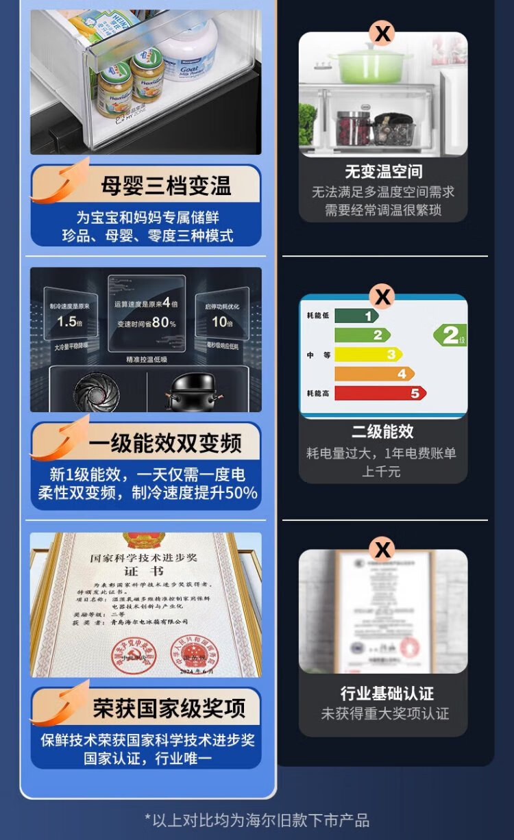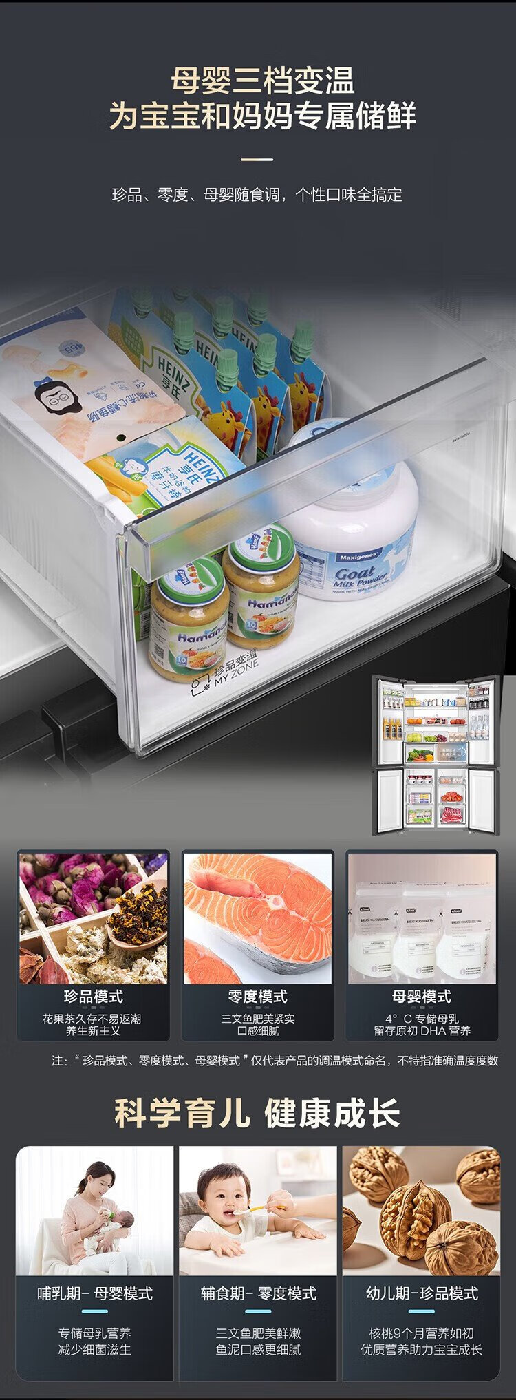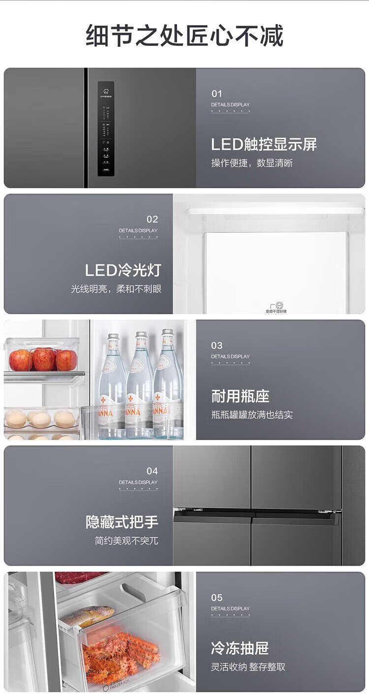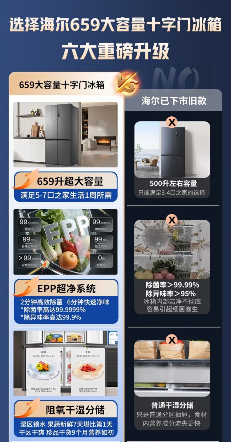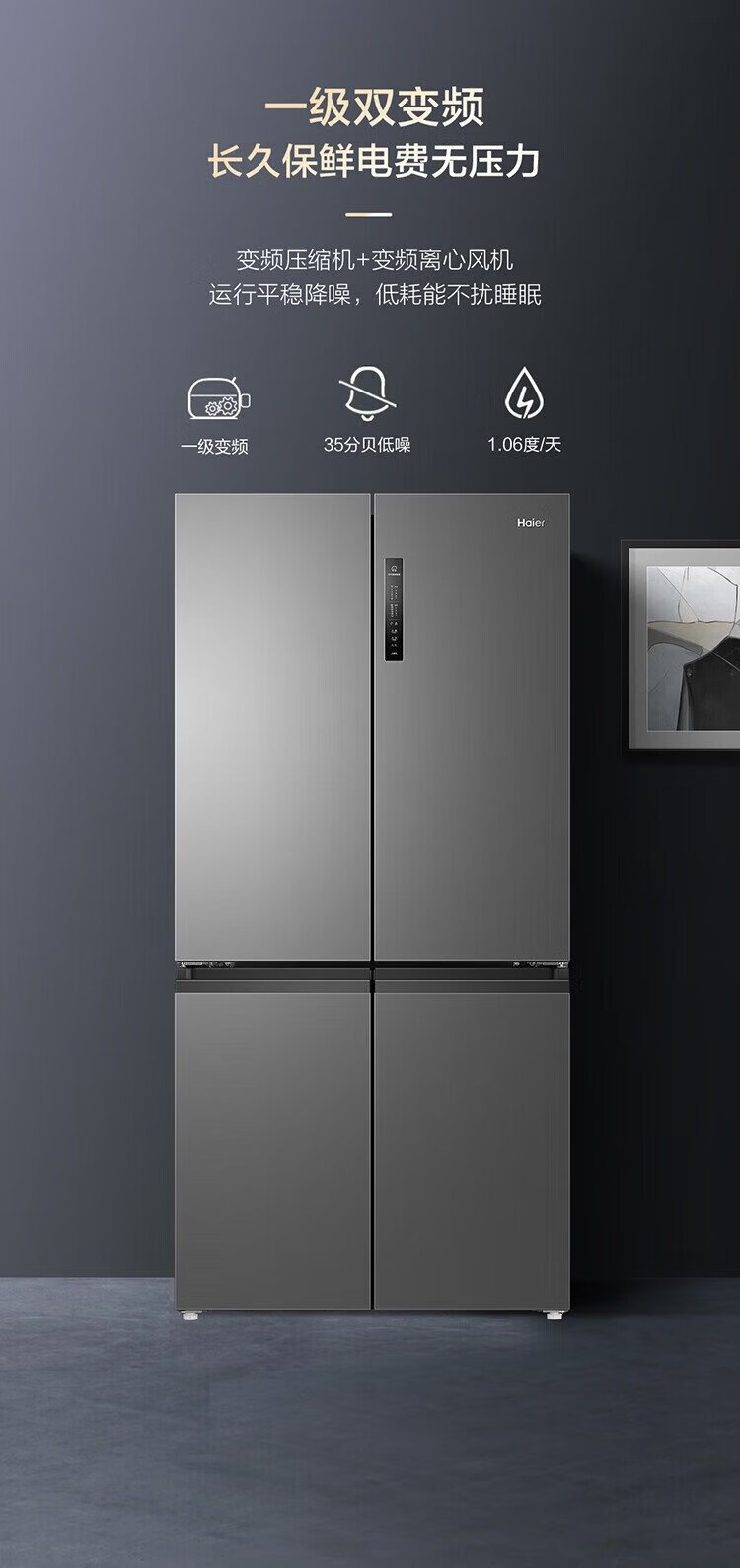 Haier household refrigerator 659 liters four-door cross-folding double-door first-class energy-efficiency energy-saving air-cooled frost-free ultra-large refrigerator with a capacity of 600 liters and above 20% national subsidy Gray丨Three-speed temperature change for mother and baby丨EPP ultra-clean system丨Oxygen-blocking dry and wet storage