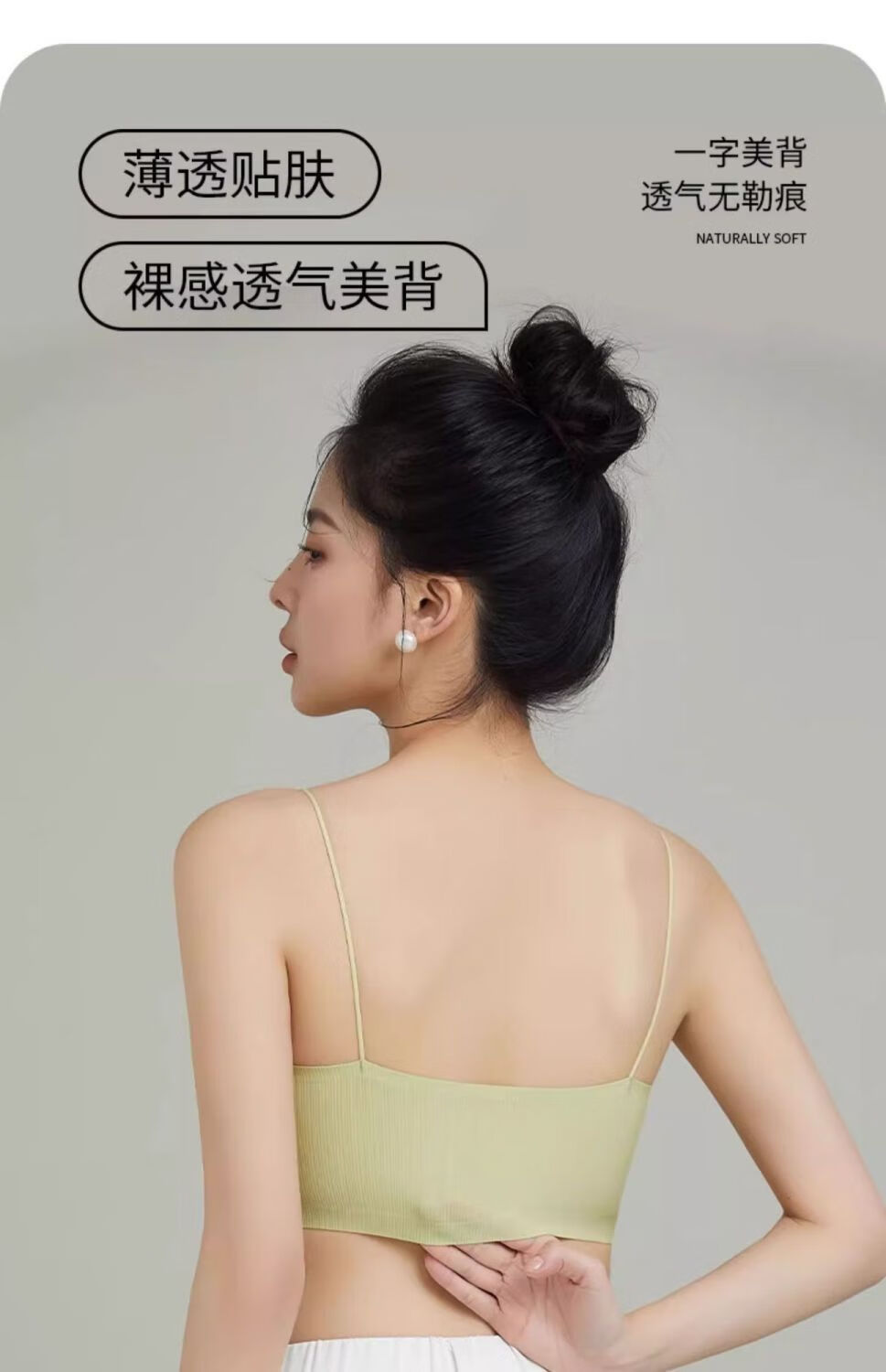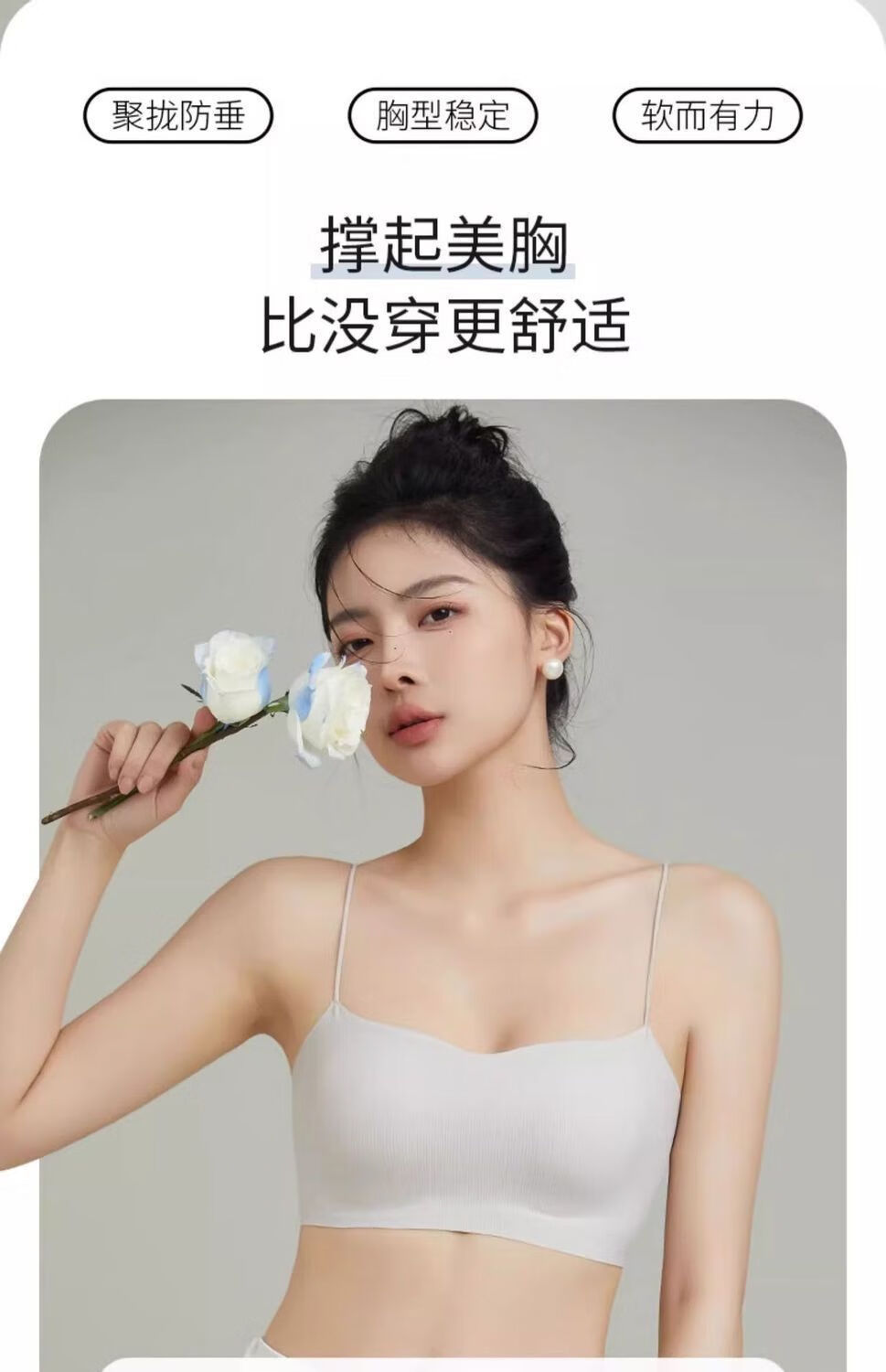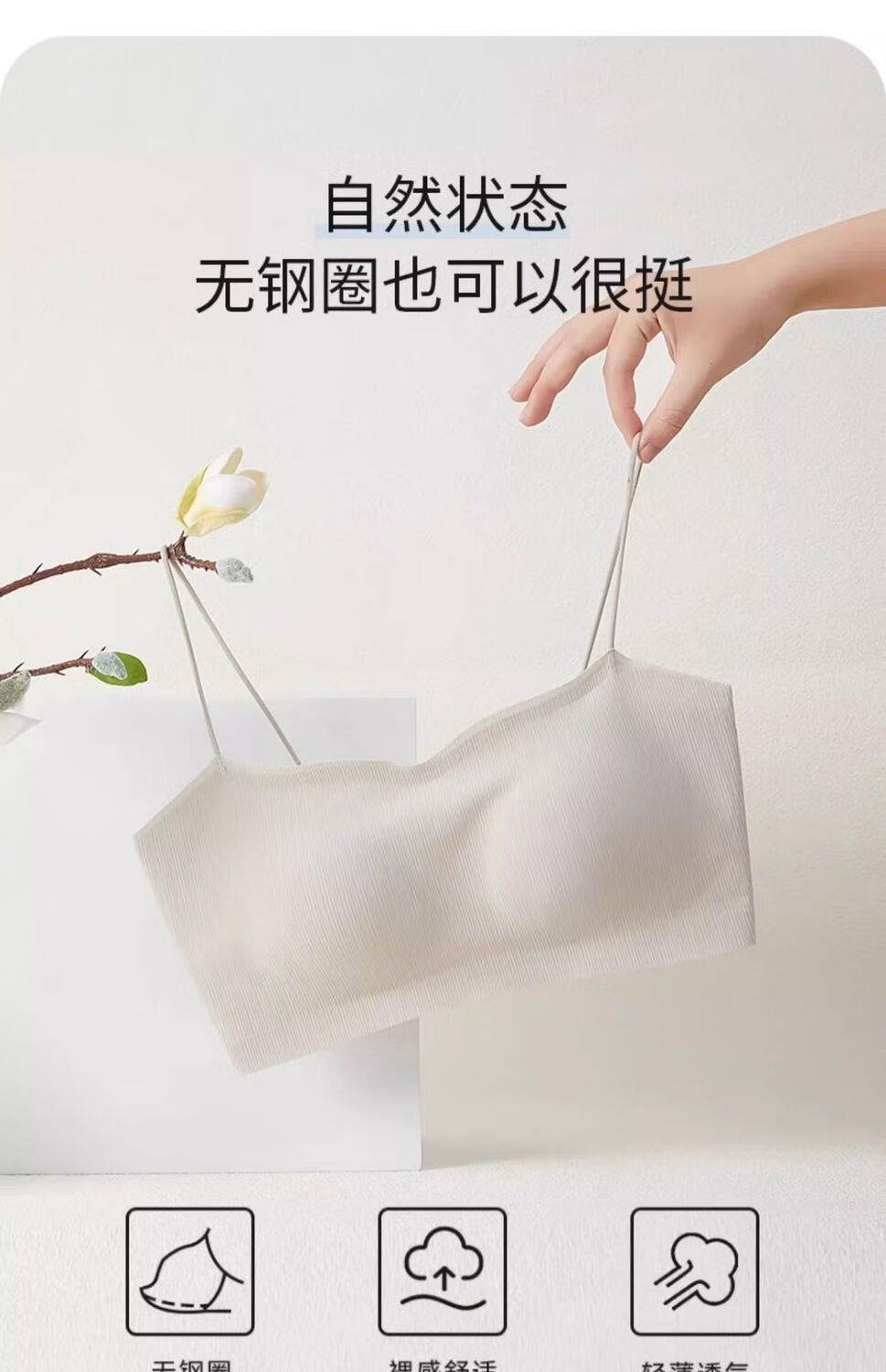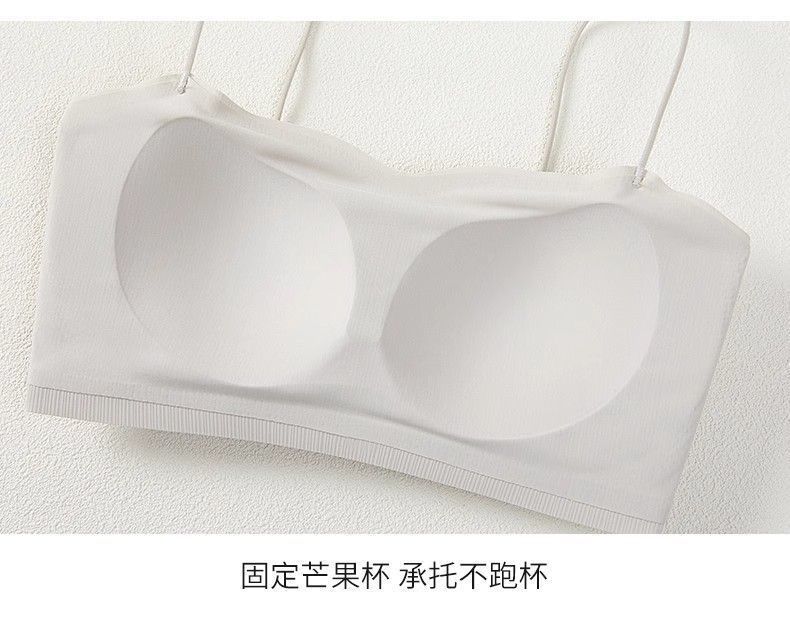MiiOW Beautiful Back Bra Women's Summer Thin Small Breast Gathered Thin Shoulders Tube Top Anti-Exposed Suspender Skirt Special Seamless Bra 7A Cup Integrated Black + White M Recommended 70-90Jin Jin equals 0.5kg