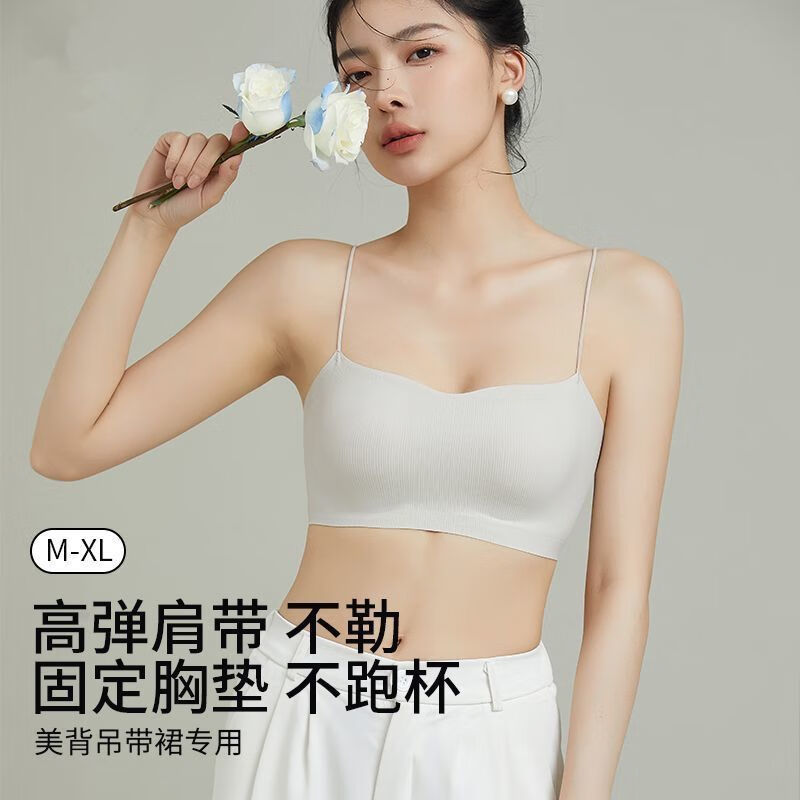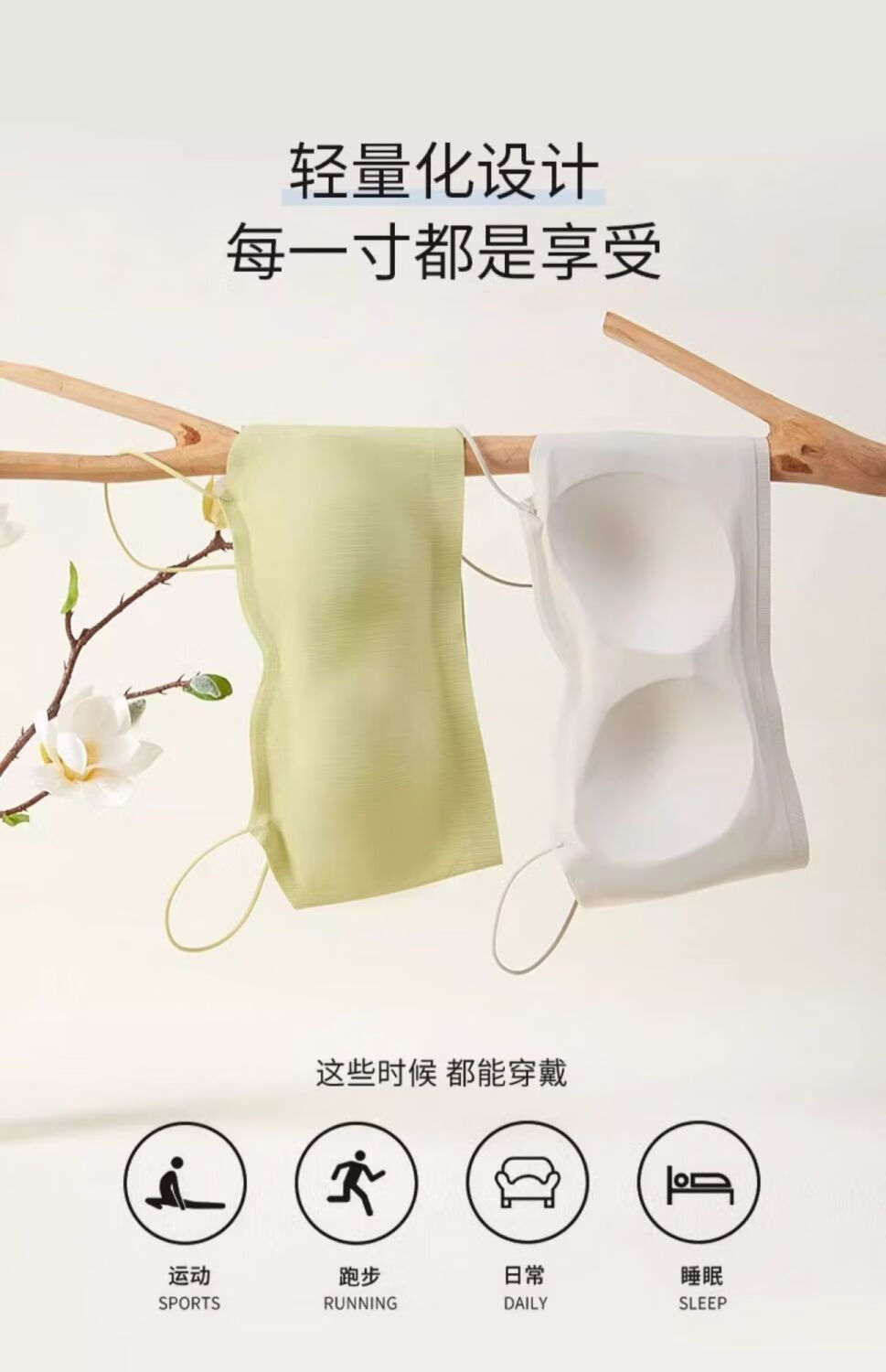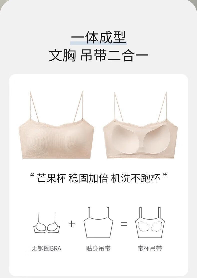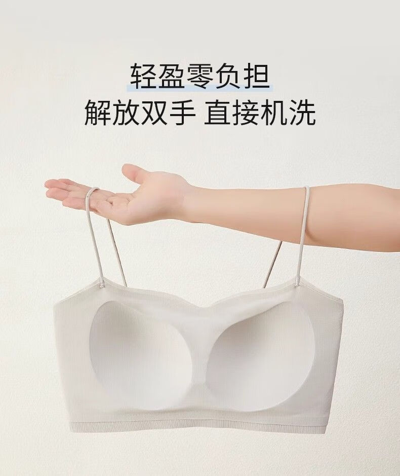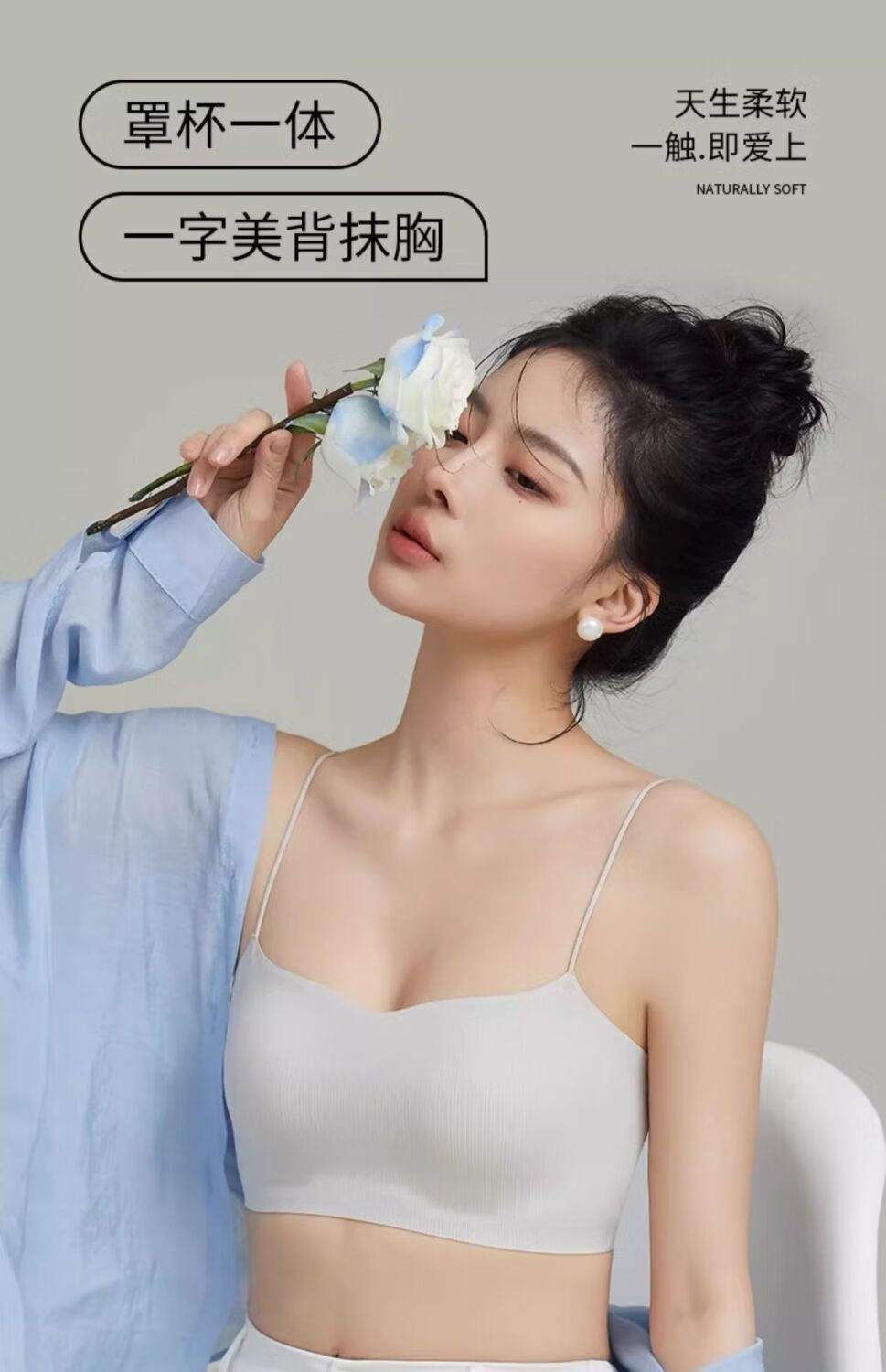 MiiOW Beautiful Back Bra Women's Summer Thin Small Breast Gathered Thin Shoulders Tube Top Anti-Exposed Suspender Skirt Special Seamless Bra 7A Cup Integrated Black + White M Recommended 70-90Jin Jin equals 0.5kg