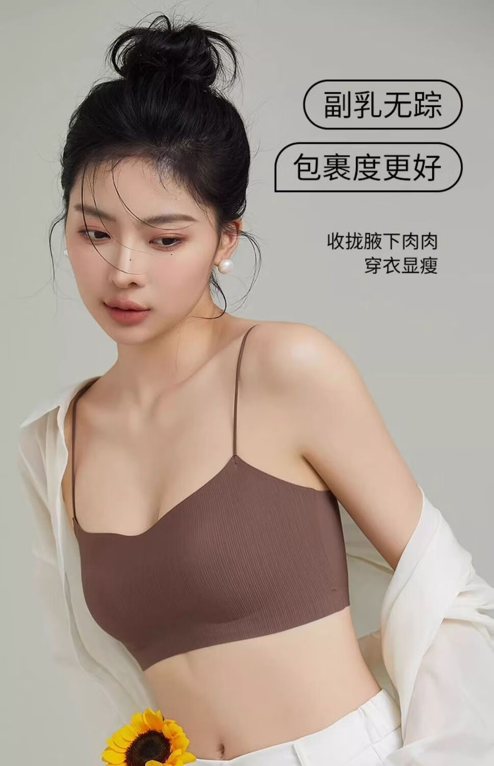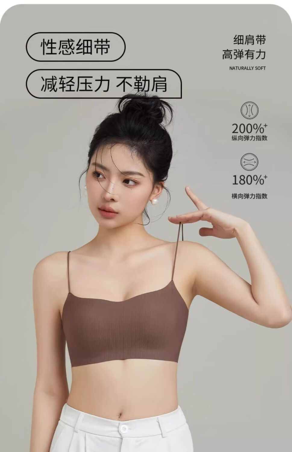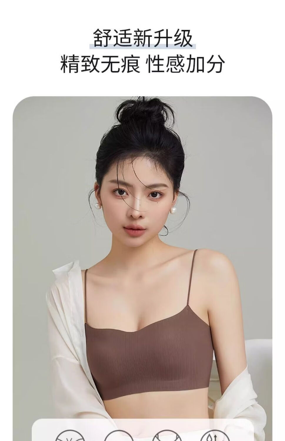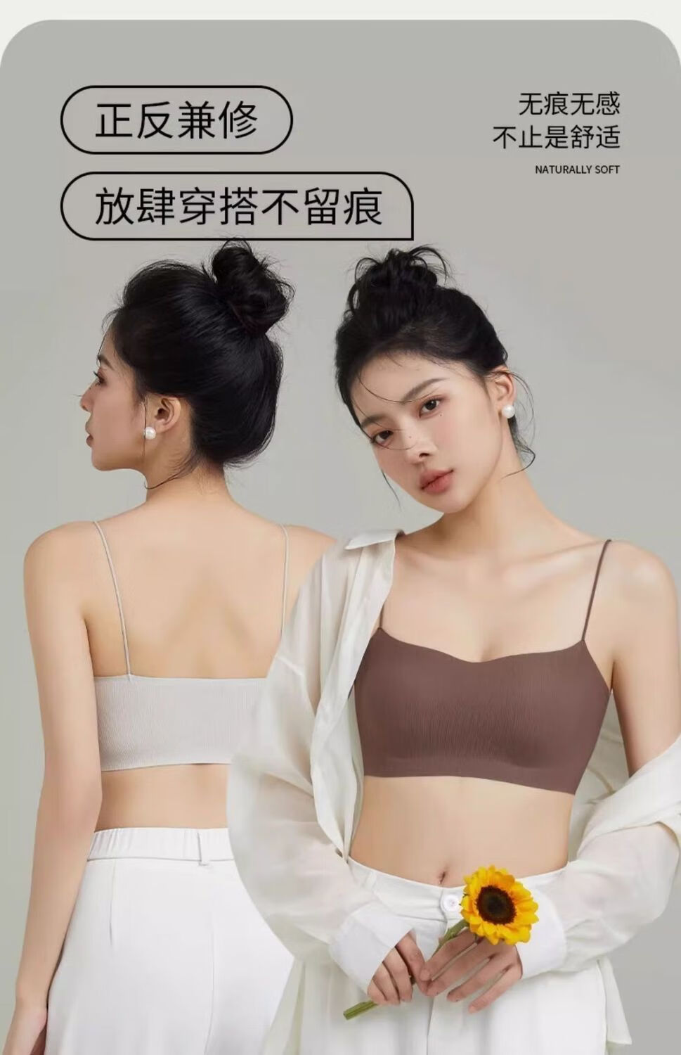 MiiOW Beautiful Back Bra Women's Summer Thin Small Breast Gathered Thin Shoulders Tube Top Anti-Exposed Suspender Skirt Special Seamless Bra 7A Cup Integrated Black + White M Recommended 70-90Jin Jin equals 0.5kg