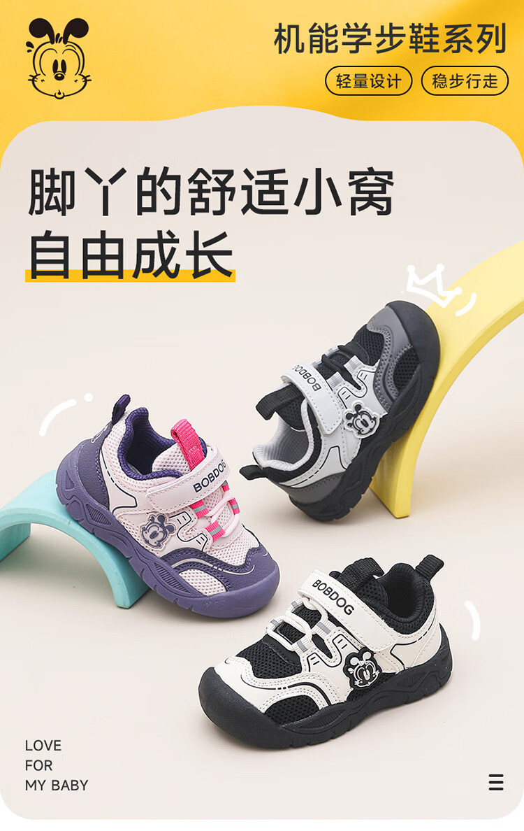 Babudou Children's Shoes Boys Autumn Soft Sole Versatile Toddler Shoes Children's 2025 New Baby Shoes Women's Comfortable Lightweight Functional Shoes Light Hemp Gray/Black 26 Suitable for Feet Length 15.7cm